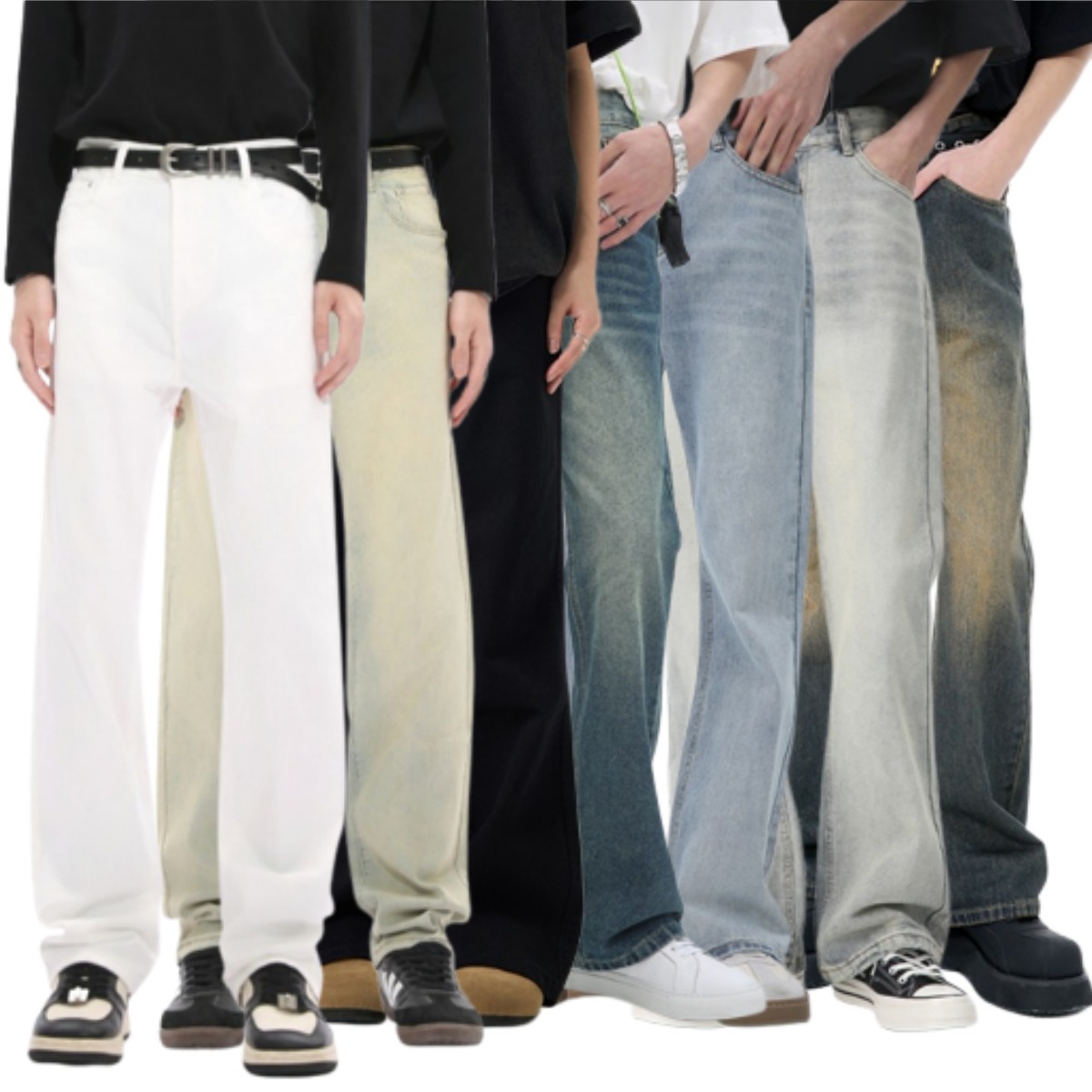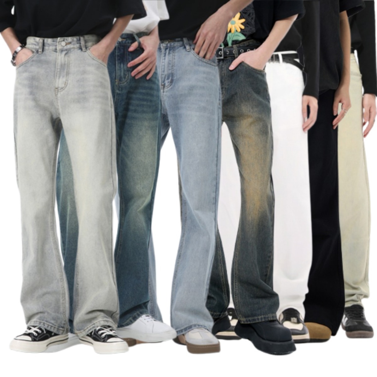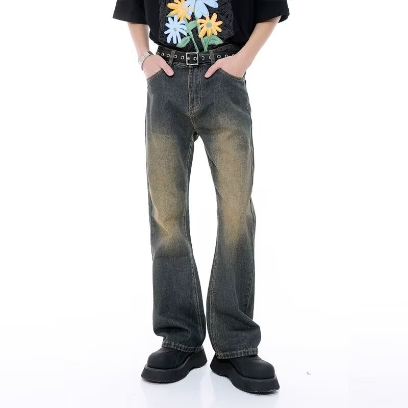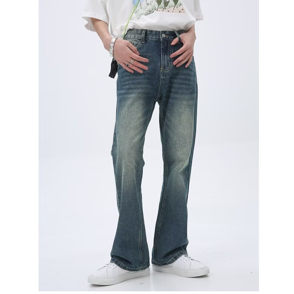 2025 새로운 스타일 청바지 남성 여름 얇은 미국 스타일 바이브 스타일 바지 탄성 마체 테 좁은 판 스트레이트 바지스토어 가기