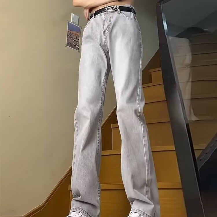 2025 새로운 스타일 청바지 남성 여름 얇은 미국 스타일 바이브 스타일 바지 탄성 마체 테 좁은 판 스트레이트 바지