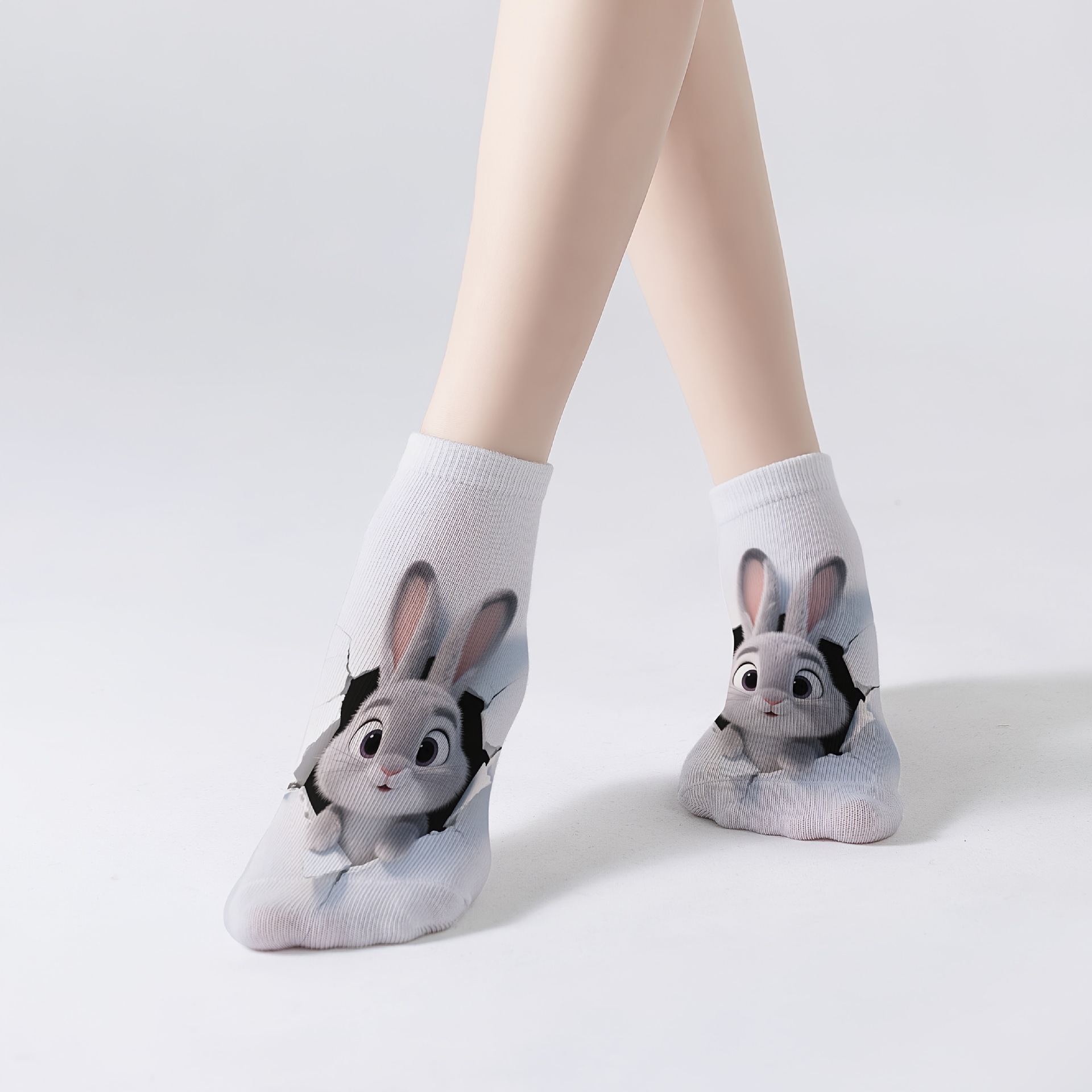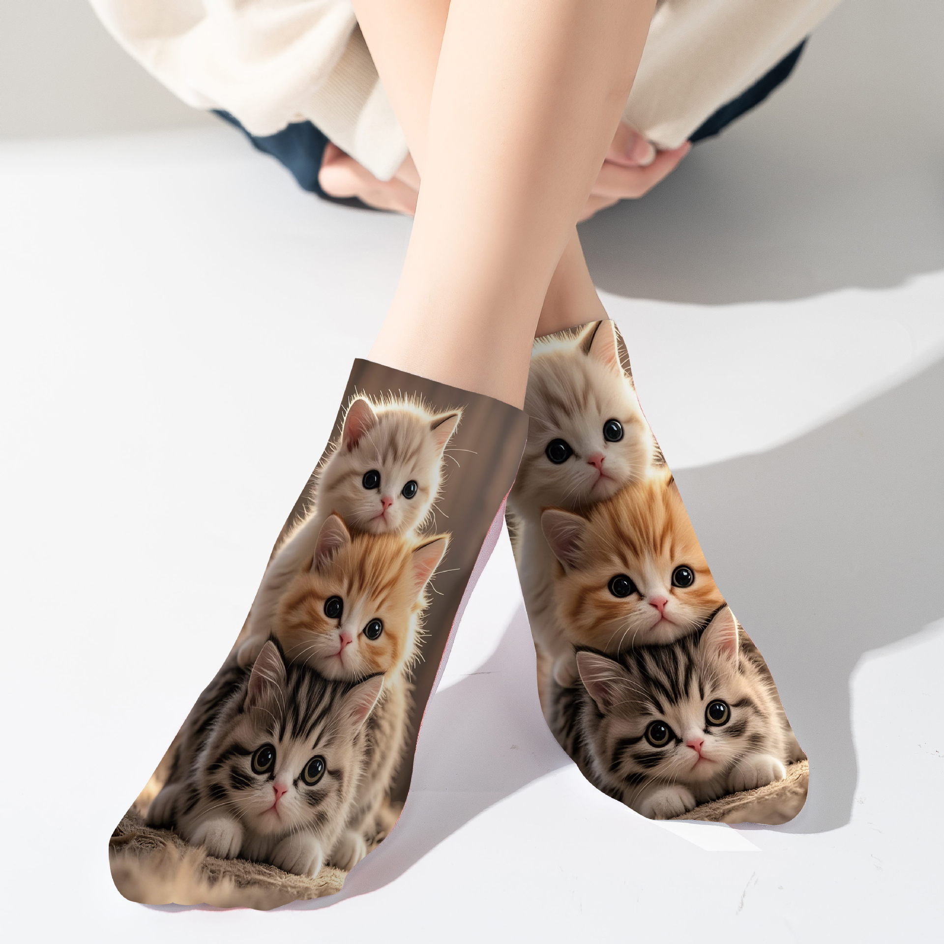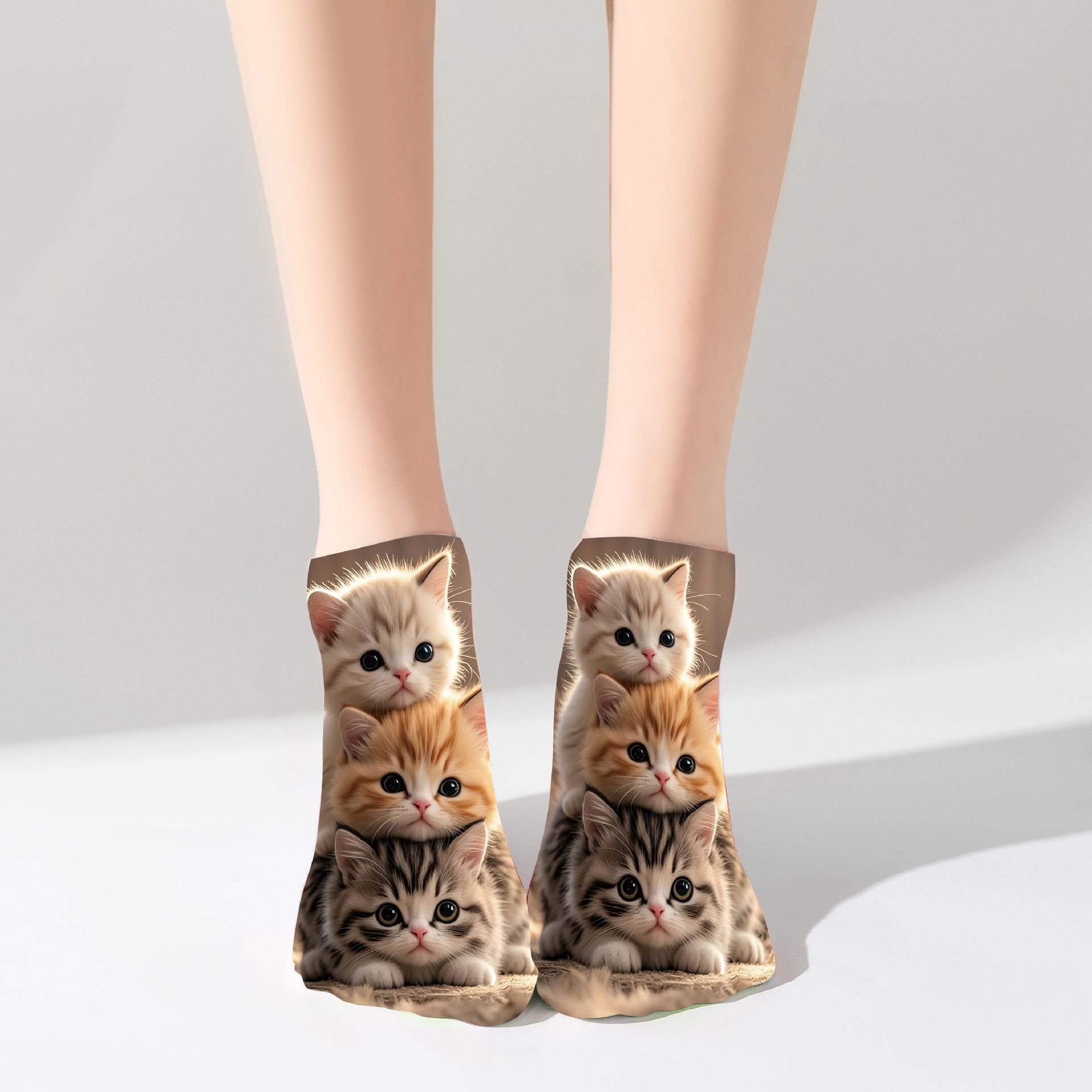 袜子面料为涤纶材质,可单面印花,3D效果。
