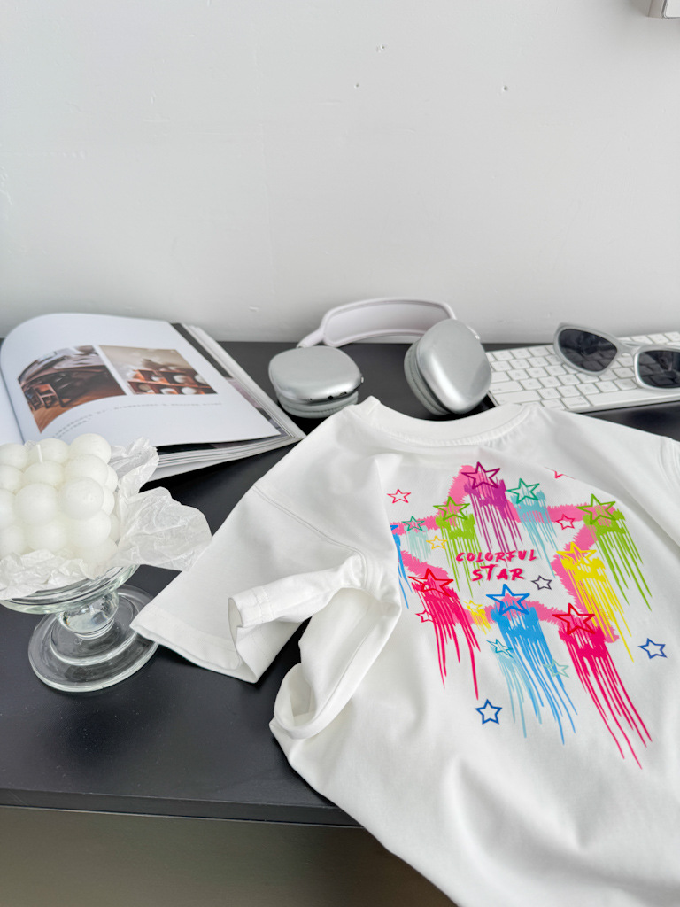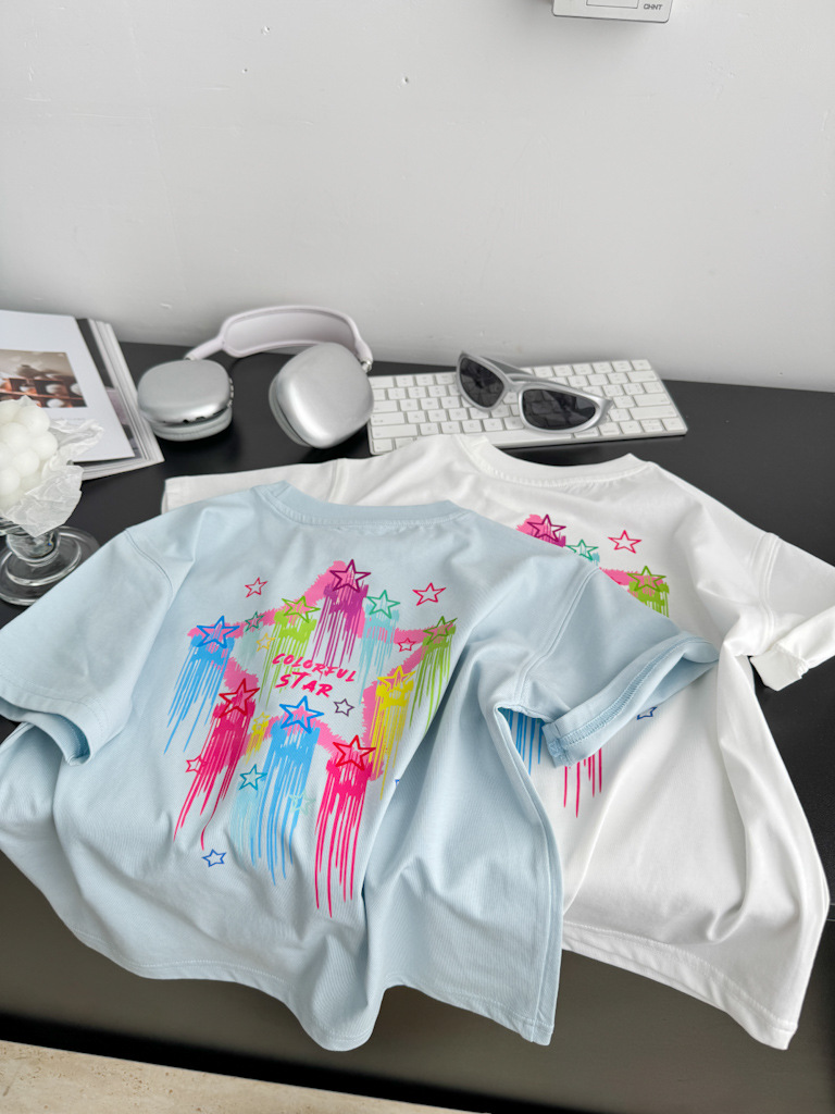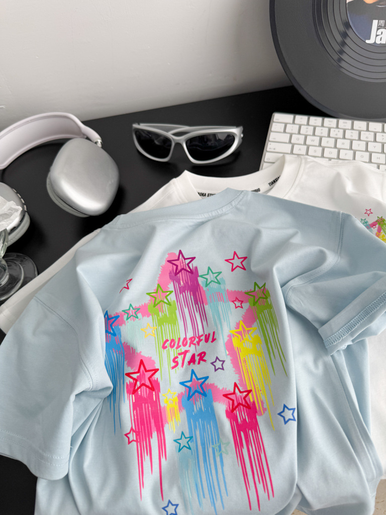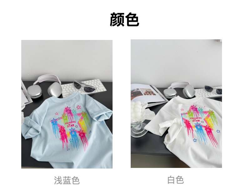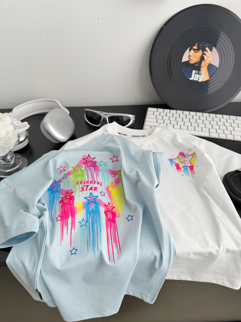 유체 스타 낙서 반팔 티셔츠 2025 여름 소년과 소녀 한국 톱 코튼 T 어린이 트렌디 Zhili 아동복