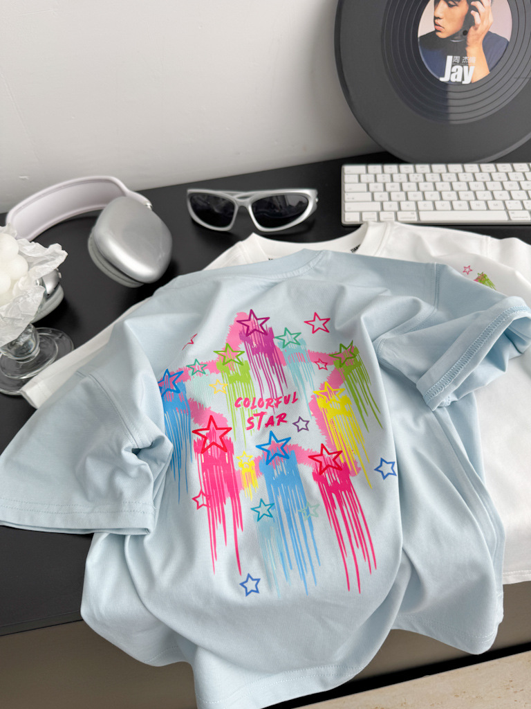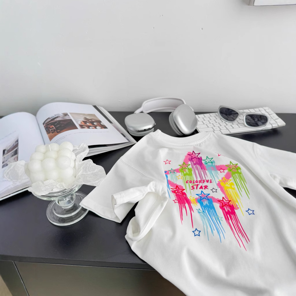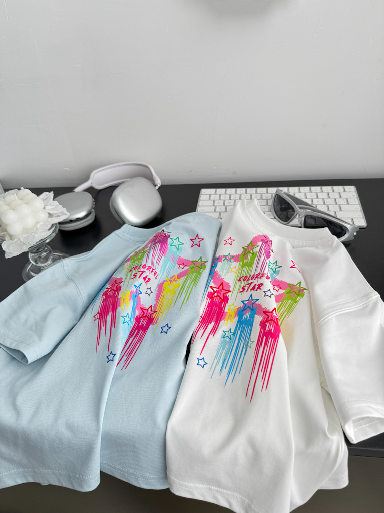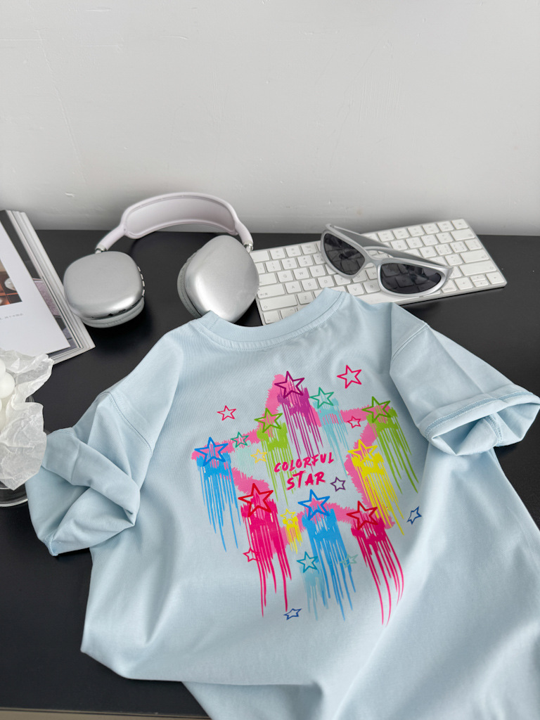 유체 스타 낙서 반팔 티셔츠 2025 여름 소년과 소녀 한국 톱 코튼 T 어린이 트렌디 Zhili 아동복