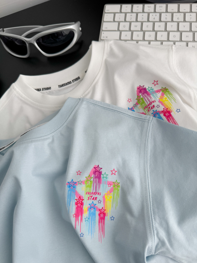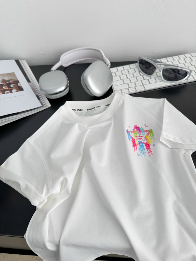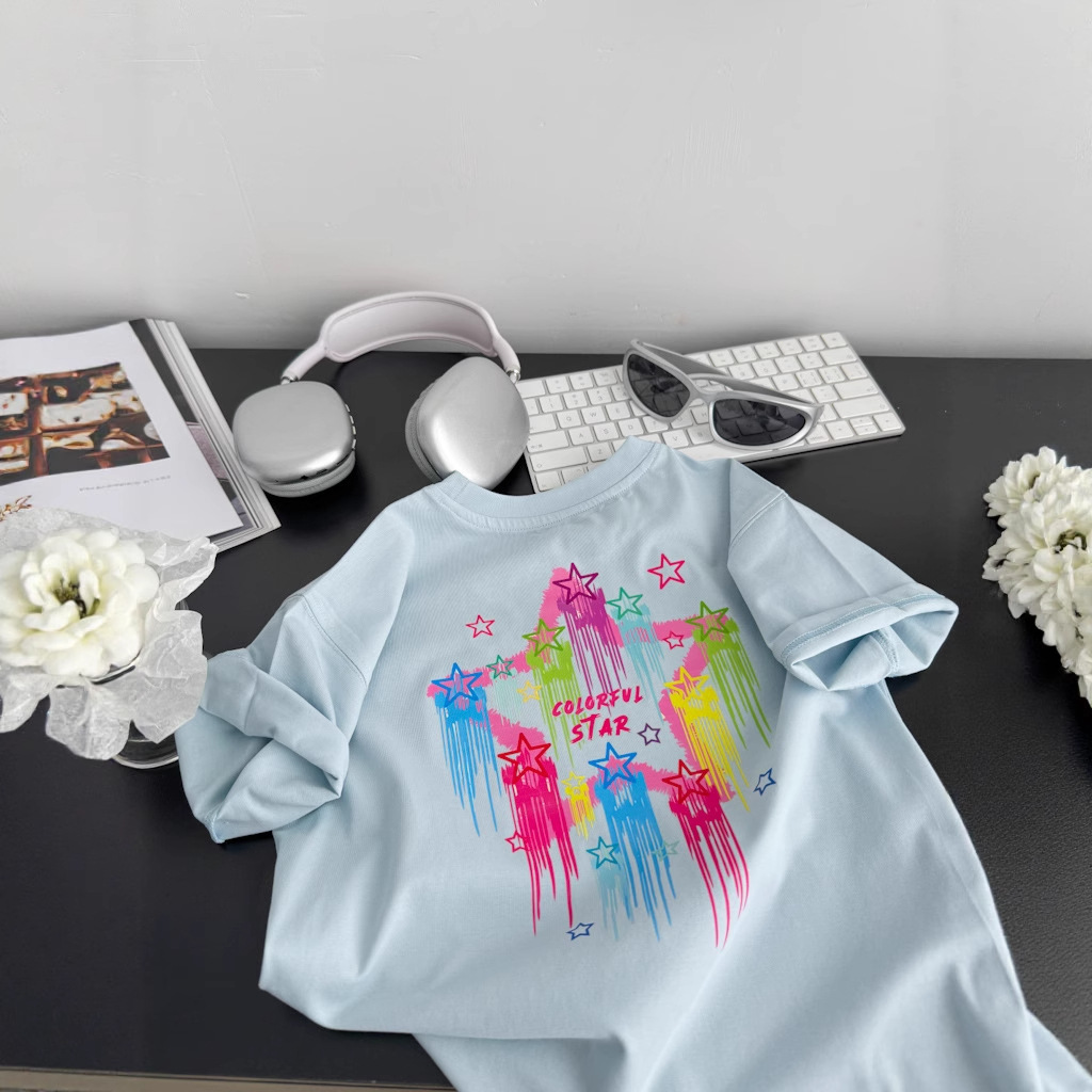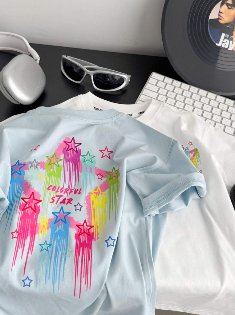 유체 스타 낙서 반팔 티셔츠 2025 여름 소년과 소녀 한국 톱 코튼 T 어린이 트렌디 Zhili 아동복스토어 가기