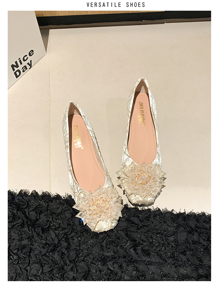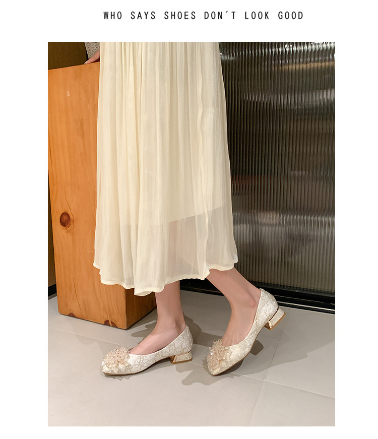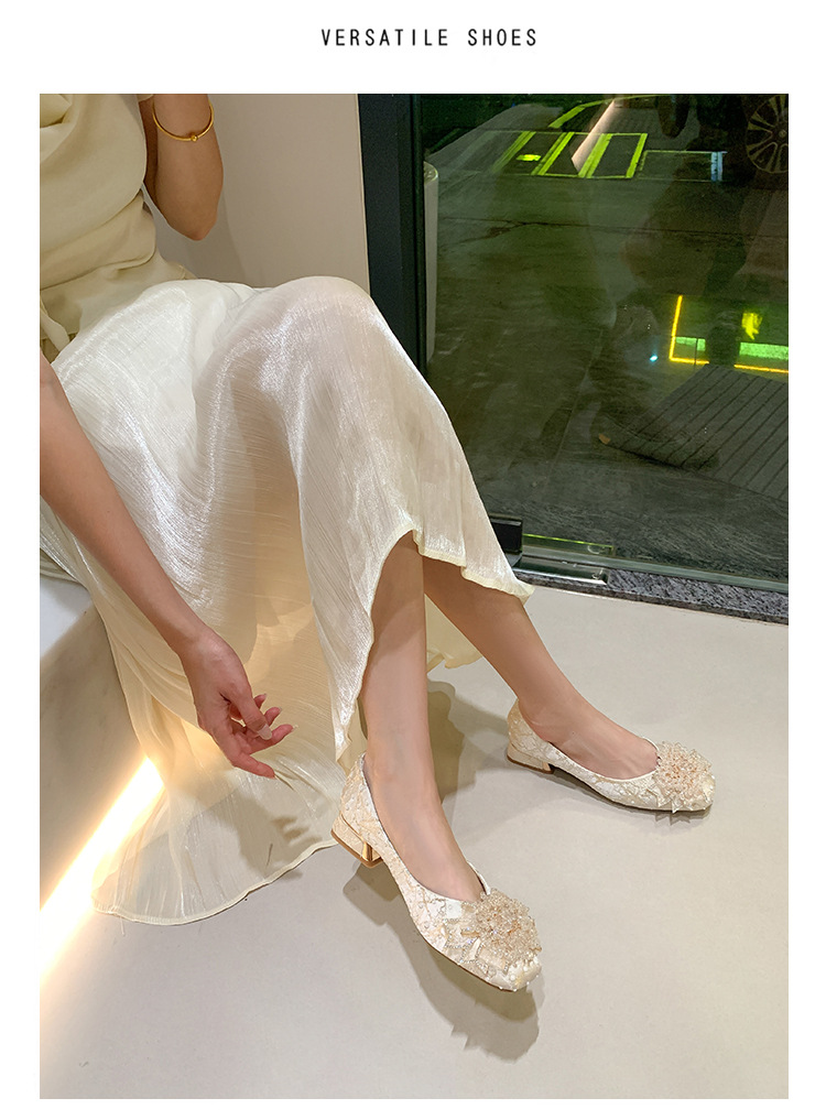 777-D8 여성을 위한 중국 스타일의 새로운 스타일 신발, 패셔너블하고 다재다능한 스퀘어 토 라인스톤 프렌치 미드 힐 두꺼운 힐 대형 여성 신발 4143