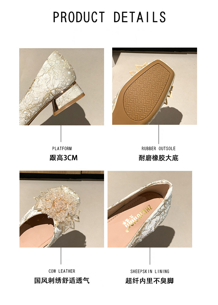 777-D8 여성을 위한 중국 스타일의 새로운 스타일 신발, 패셔너블하고 다재다능한 스퀘어 토 라인스톤 프렌치 미드 힐 두꺼운 힐 대형 여성 신발 4143스토어 가기