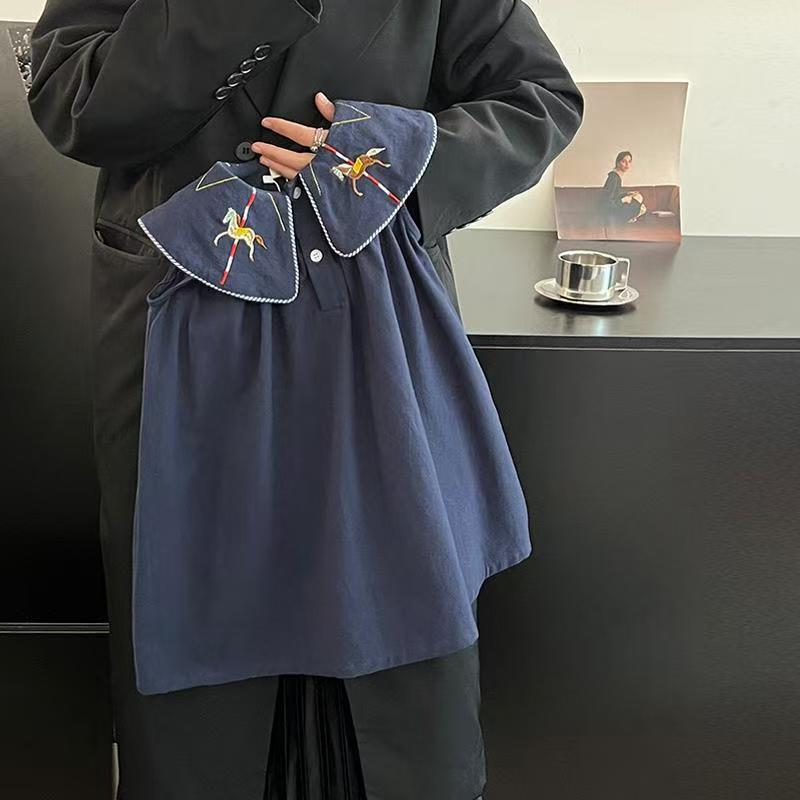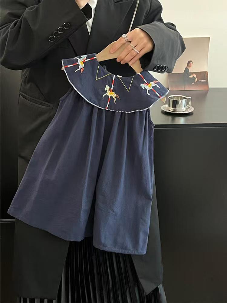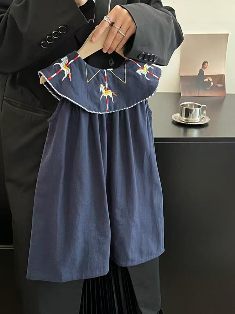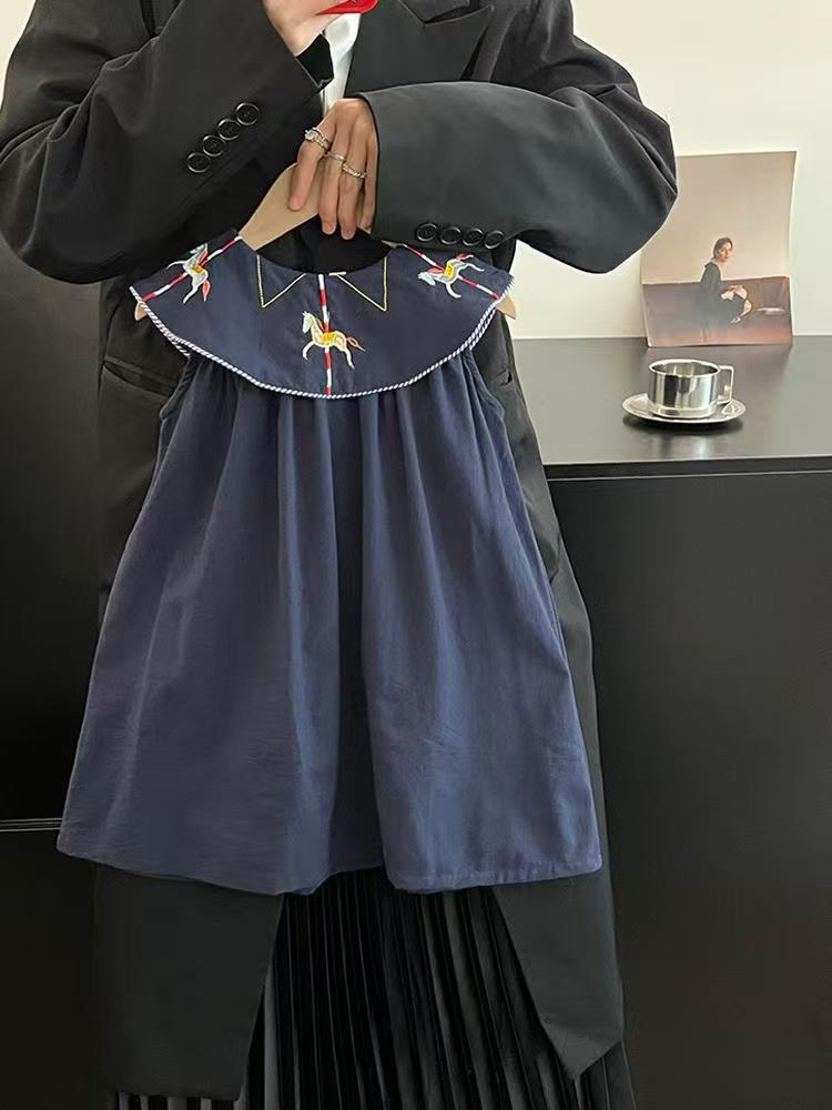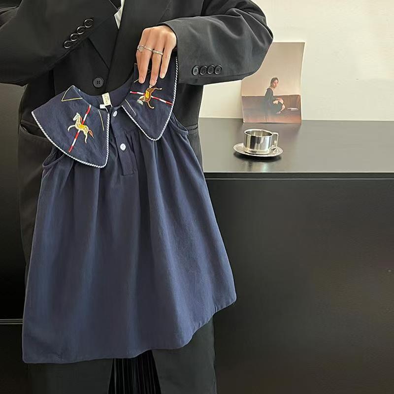 한국 아동복 2026년 신상 여름옷 여아 레트로 스타일 민소매 원피스, 세련된 자수 연잎 칼라 원피스
