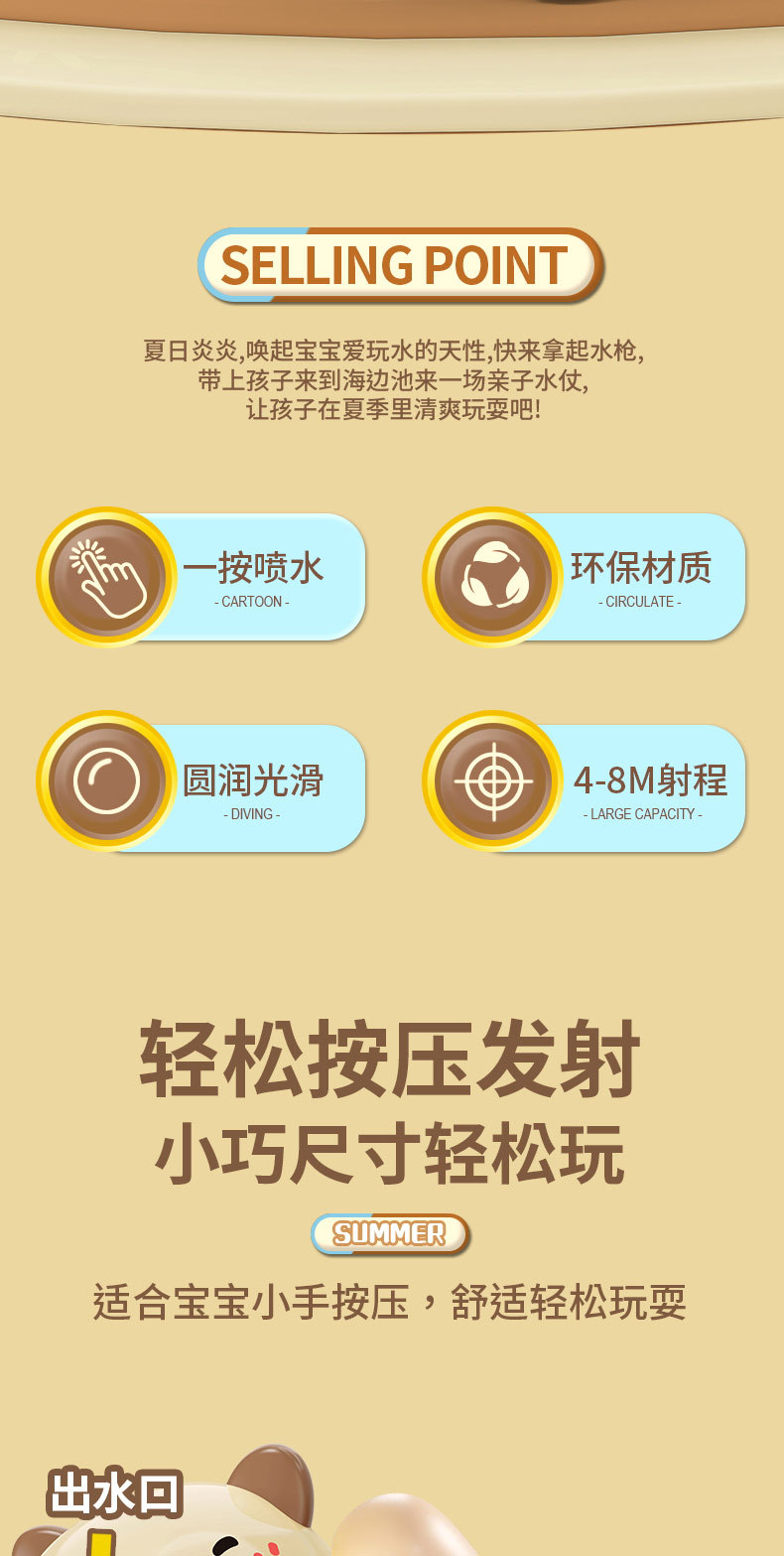 새로운 카피 발라 프레스 물 총 만화 카피 바라 물 놀이 어린이 야외 해변 물 싸움 물 총 장난감