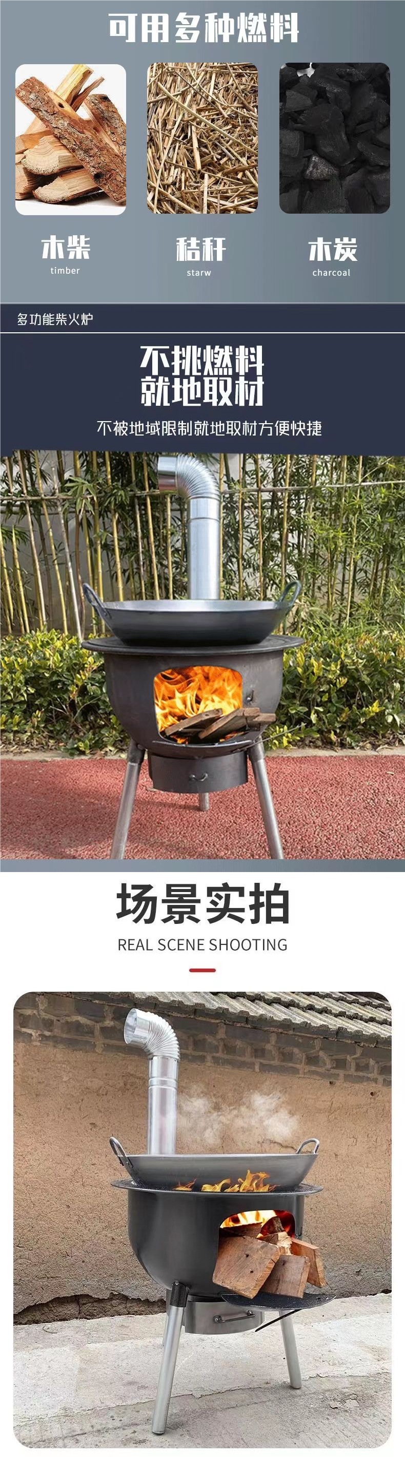 2025 새로운 장작 스토브 이동식 농촌 가정용 장작 스토브 장작 스토브 야외 스토브 농촌 땅 냄비