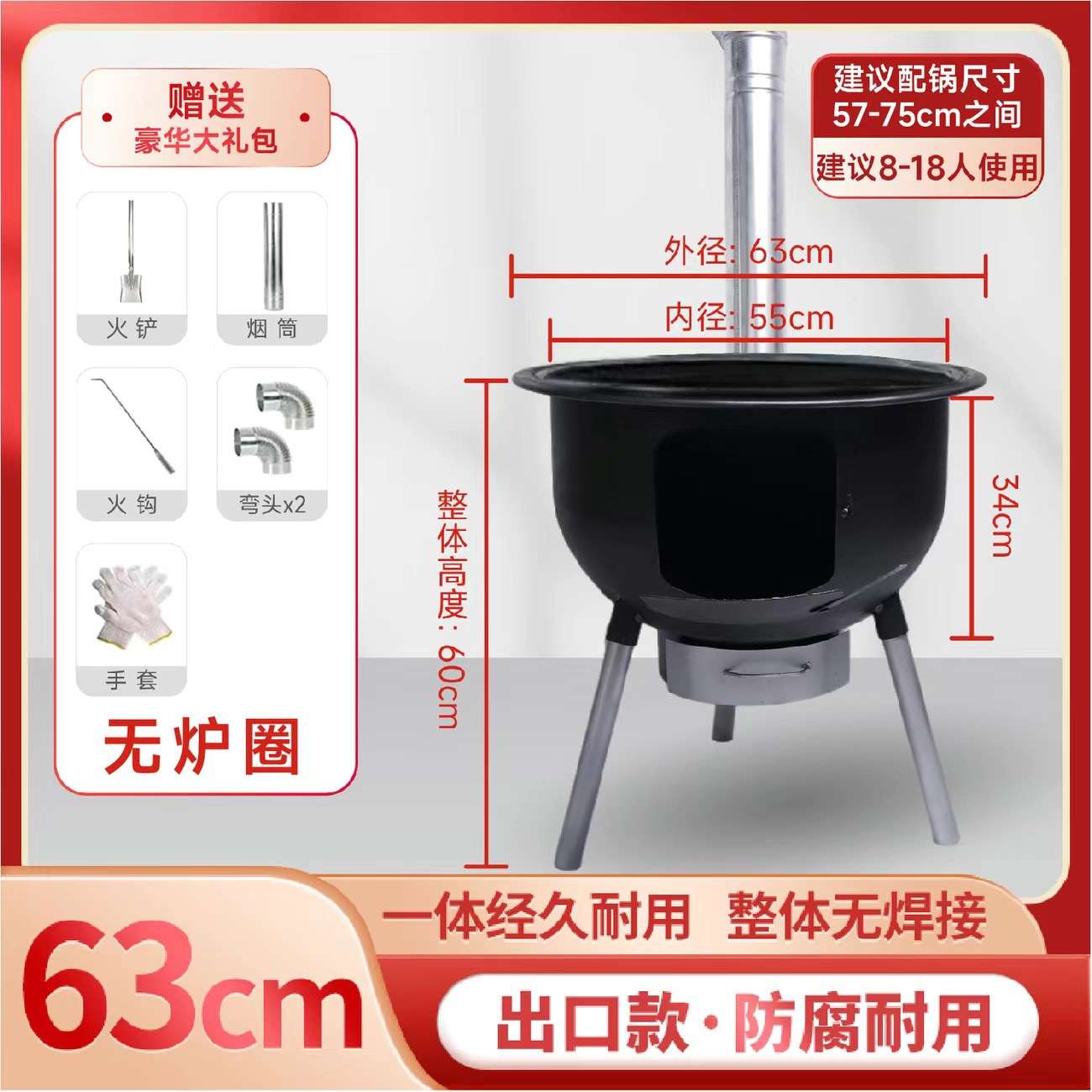 • [쇠냄비+뚜껑] 63cm+난로링+선물가방