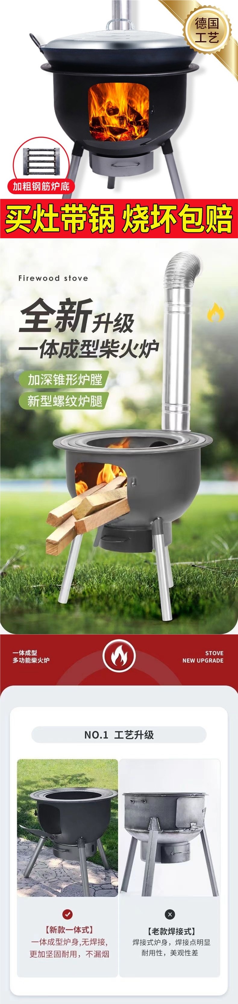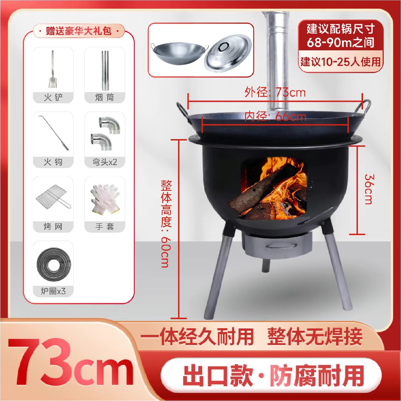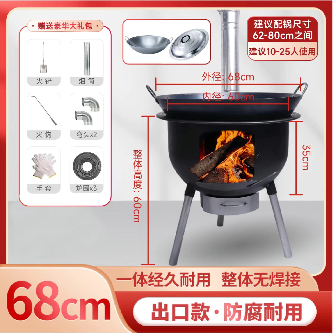 2025 새로운 장작 스토브 이동식 농촌 가정용 장작 스토브 장작 스토브 야외 스토브 농촌 땅 냄비스토어 가기