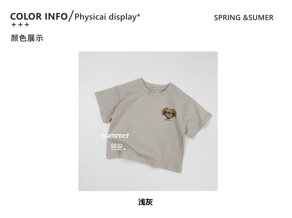 어린이 짧은 소매 여름 새로운 도착 소년과 소녀 만화 강아지 짧은 소매 T 아기 귀여운 라운드 넥 티셔츠 한국 스타일 최고 트렌디스토어 가기
