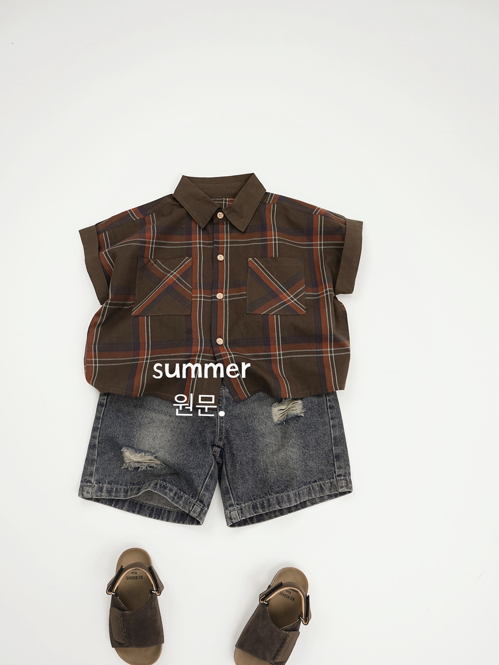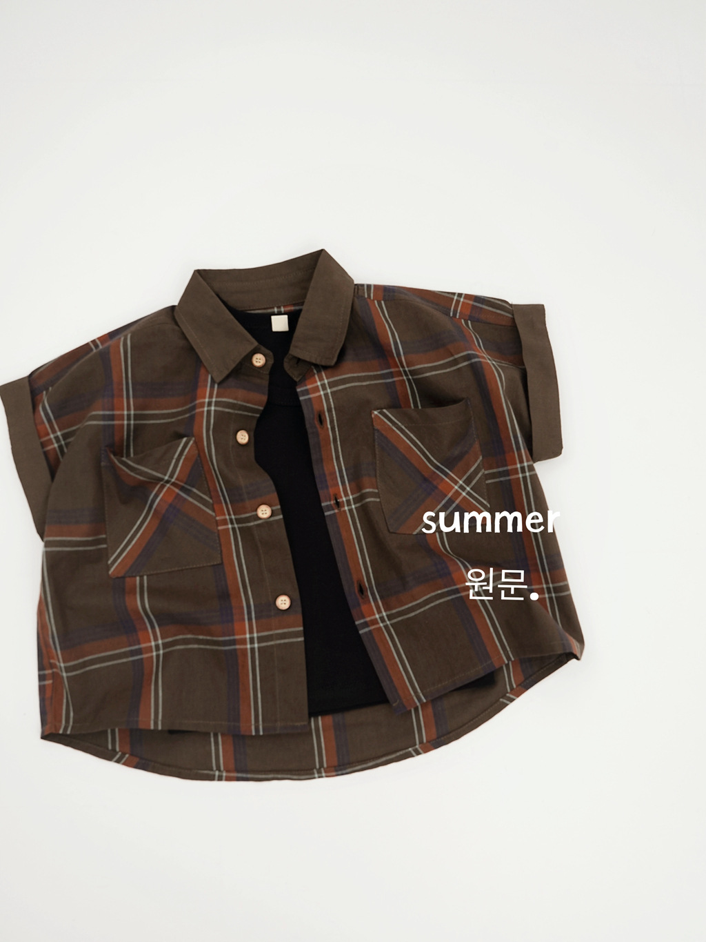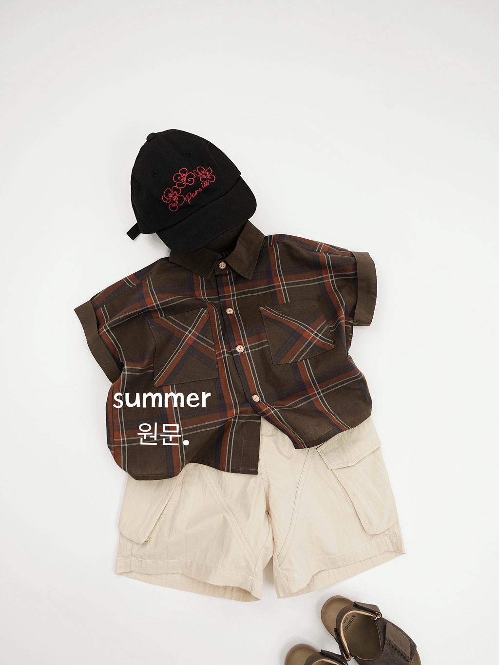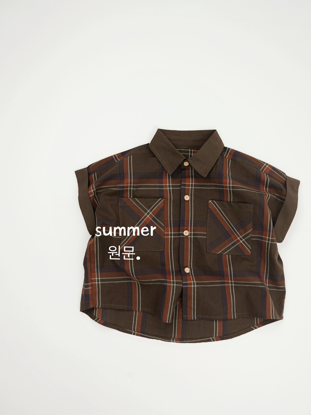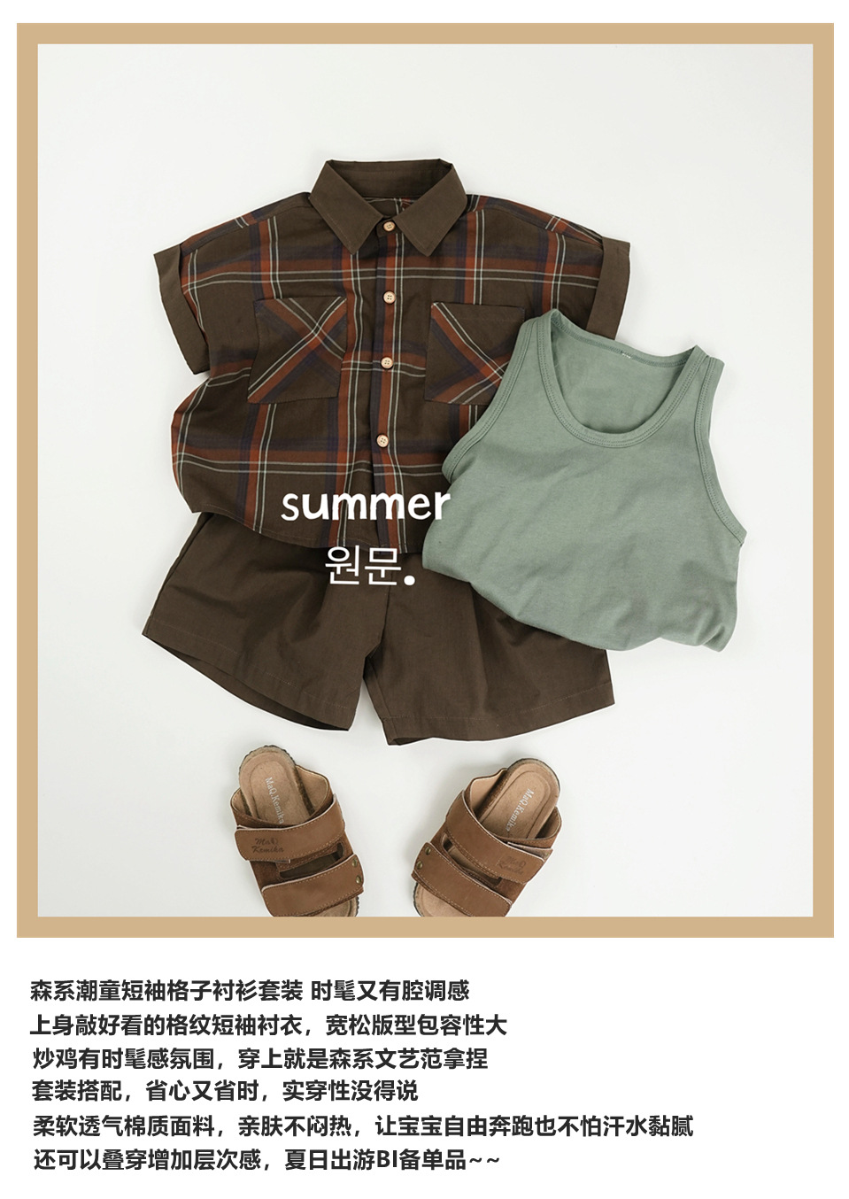 어린이 셔츠 반소매 얇은 여름 새로운 한국 스타일 레트로 소년 체크 짧은 소매 카디건 아기 셔츠 통기성스토어 가기
