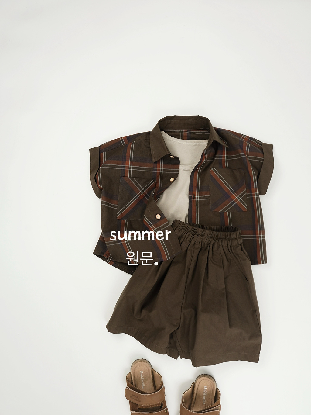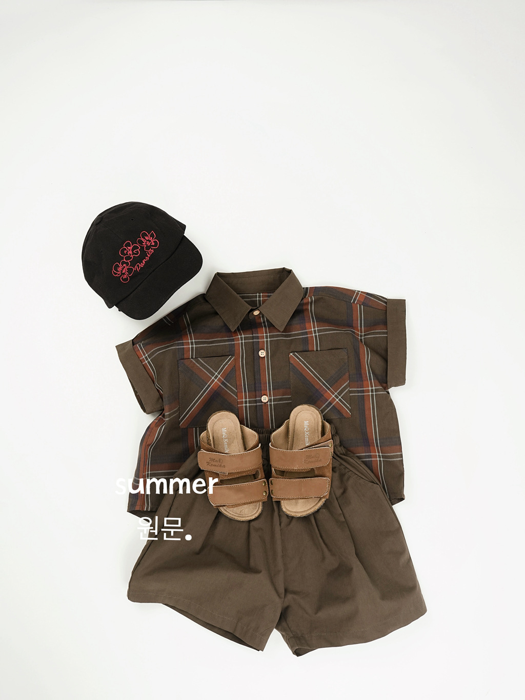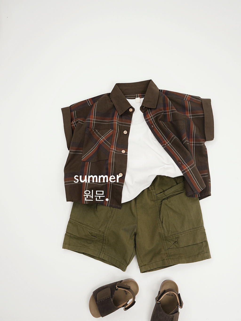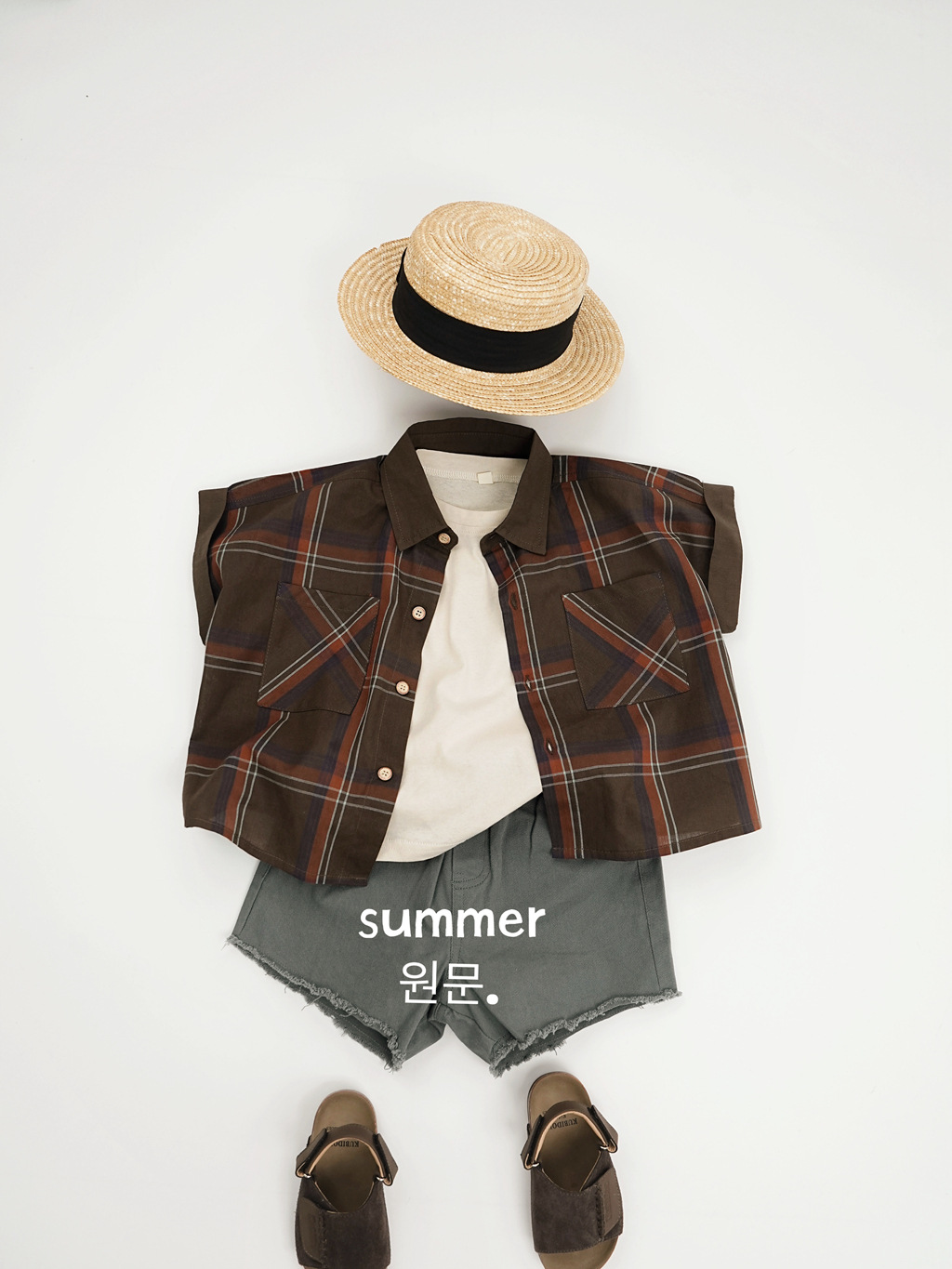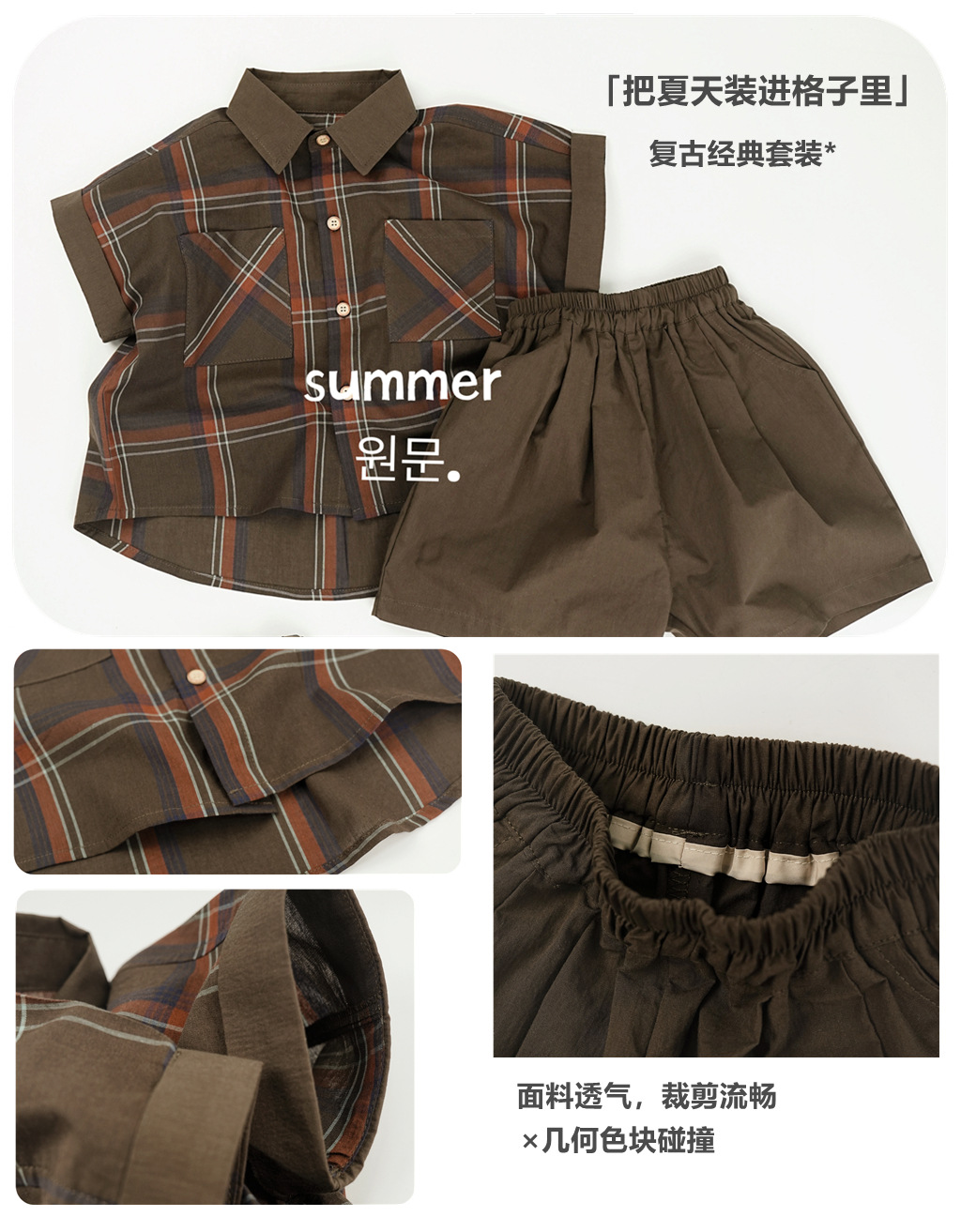 어린이 셔츠 반소매 얇은 여름 새로운 한국 스타일 레트로 소년 체크 짧은 소매 카디건 아기 셔츠 통기성스토어 가기