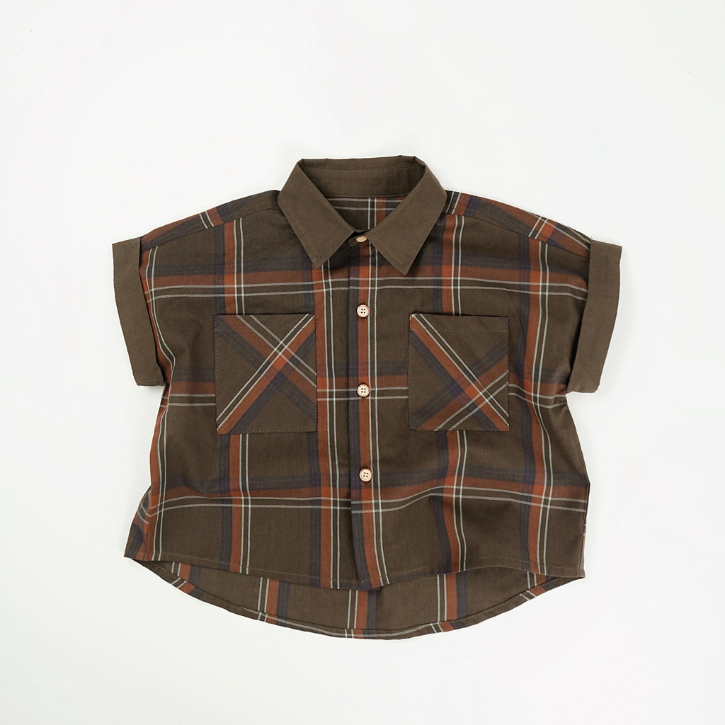 어린이 셔츠 반소매 얇은 여름 새로운 한국 스타일 레트로 소년 체크 짧은 소매 카디건 아기 셔츠 통기성