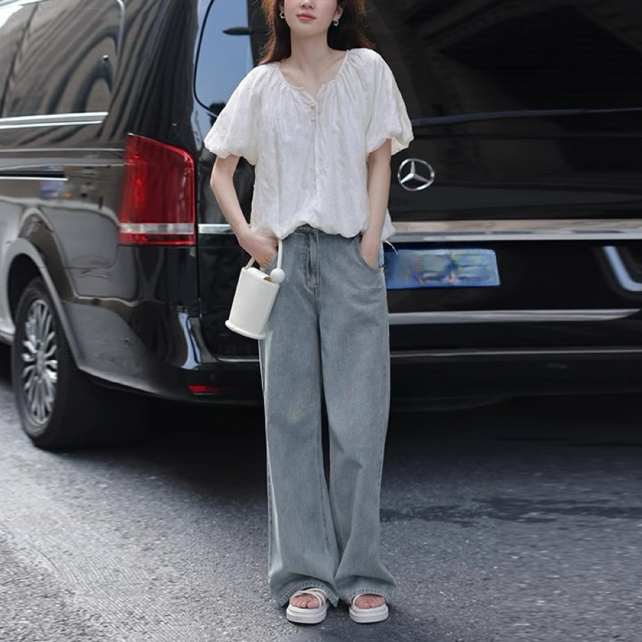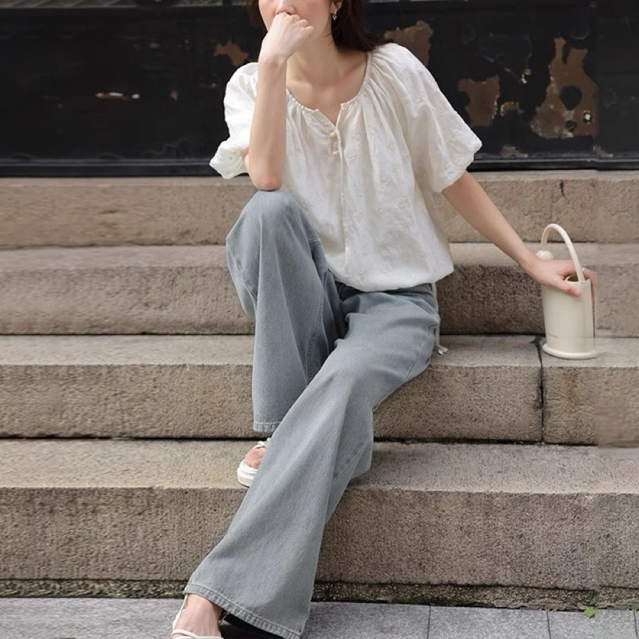 프랑스의 절묘한 크로셰! 90% 쿨 텐셀 랜턴 슬리브 반팔 쉬폰 셔츠 탑 여름 여성 셔츠스토어 가기