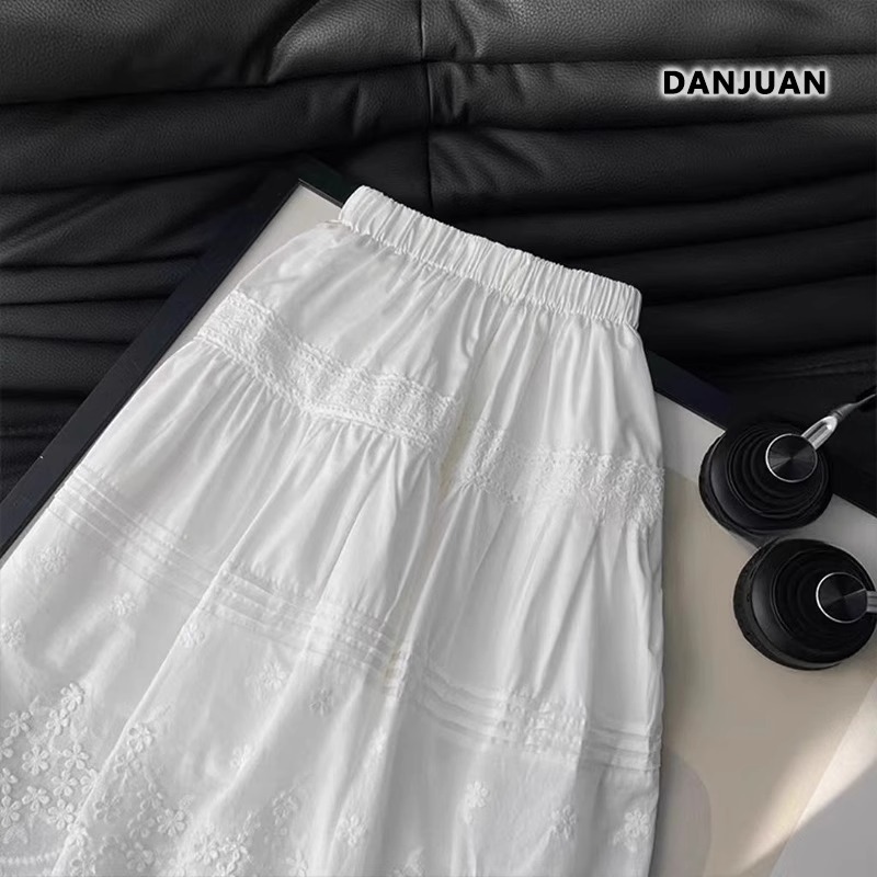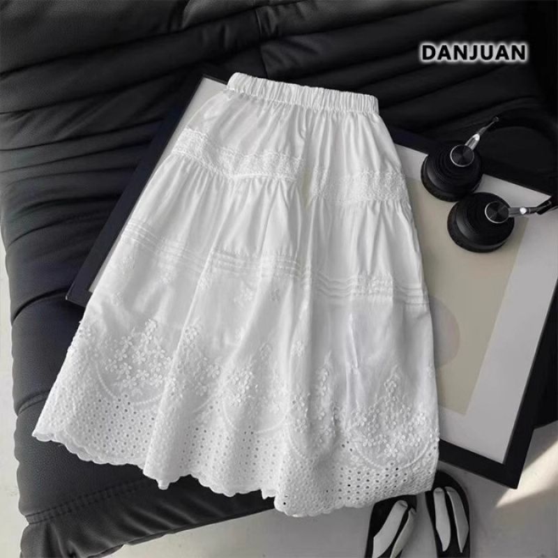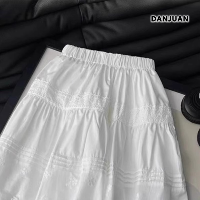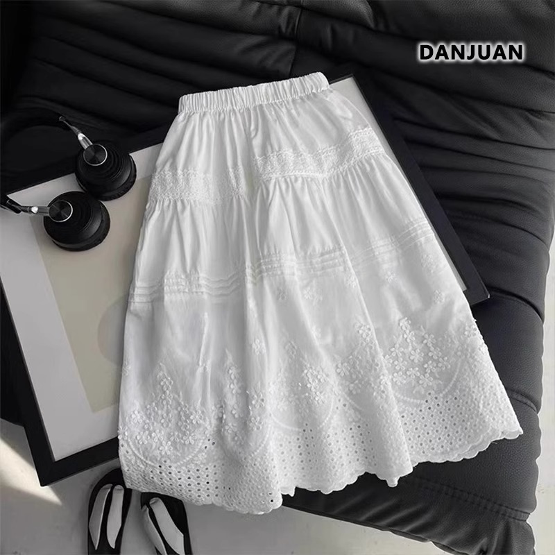 소녀의 치마 여름 2025 새로운 어린이 서양 스타일 공주 스커트 소녀의 자수 레이스 스커트 화이트 스커트 여름