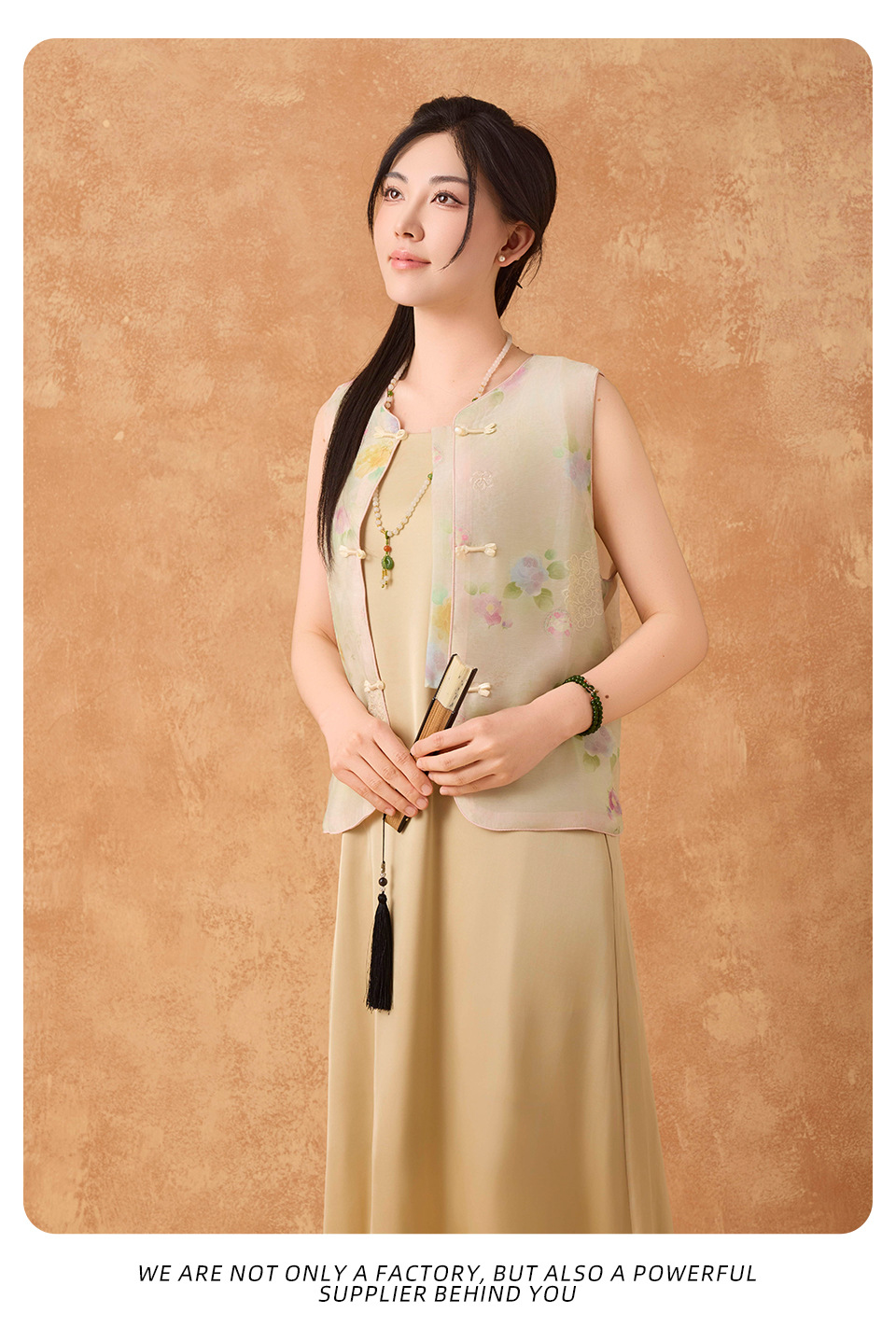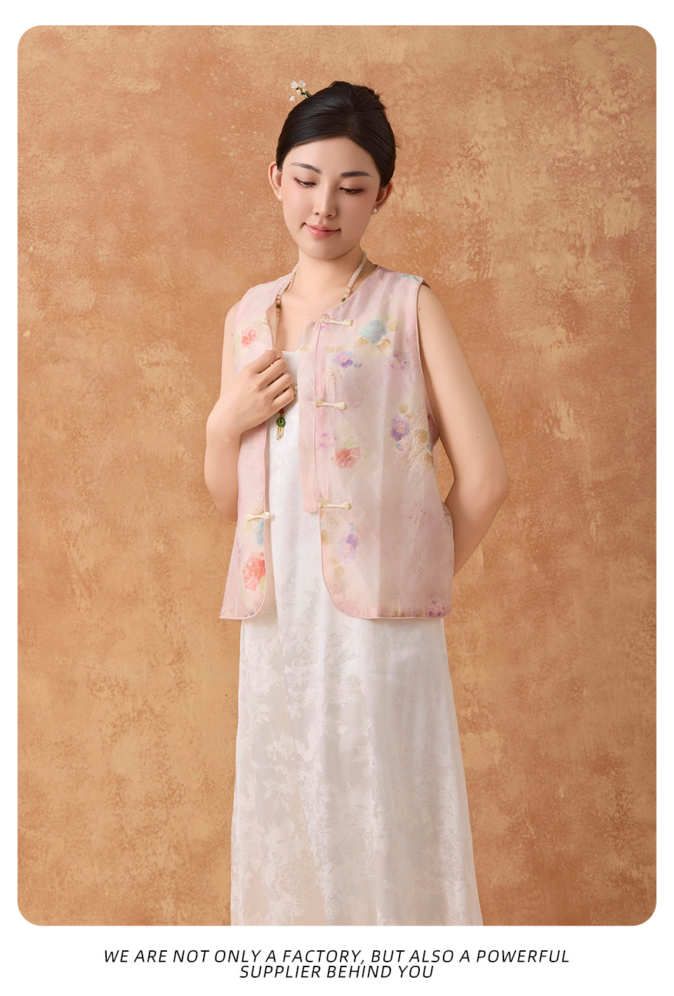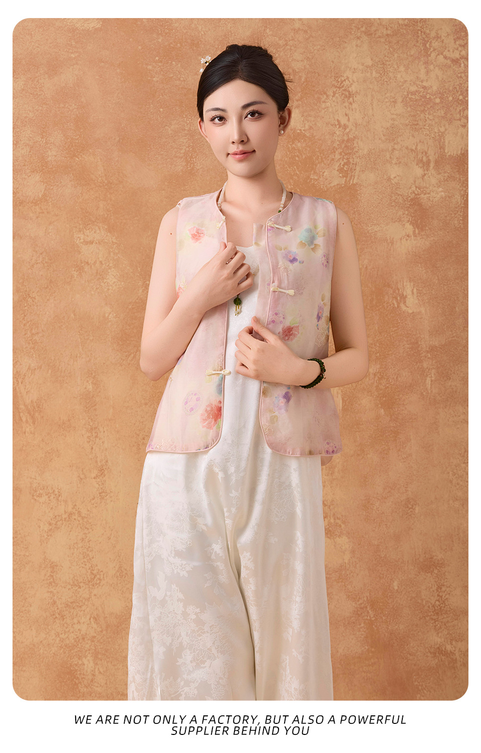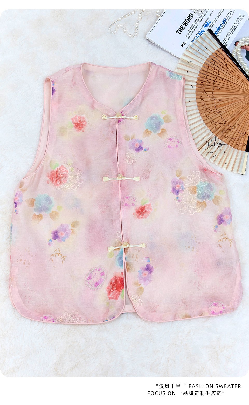2025 봄과 여름 얇은 복고풍 슬림 중국 스타일 버튼 조끼 여성의 새로운 중국 스타일 라운드 넥 신선한 조끼 재킷