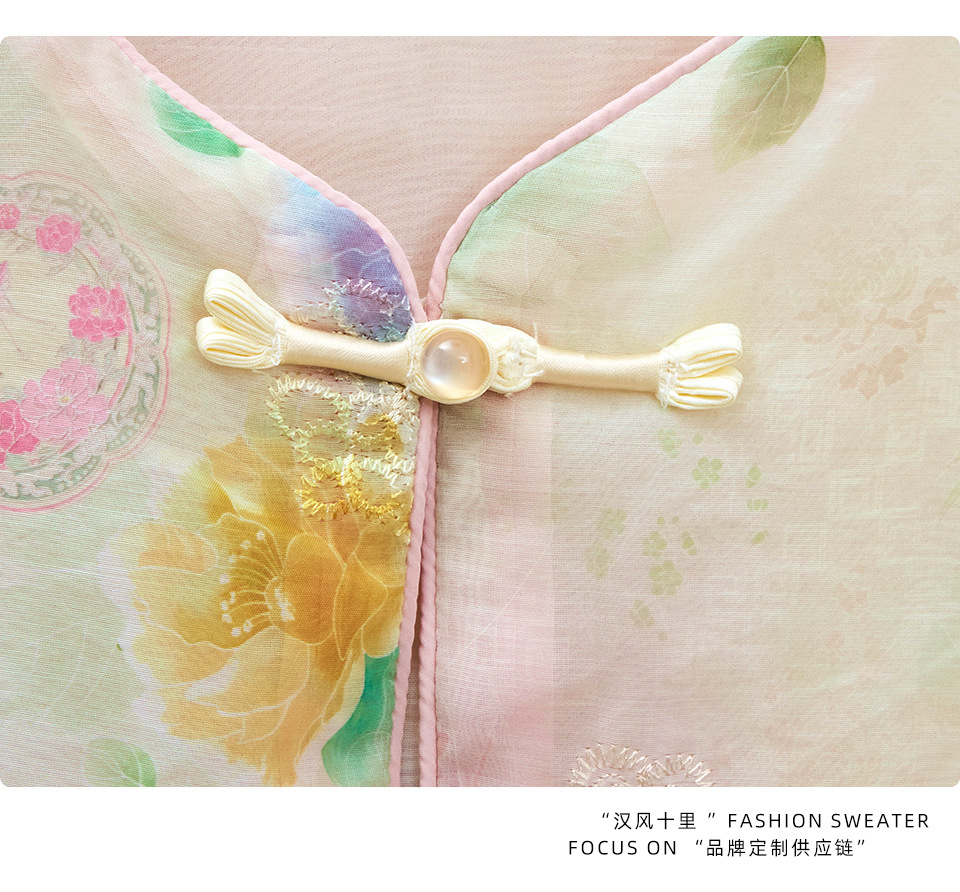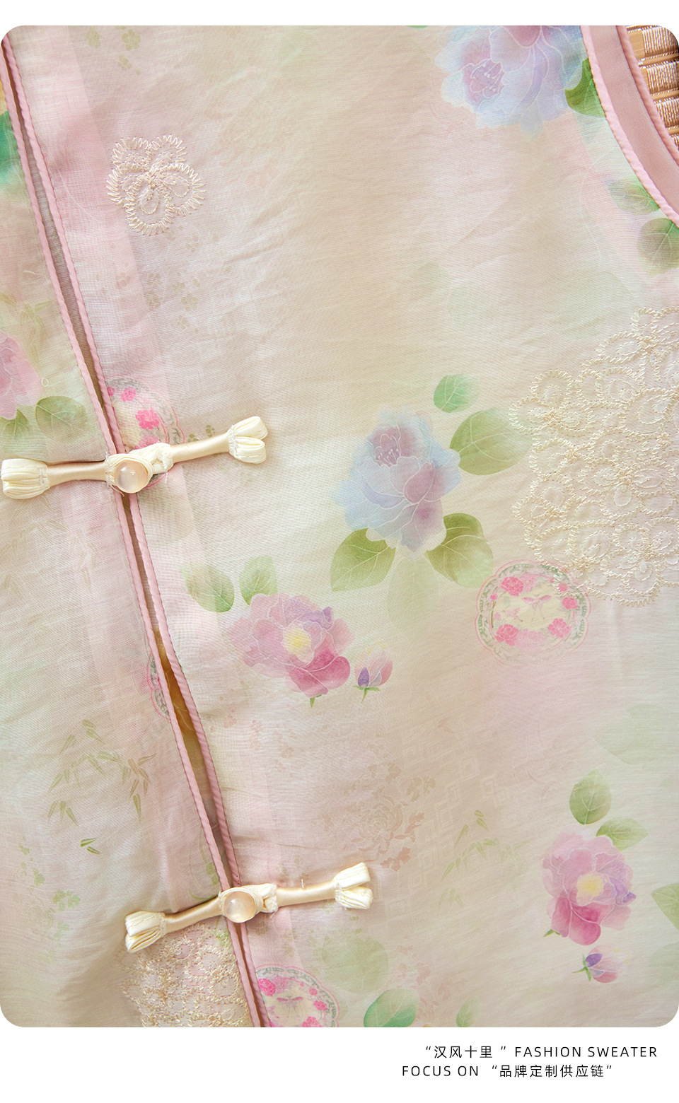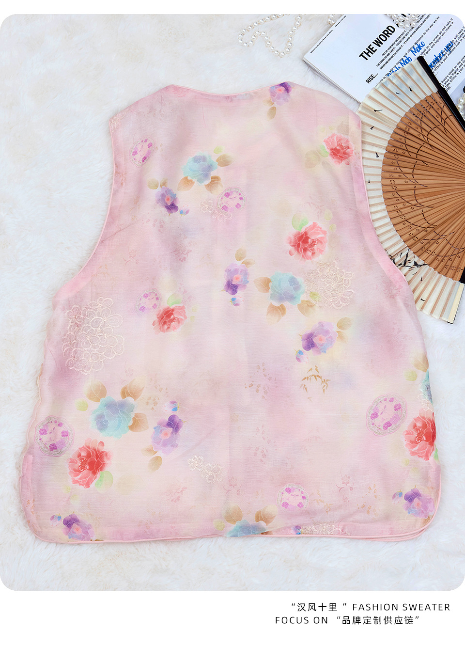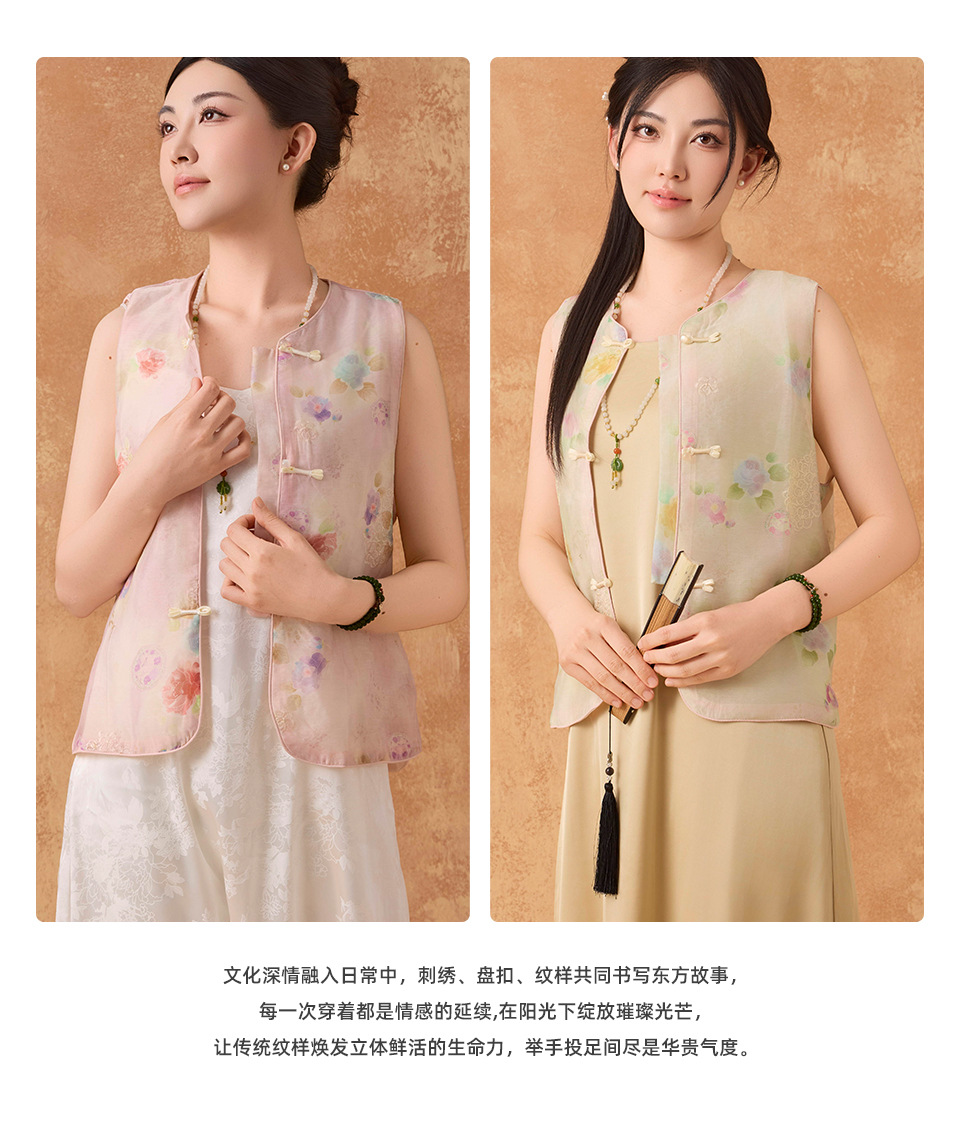 2025 봄과 여름 얇은 복고풍 슬림 중국 스타일 버튼 조끼 여성의 새로운 중국 스타일 라운드 넥 신선한 조끼 재킷
