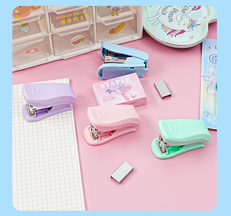 학생들이 편리하게 사용할 수 있는 리데메이 미니 마카롱 컬러 스테이플러, 사무실에서 사용하기 위한 소형 다기능 스테이플러