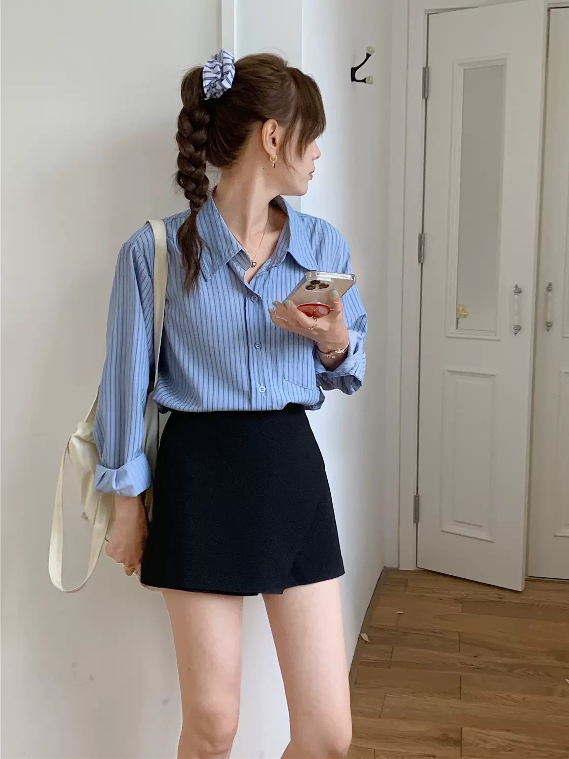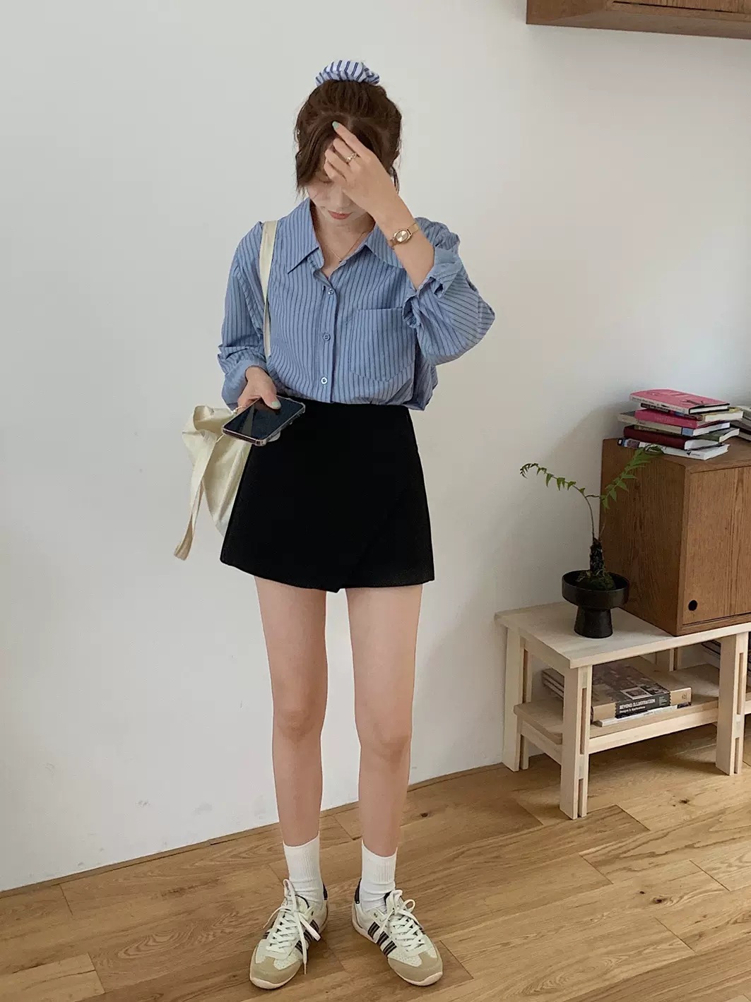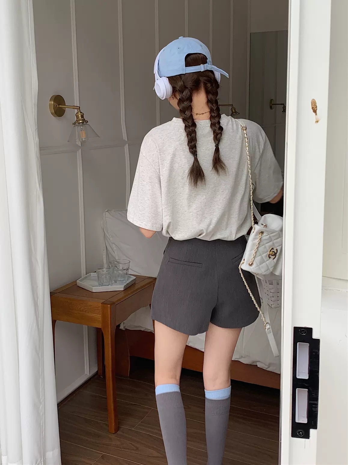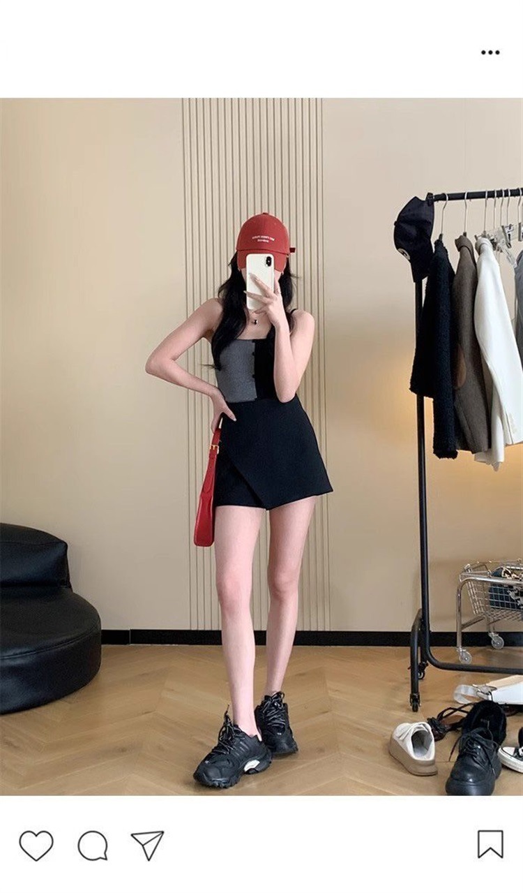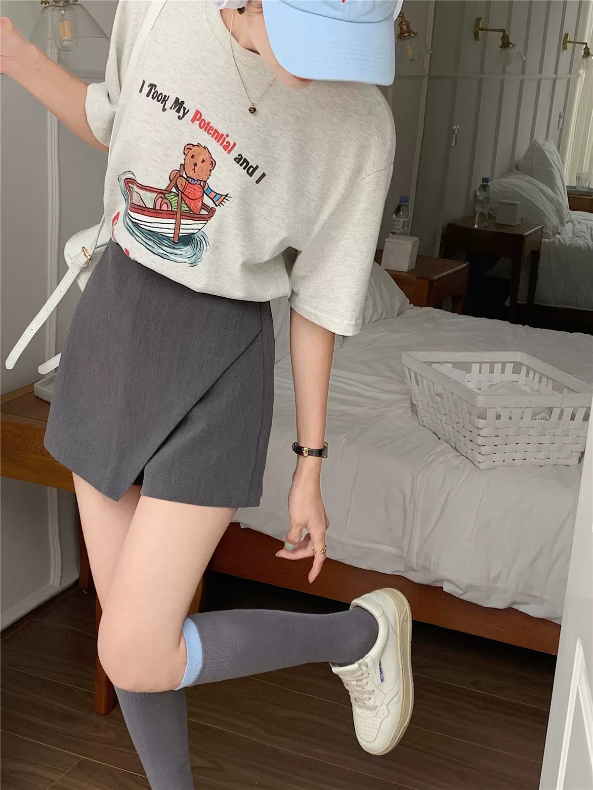 불규칙한 디자인의 하이웨이스트 슬리밍 여성용 스커트 팬츠, 봄 여름 신상 슬리밍 뱃살 커버 칼리지 스타일 수트 반바지스토어 가기