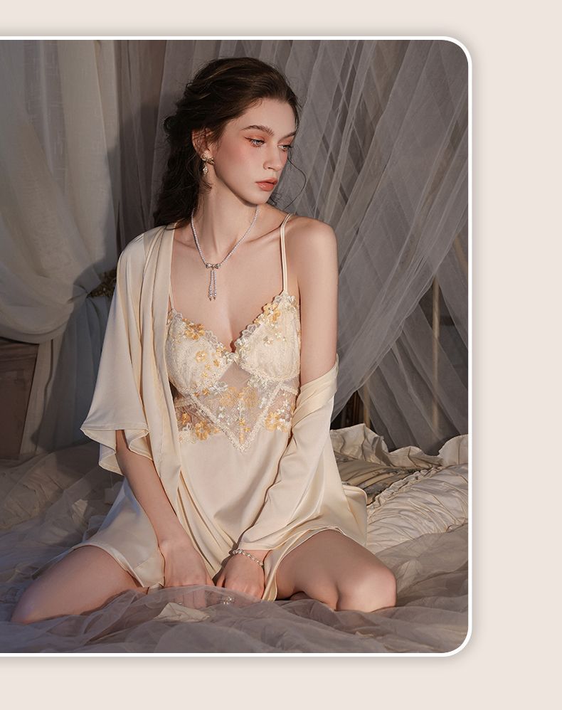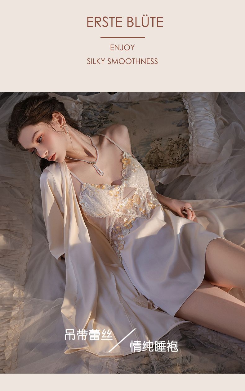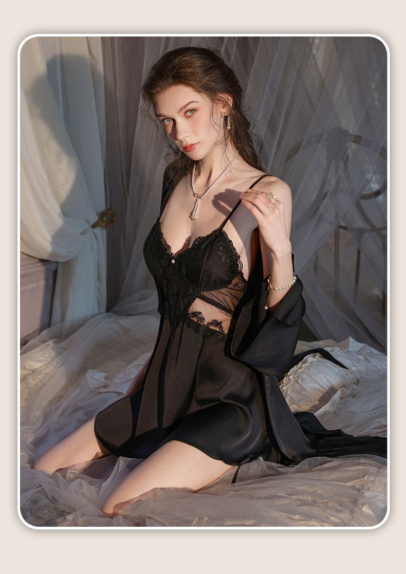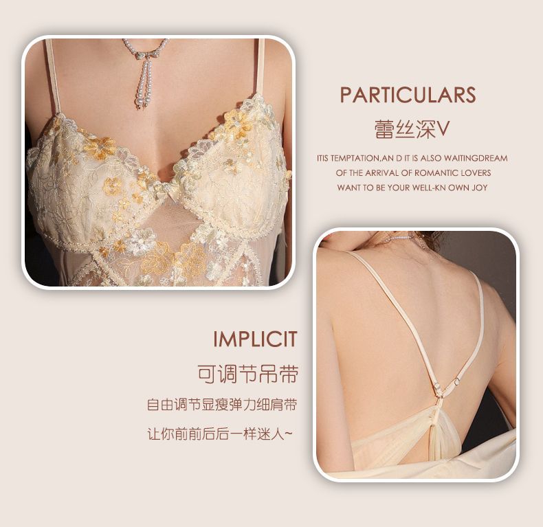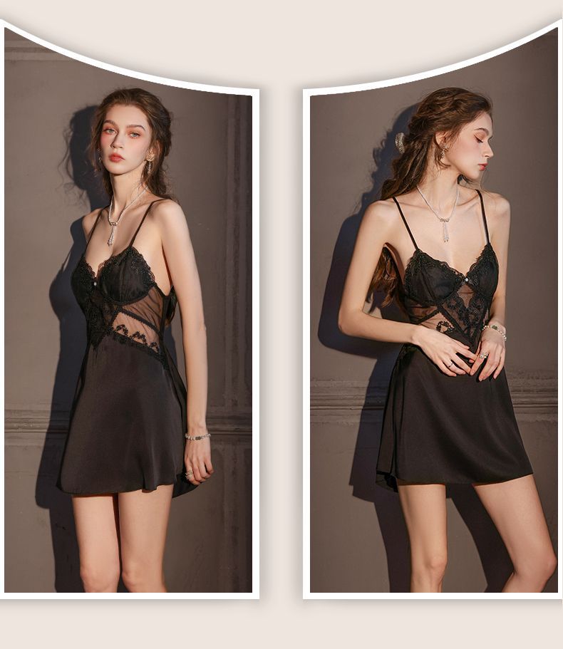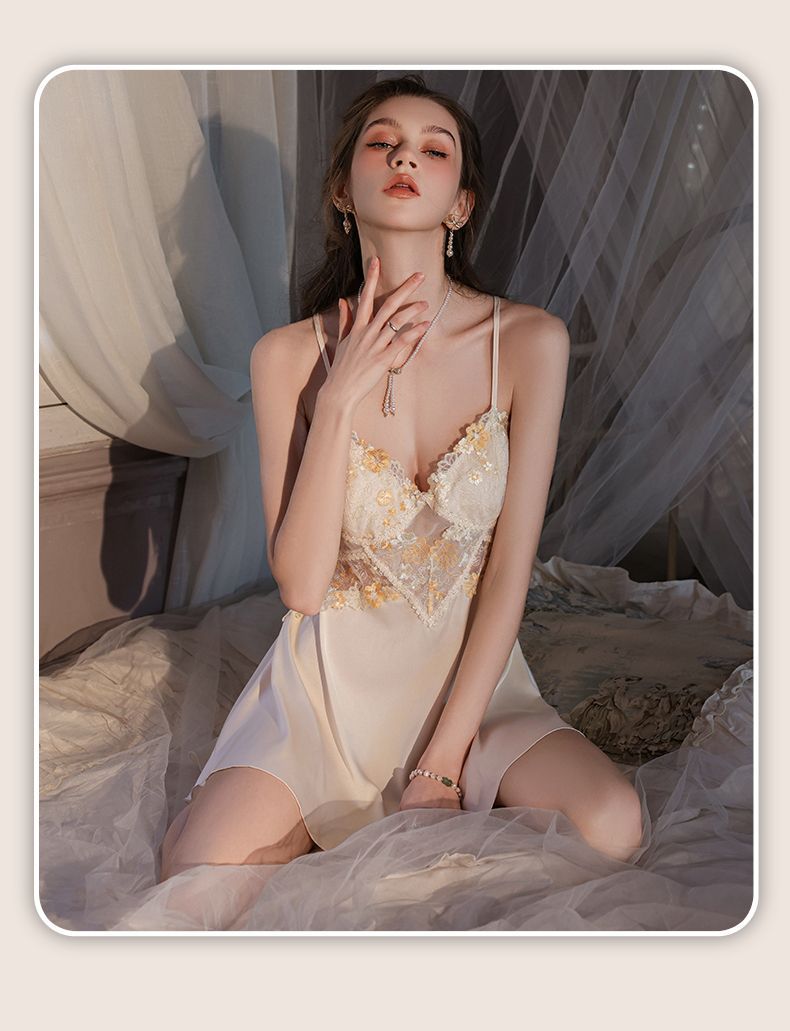 아이스 실크 라이트 럭셔리 섹시 슬링 레이스 할로우 나이트 가운 가슴 패드와 여성 나이트 가운 고급 세트 2025 년 여름 새로운 도착스토어 가기