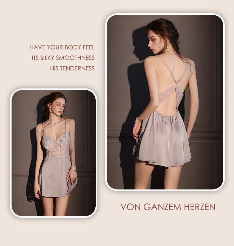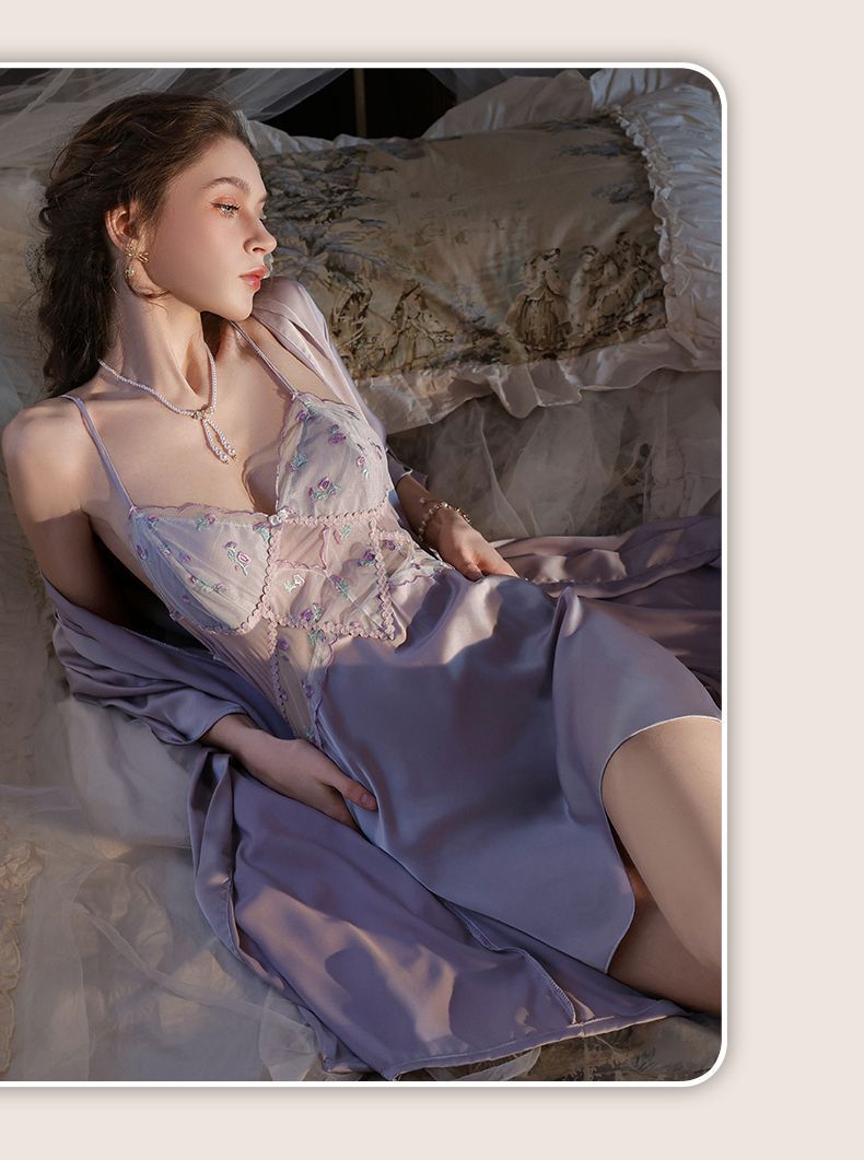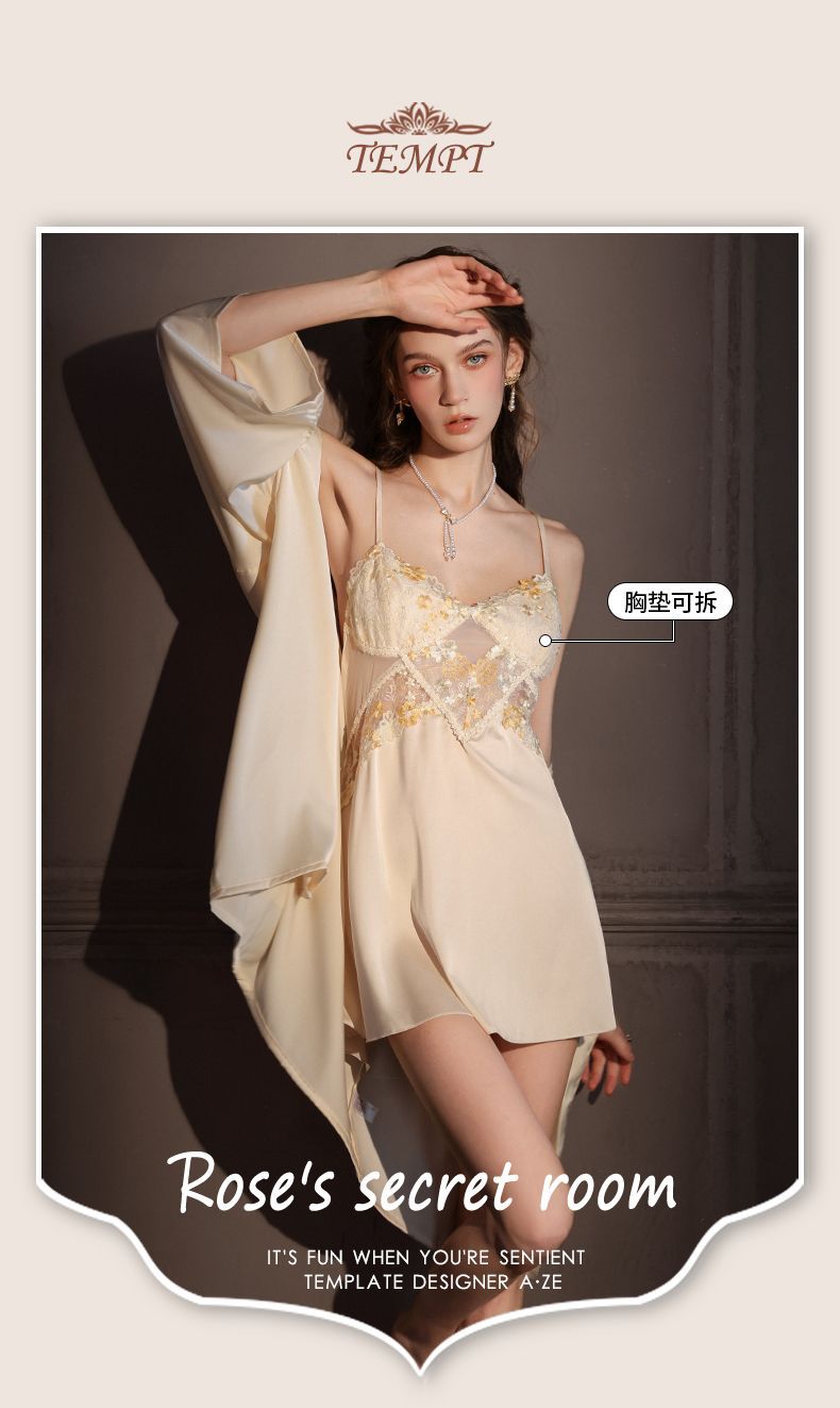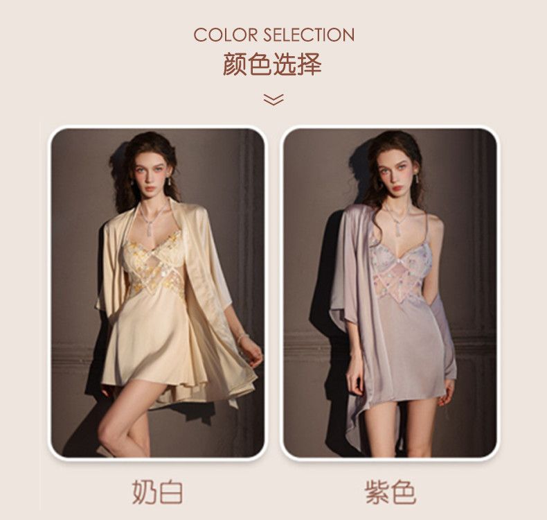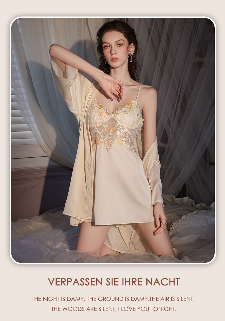아이스 실크 라이트 럭셔리 섹시 슬링 레이스 할로우 나이트 가운 가슴 패드와 여성 나이트 가운 고급 세트 2025 년 여름 새로운 도착스토어 가기