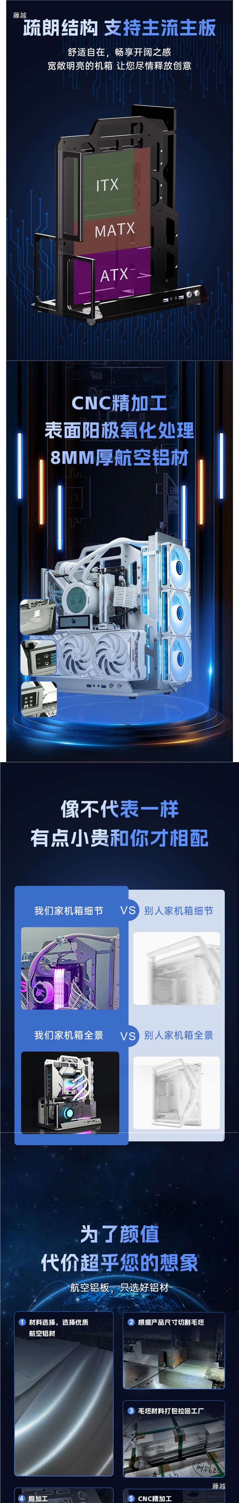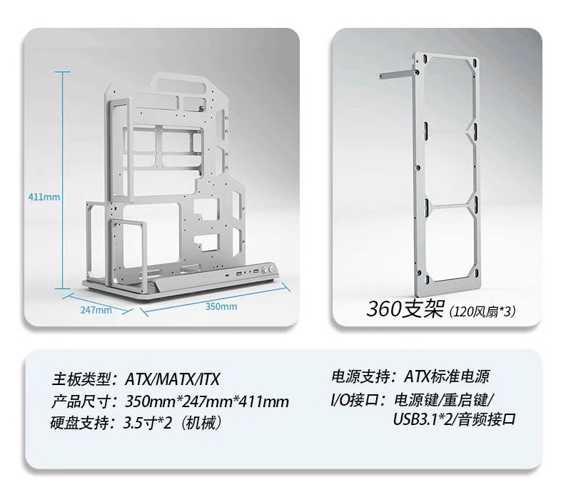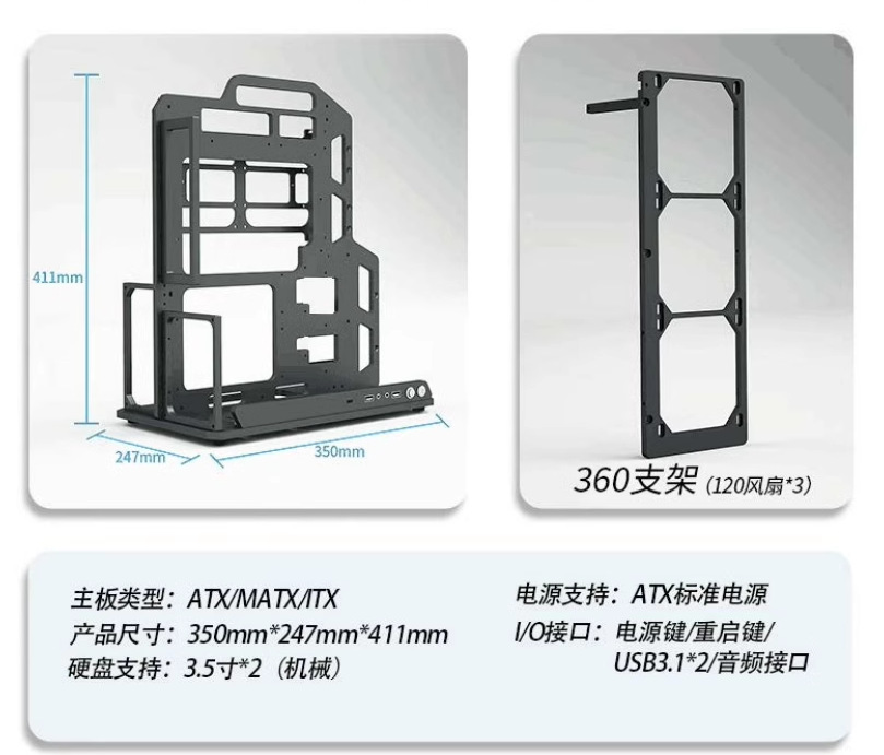 빠른 설정 컴퓨터 ATX 전체 알루미늄 합금 랙 공냉식 수냉식 데스크탑 MATX 간단한 휴대용 개방형 섀시