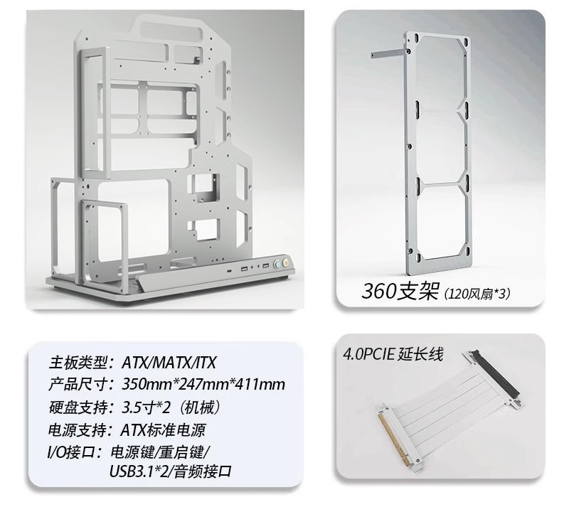 • 실버 - 섀시 + 360 브래킷 + PCIE4.0 연장 케이블 - 패키지 1