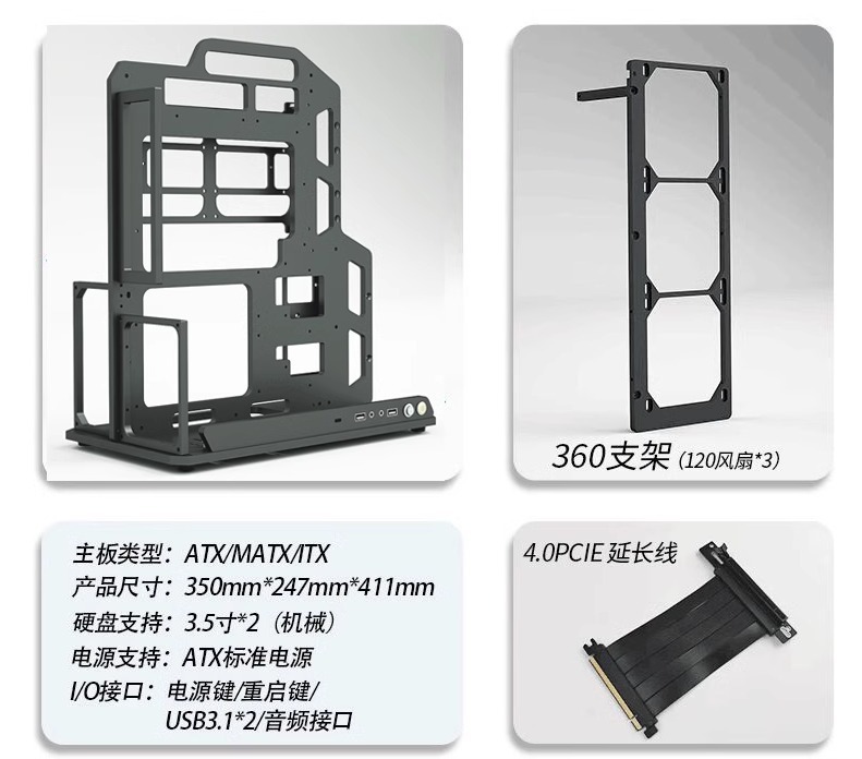 • 검정색 - 섀시 + 360 브래킷 + PCIE4.0 확장 케이블 - 패키지 1