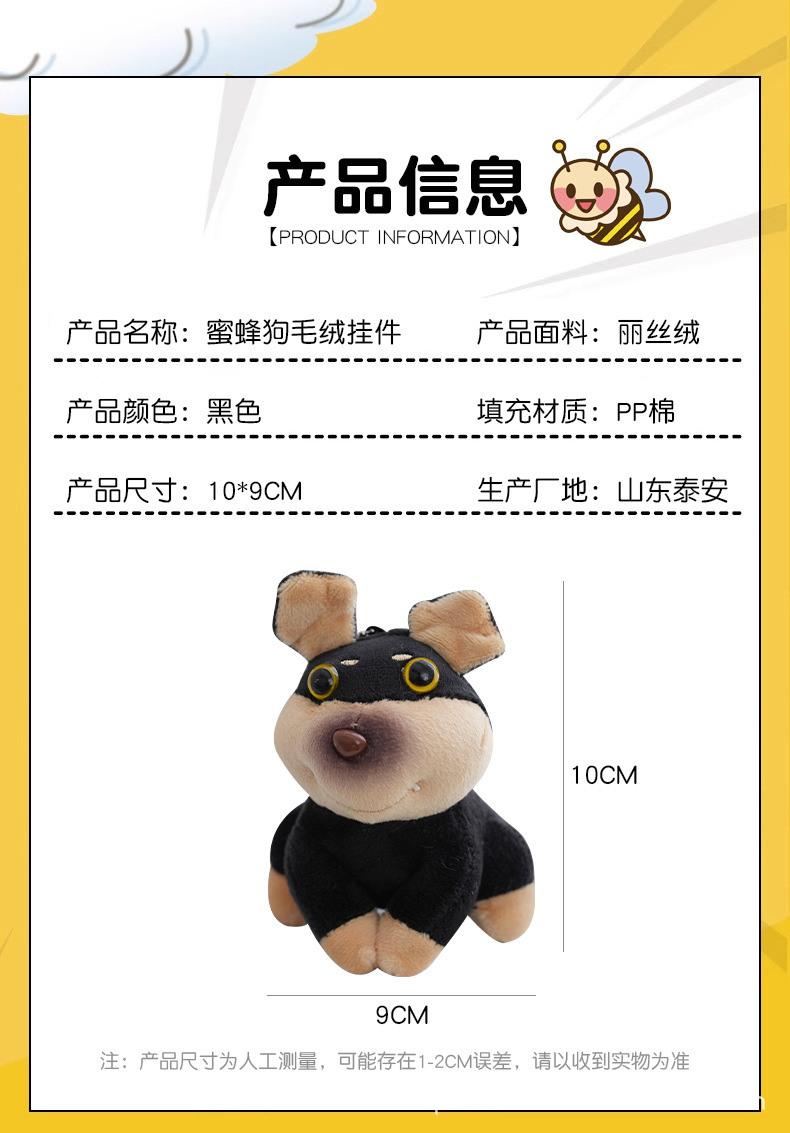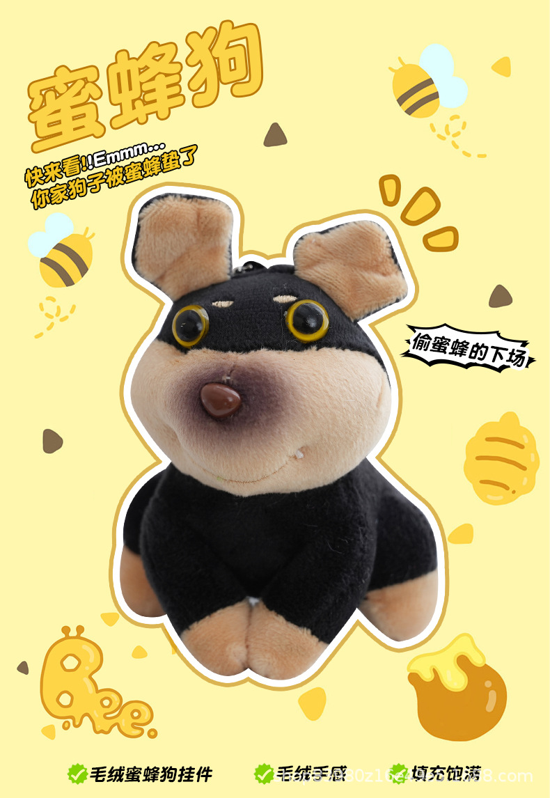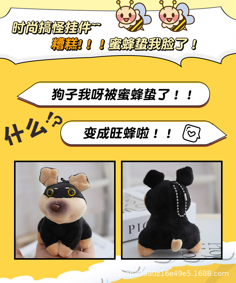 못생긴 꿀벌 강아지 펜던트 플러시 장난감 인형 인형 가방 펜던트 키 체인 플러시 장식 인형스토어 가기