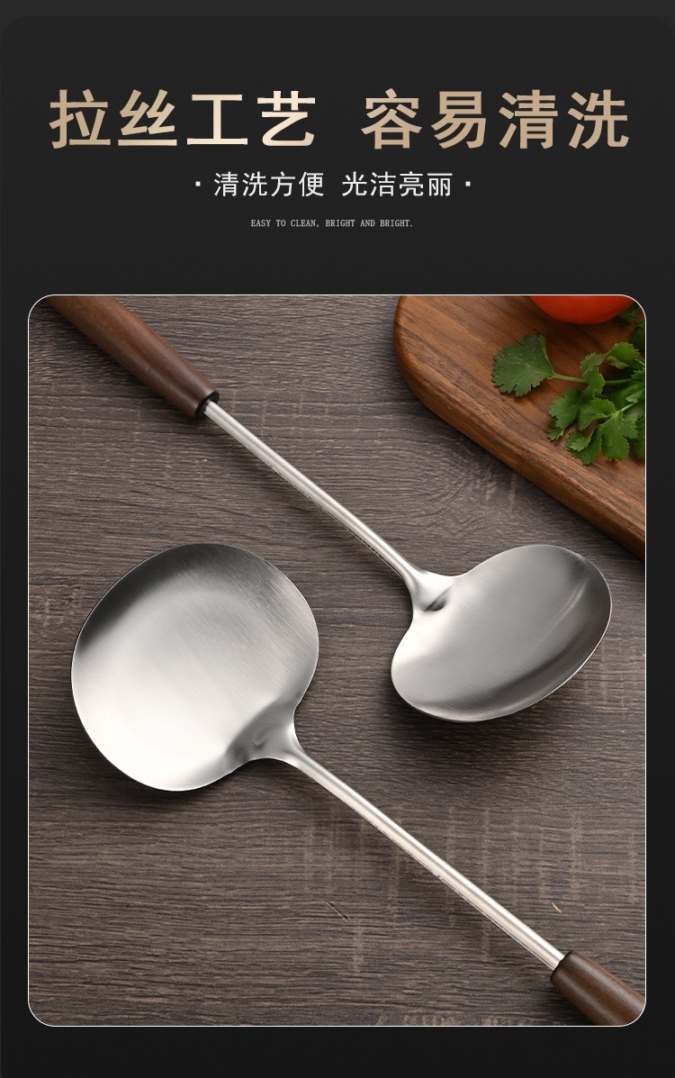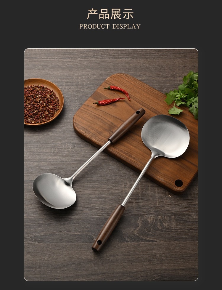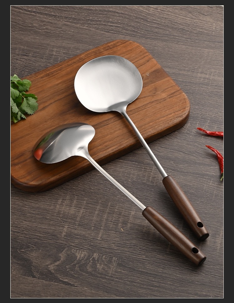 316 스테인리스 스틸 버섯주걱, 호두나무주걱, 볶음주걱, 튀김주걱, 주방용, 볶음밥, 튀김고기용 주걱, 긴 손잡이