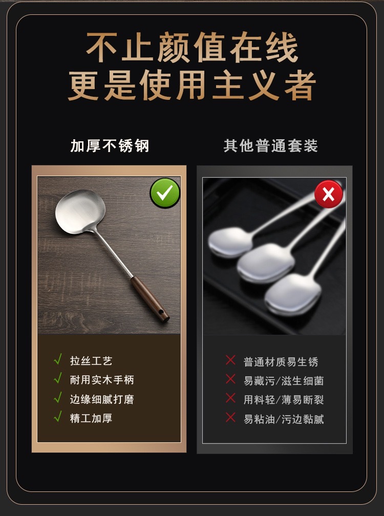 316 스테인리스 스틸 버섯주걱, 호두나무주걱, 볶음주걱, 튀김주걱, 주방용, 볶음밥, 튀김고기용 주걱, 긴 손잡이스토어 가기