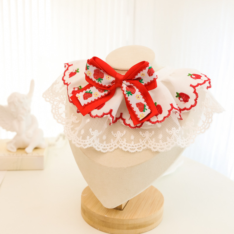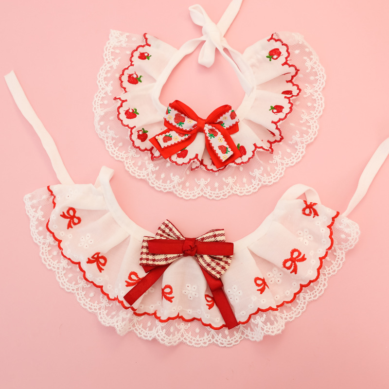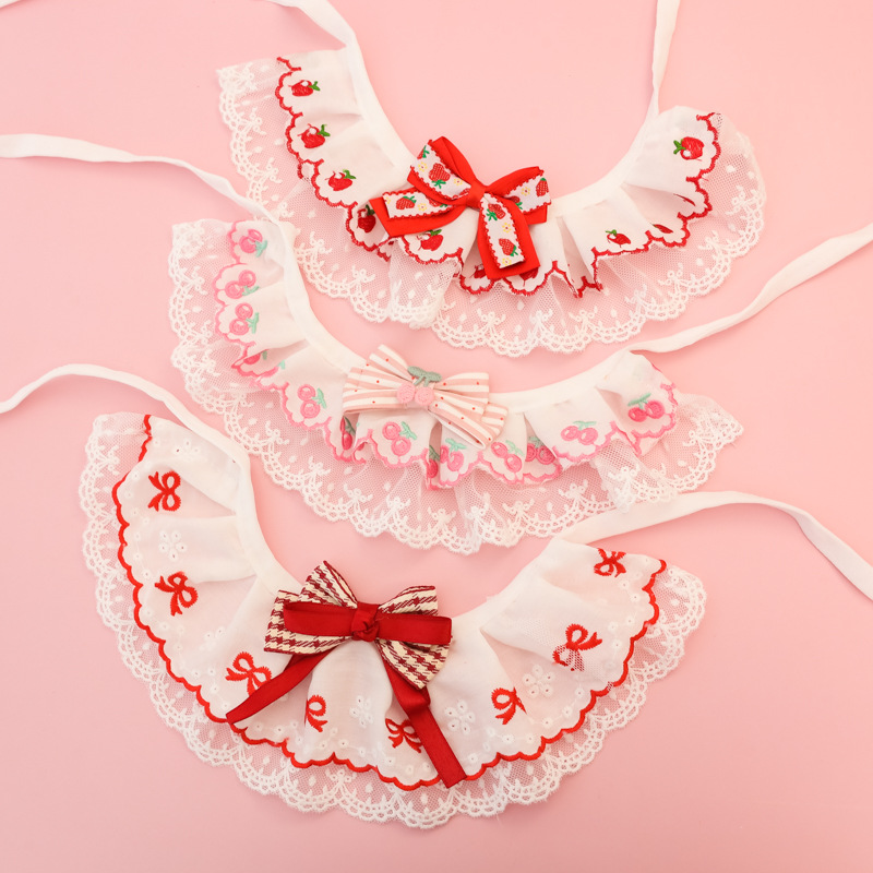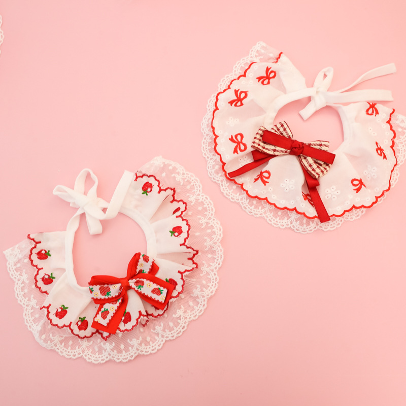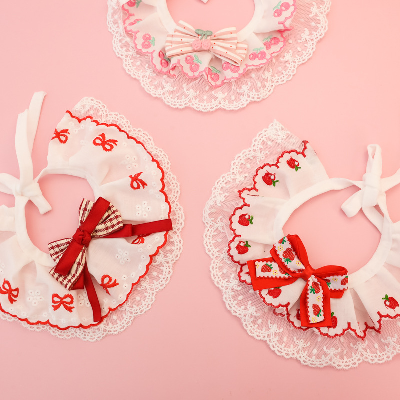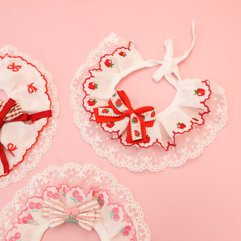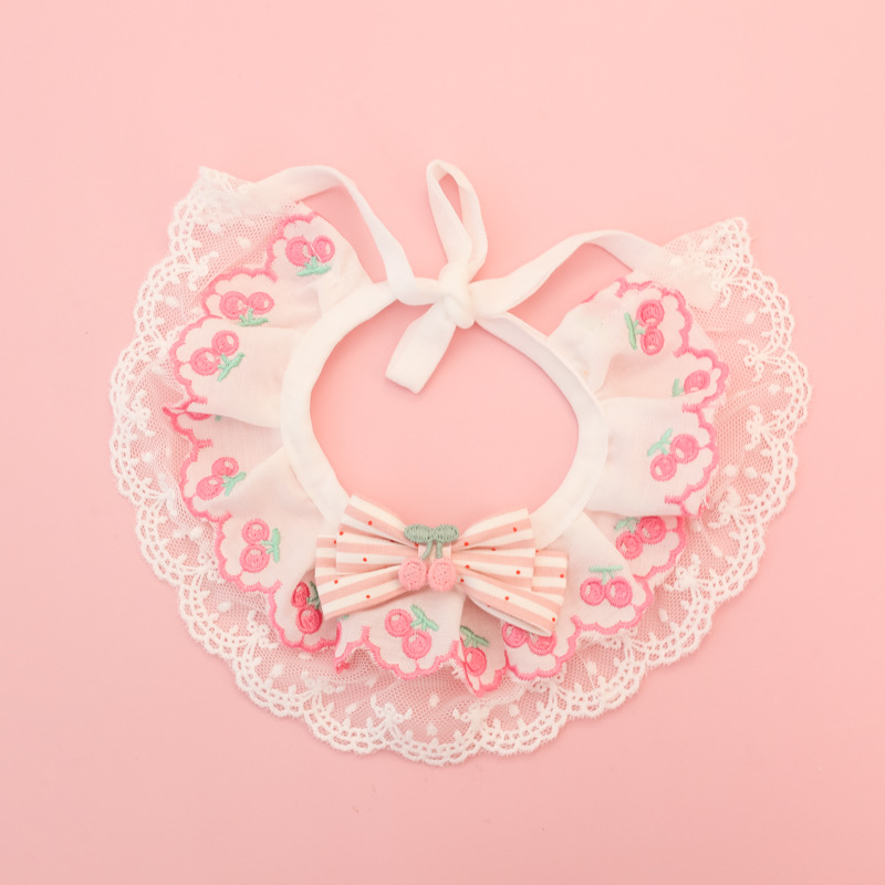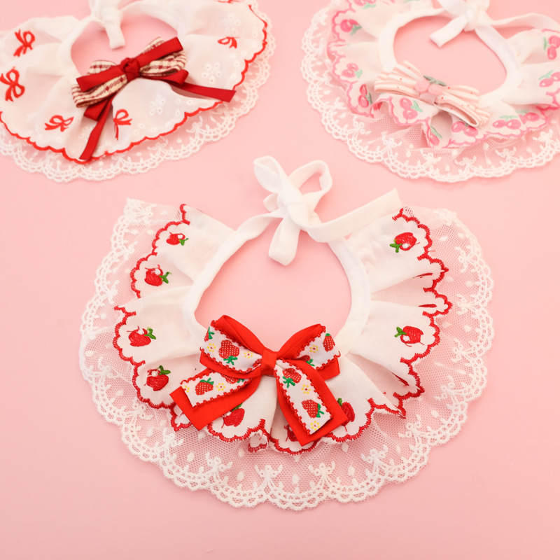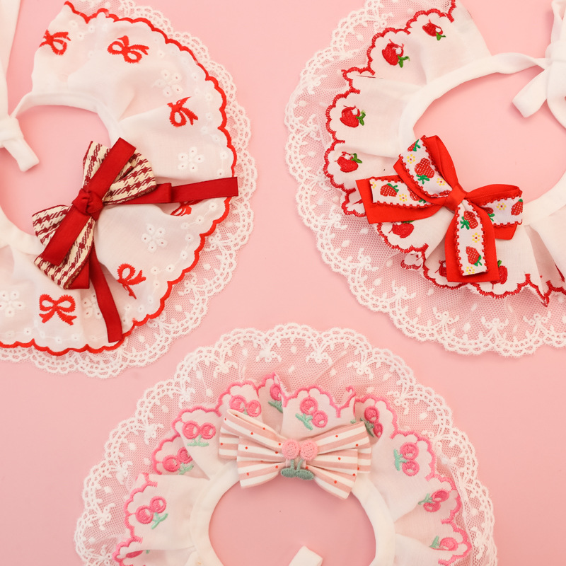 애완동물 목걸이, 고양이와 강아지 침 수건, 레이스 꽃 리본, 딸기 체리, 봄 여름 얇은 목 스카프스토어 가기