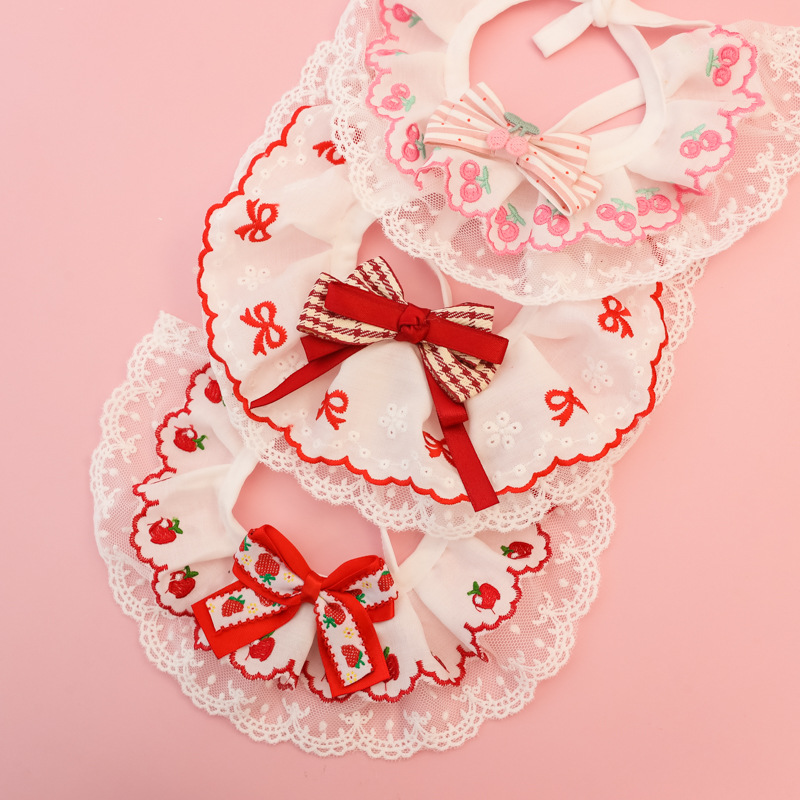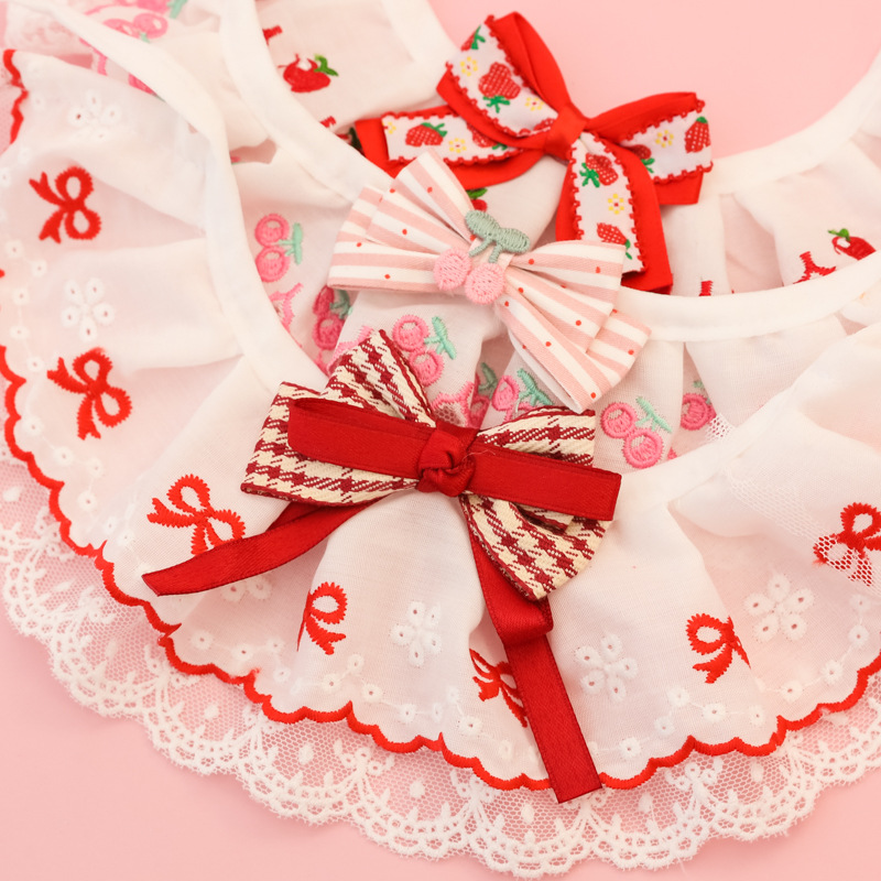 애완동물 목걸이, 고양이와 강아지 침 수건, 레이스 꽃 리본, 딸기 체리, 봄 여름 얇은 목 스카프