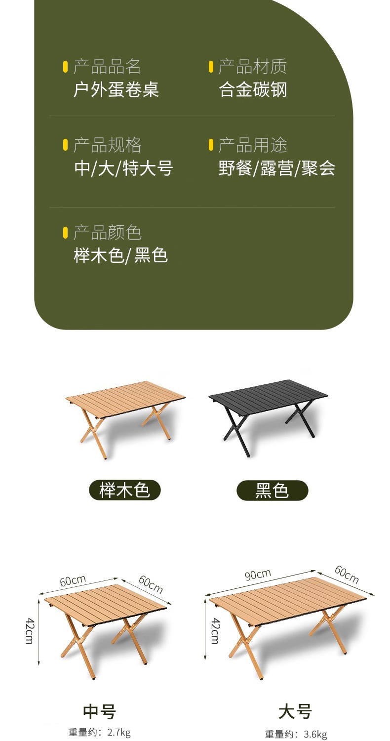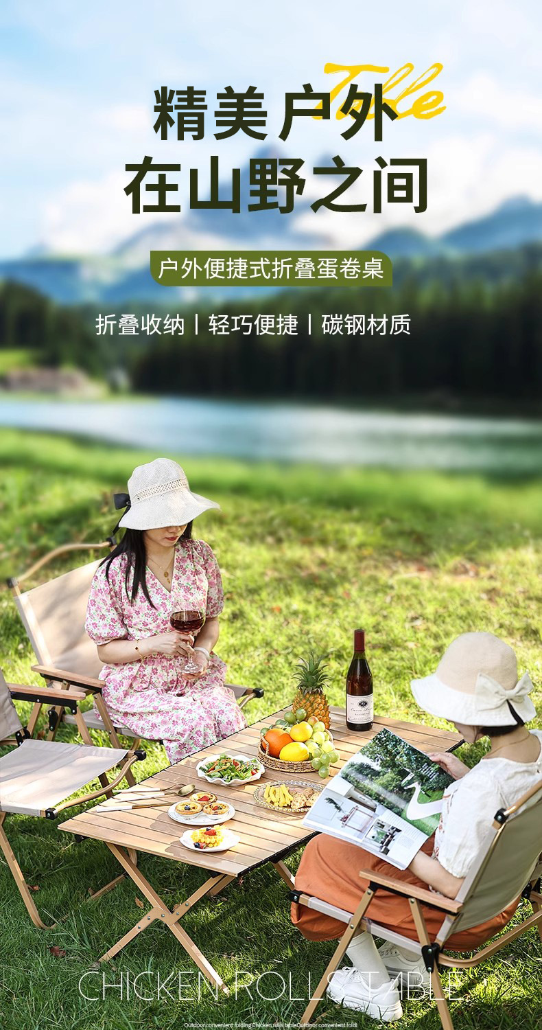 야외 접이식 에그롤 테이블 캠핑용 특수 탄소강 경량 테이블 피크닉 장비 풀세트 접이식 테이블과 의자