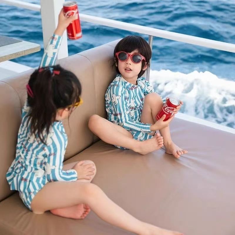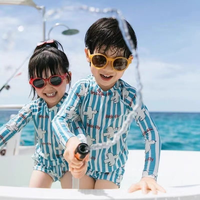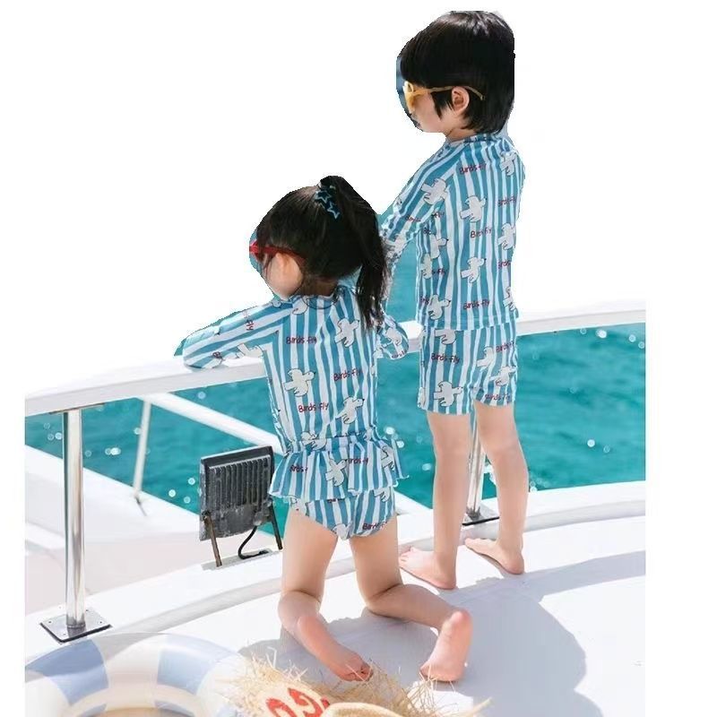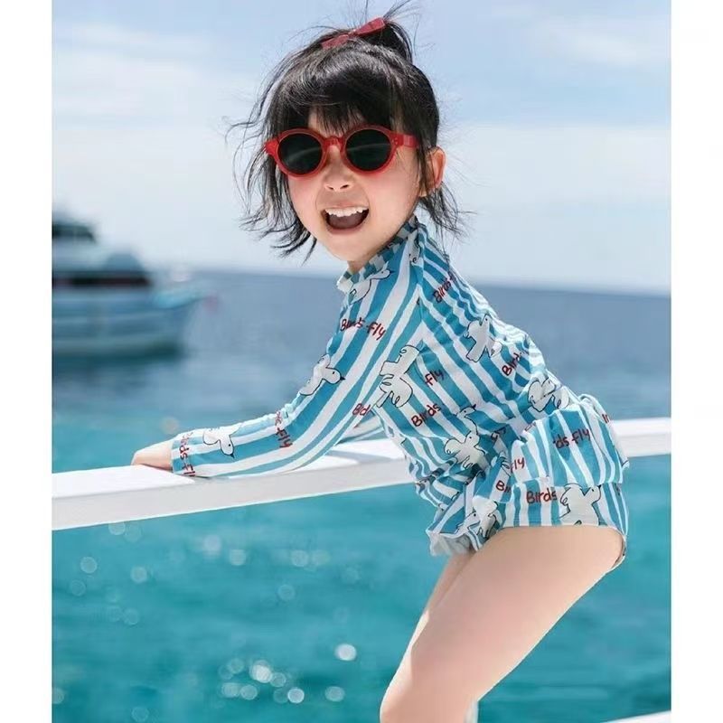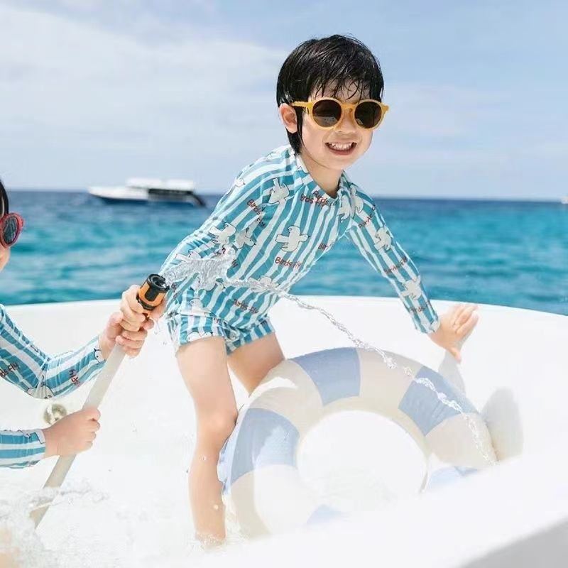 여름 학생 버전 수영복 한국 스타일 소년과 소녀 태양 보호 긴팔 속건 인쇄 ins 스타일 아기 어린이 수영복