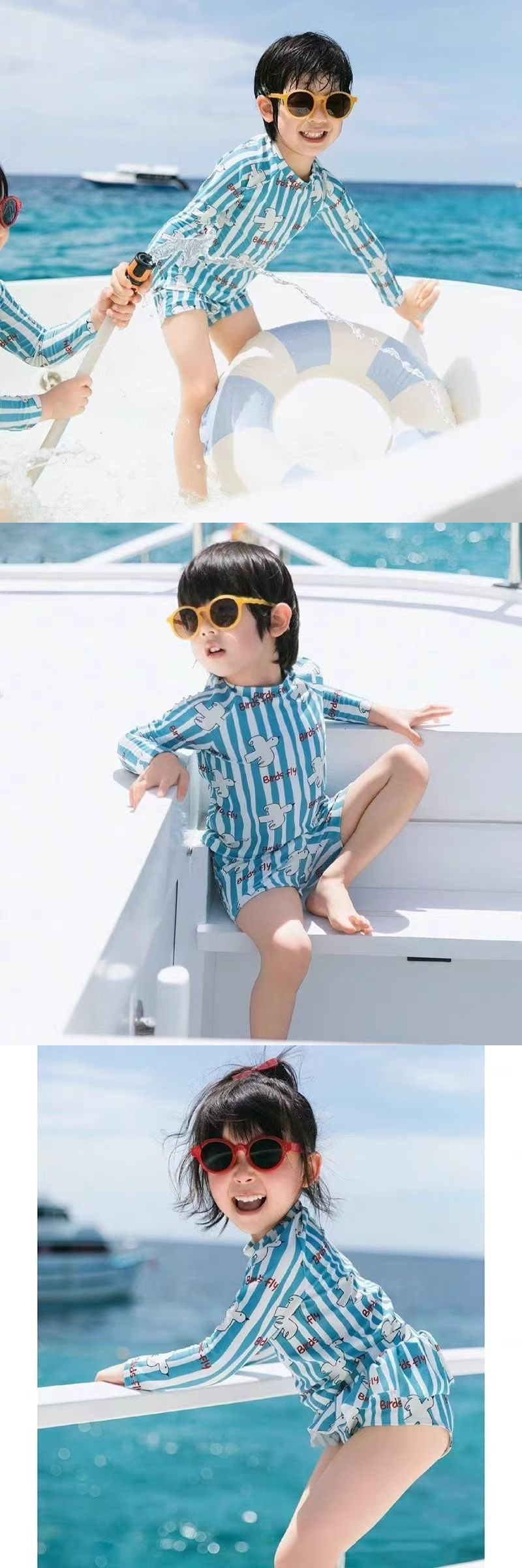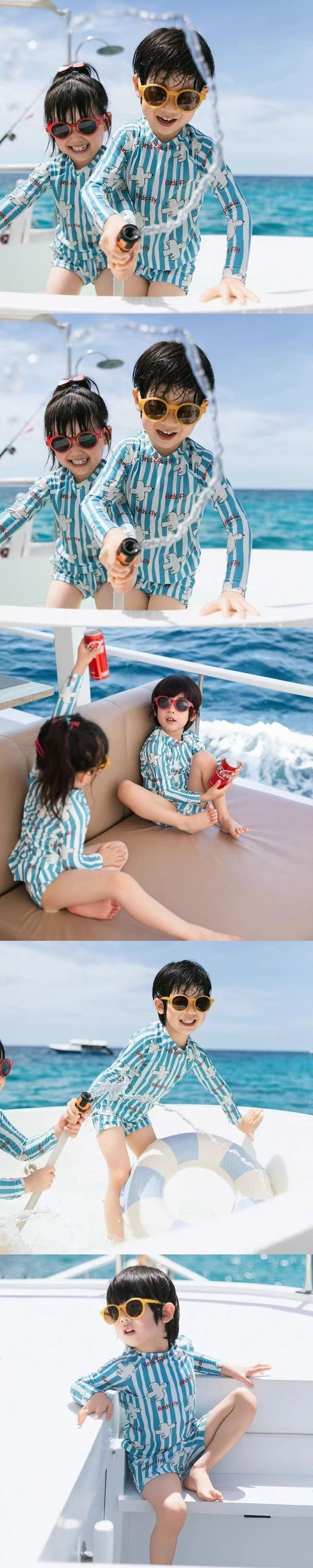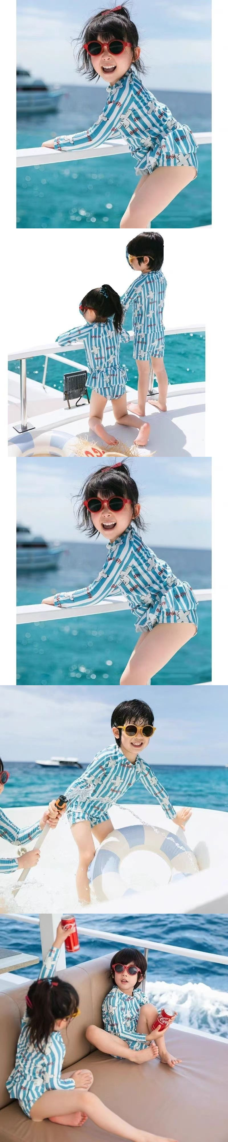 여름 학생 버전 수영복 한국 스타일 소년과 소녀 태양 보호 긴팔 속건 인쇄 ins 스타일 아기 어린이 수영복