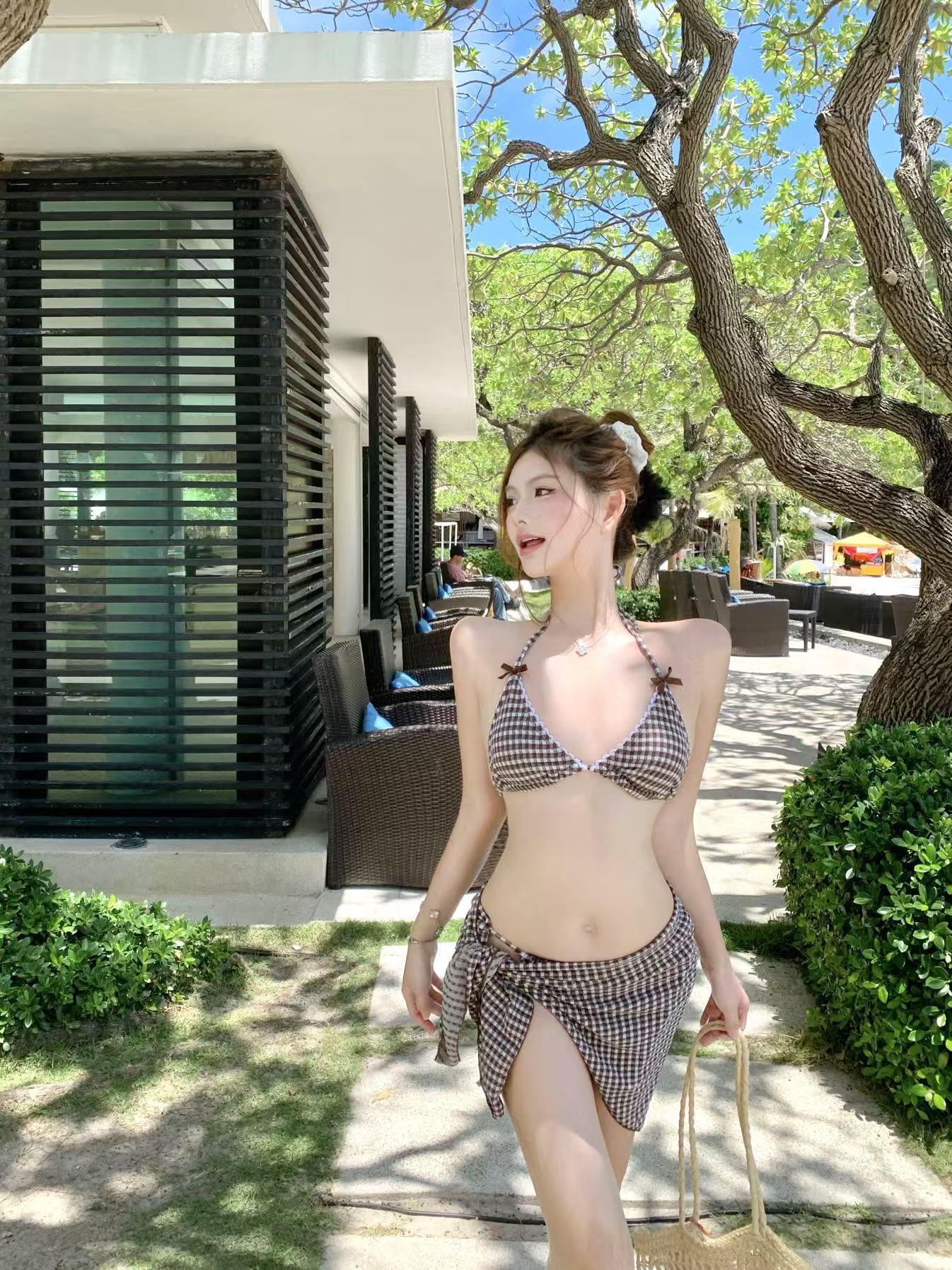 [생초오레오] 바캉스 비키니 소녀 스플릿 3피스 바캉스 슈트 브라운 비키니스토어 가기