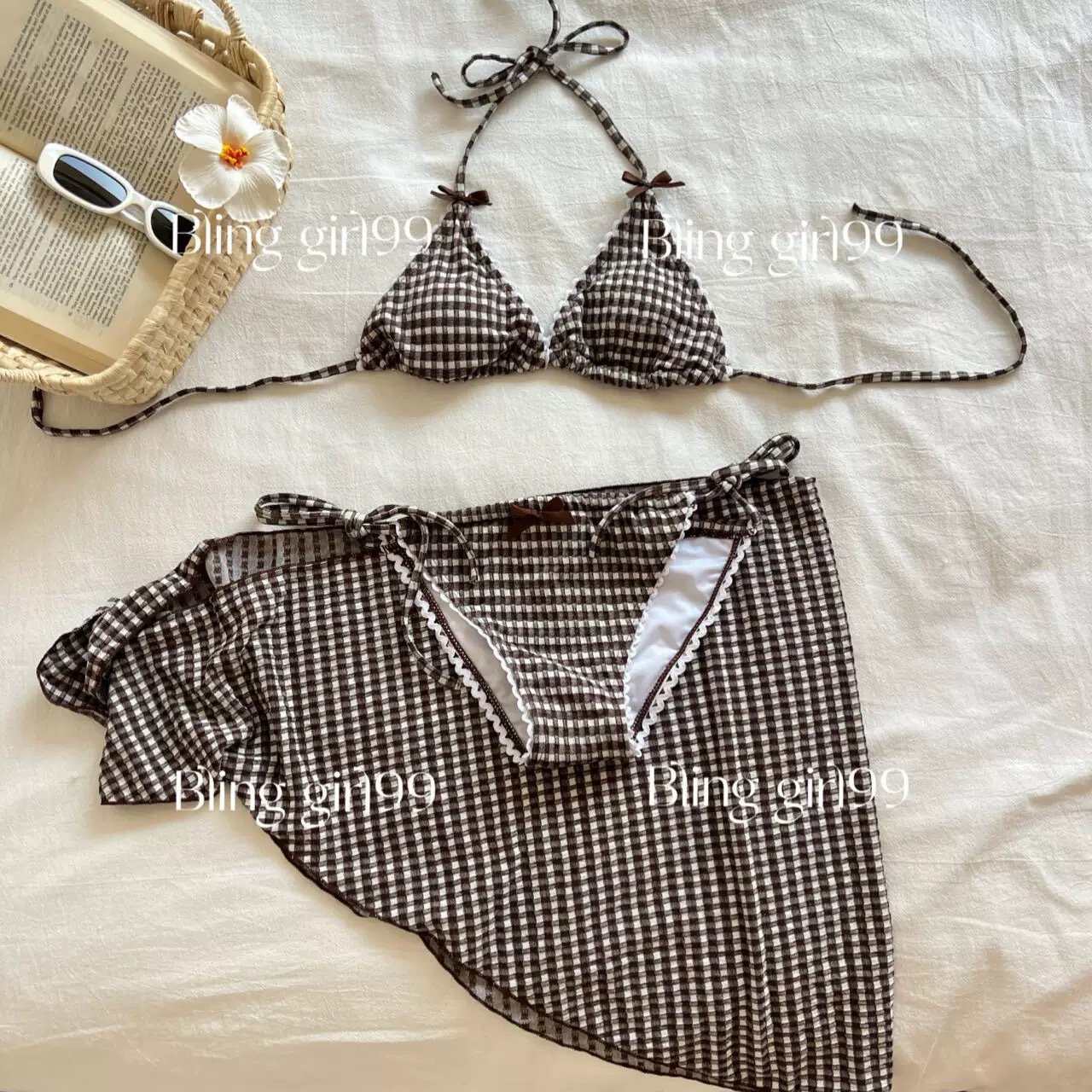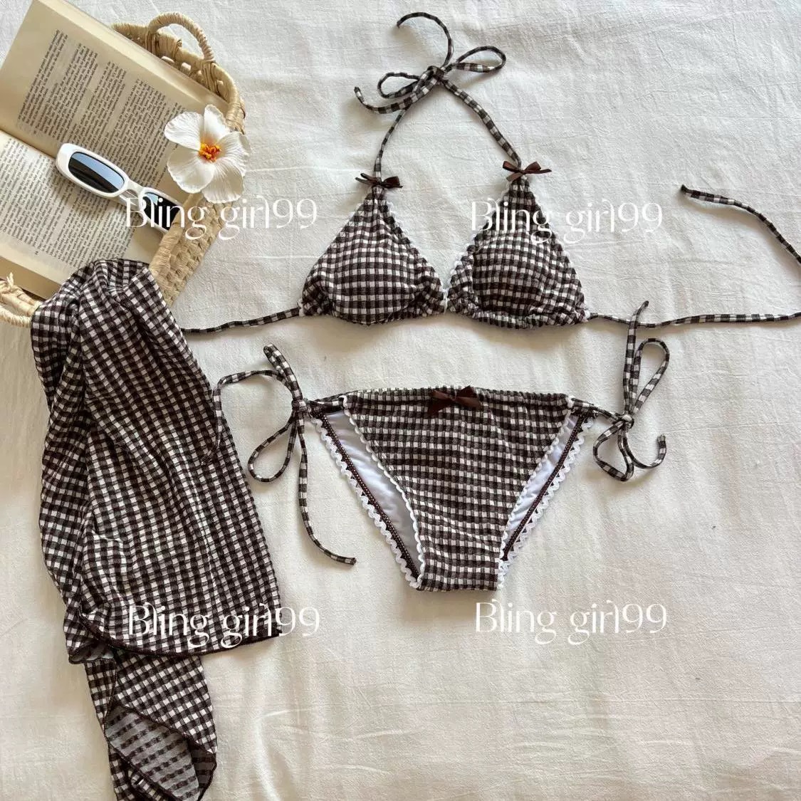 [생초오레오] 바캉스 비키니 소녀 스플릿 3피스 바캉스 슈트 브라운 비키니