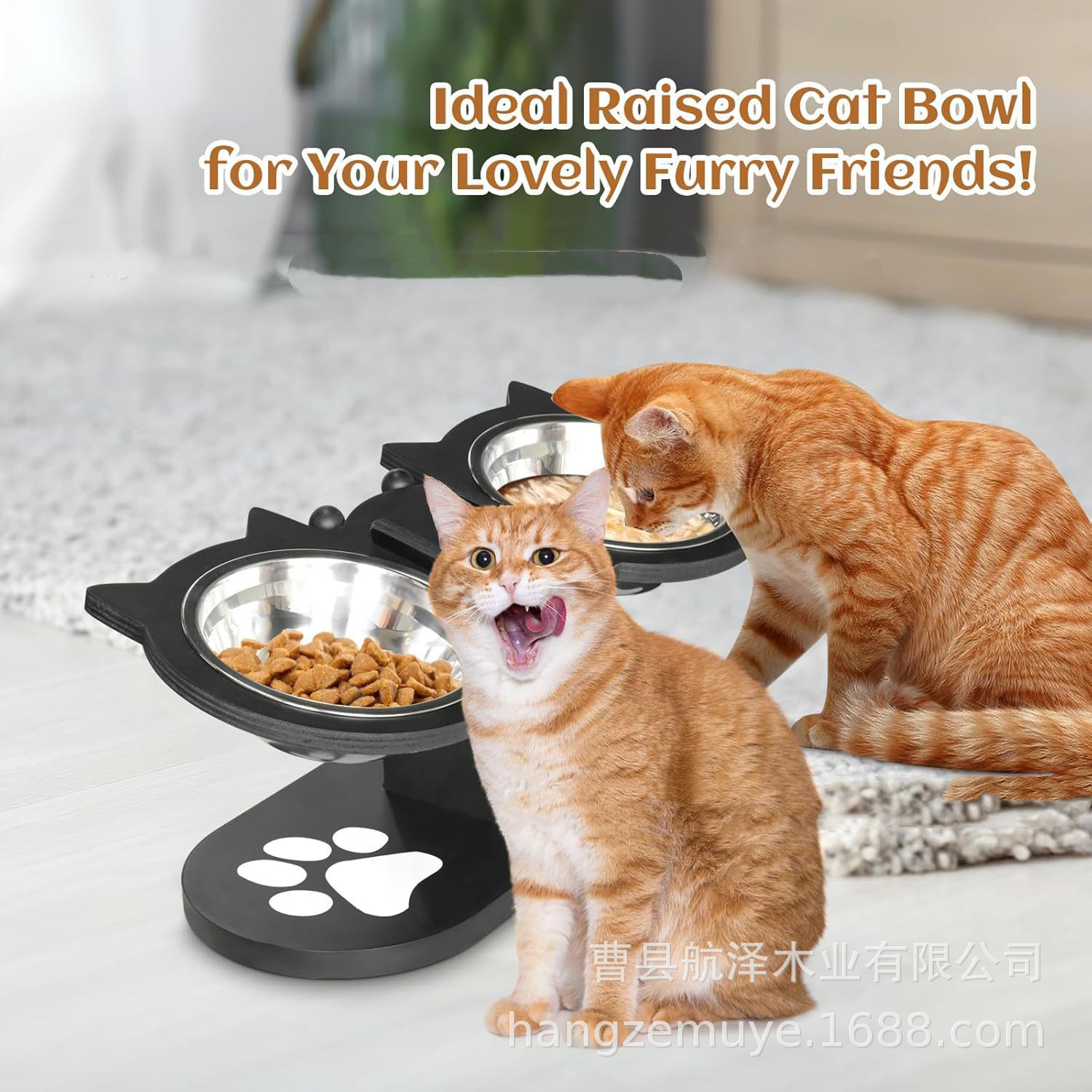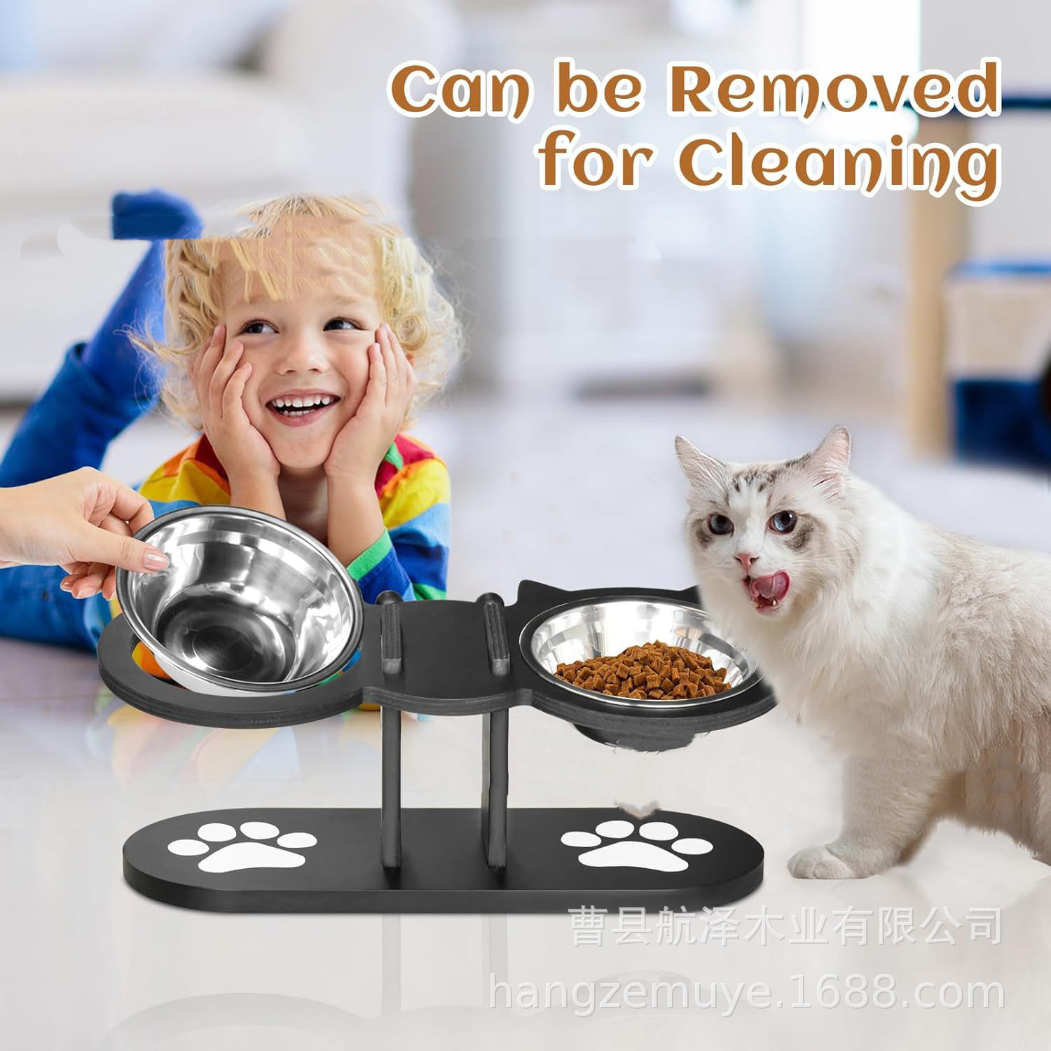 국경을 넘는 나무로 만든 애완동물 밥그릇 받침대, 목 보호 기능이 있는 수직형 애완동물 밥그릇 급식기, 탈부착 가능한 강아지 물통 받침대, 고양이 밥그릇 받침대