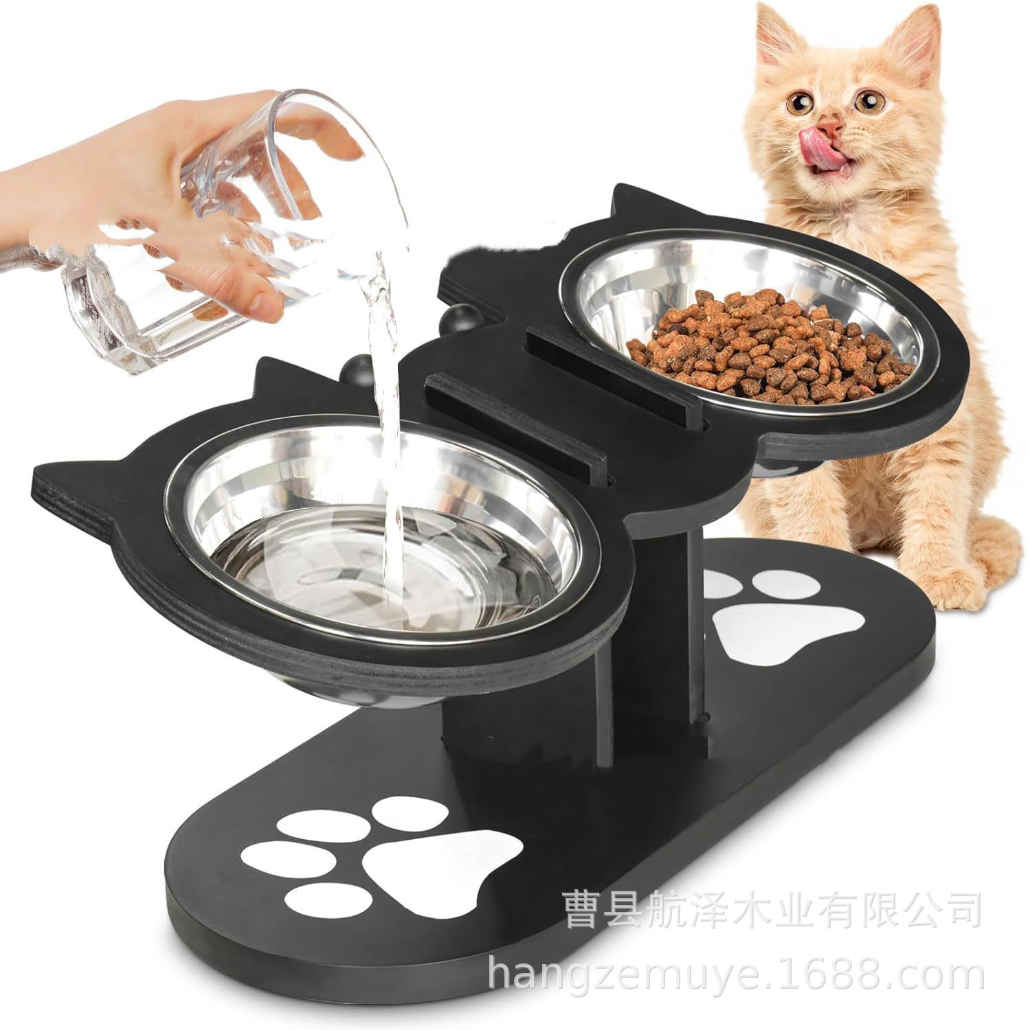 국경을 넘는 나무로 만든 애완동물 밥그릇 받침대, 목 보호 기능이 있는 수직형 애완동물 밥그릇 급식기, 탈부착 가능한 강아지 물통 받침대, 고양이 밥그릇 받침대스토어 가기