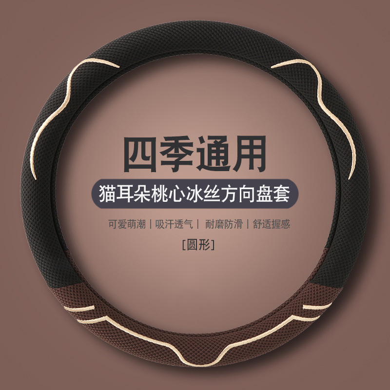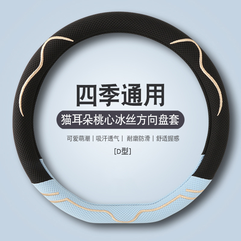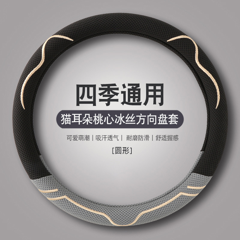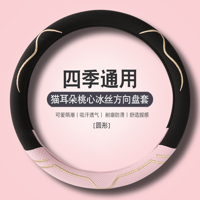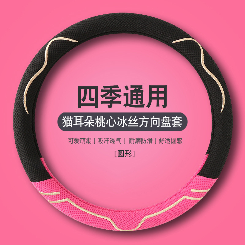 국경 간 얼음 실크 만화 자동차 핸들 커버 수 놓은 고양이 귀 커버 미끄럼 방지 통기성 아마존 도매