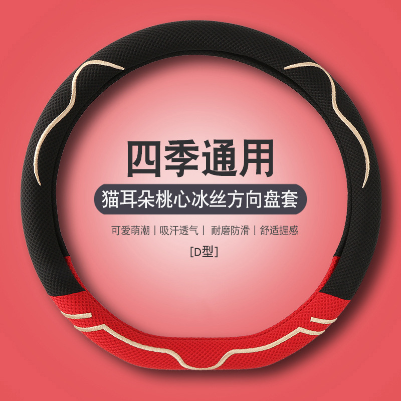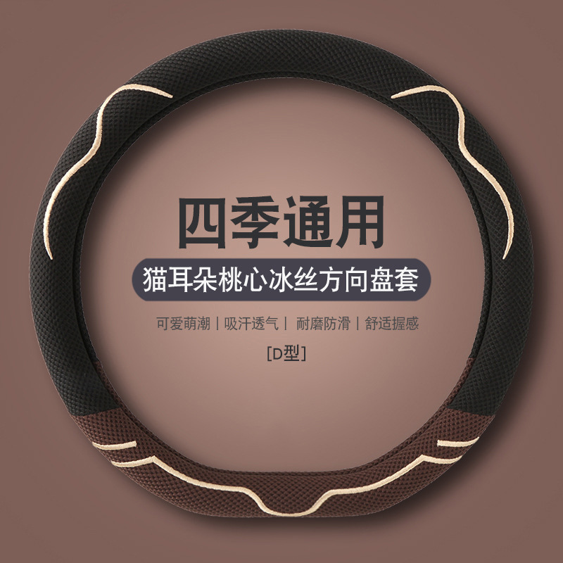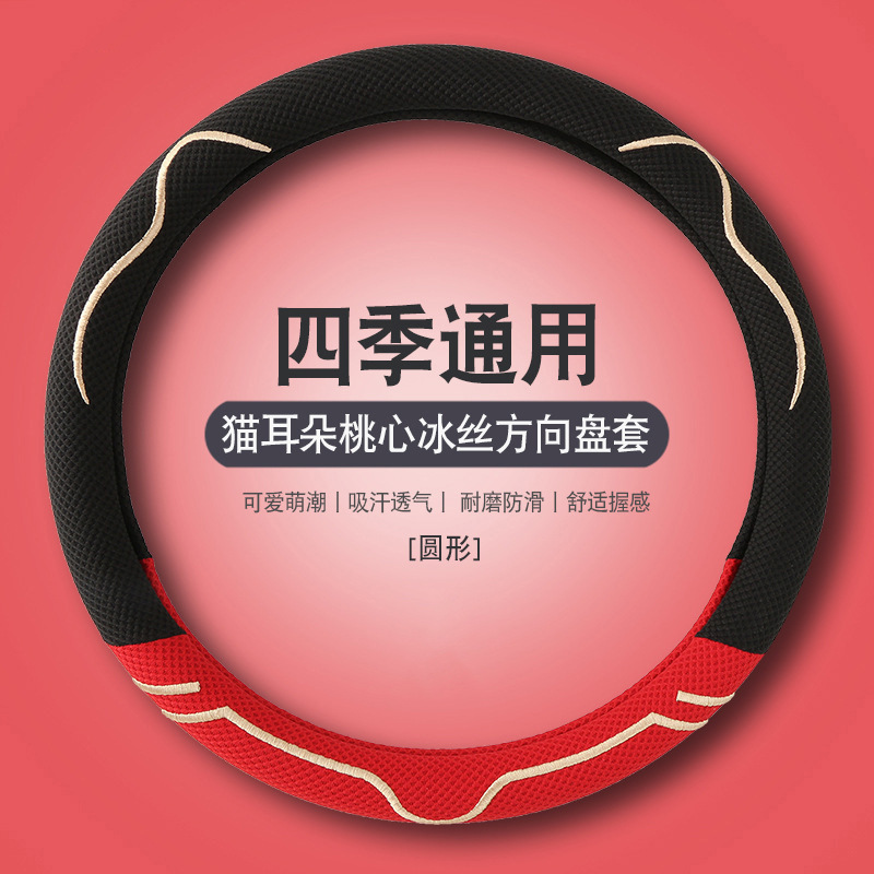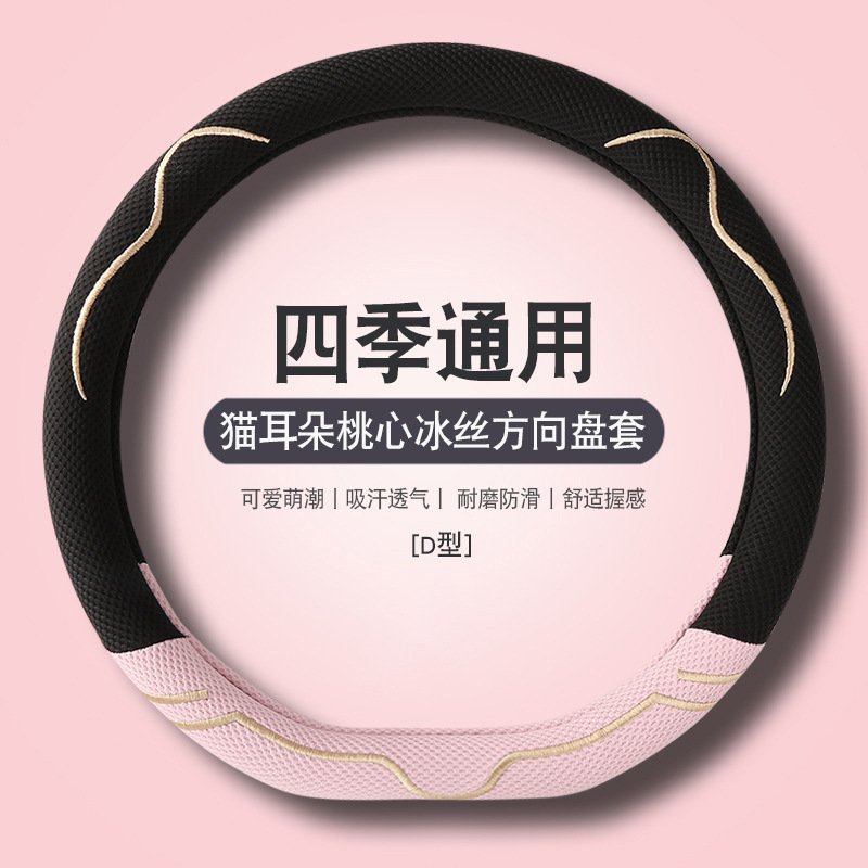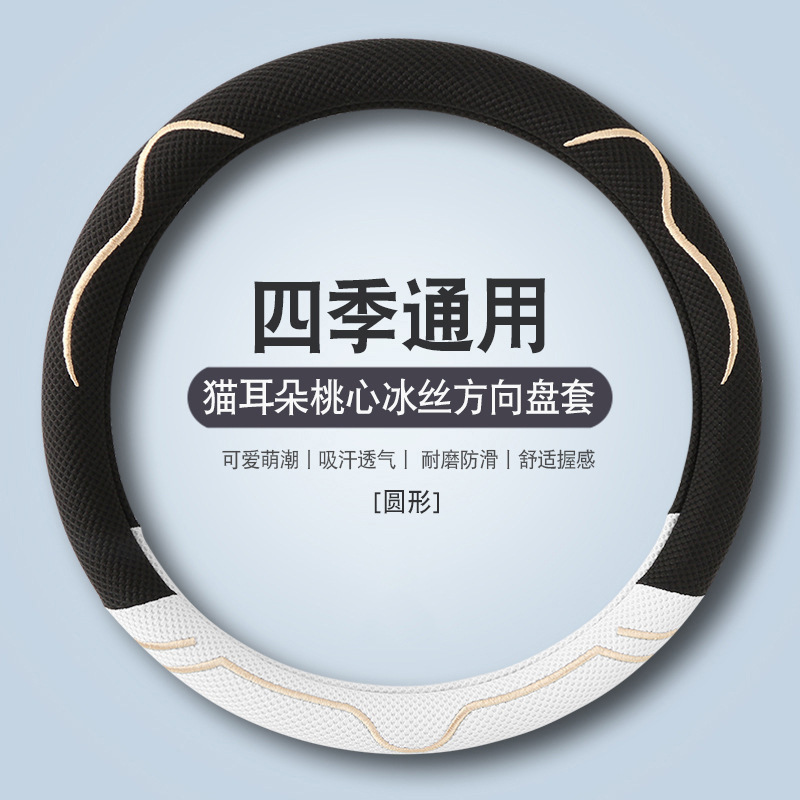 국경 간 얼음 실크 만화 자동차 핸들 커버 수 놓은 고양이 귀 커버 미끄럼 방지 통기성 아마존 도매