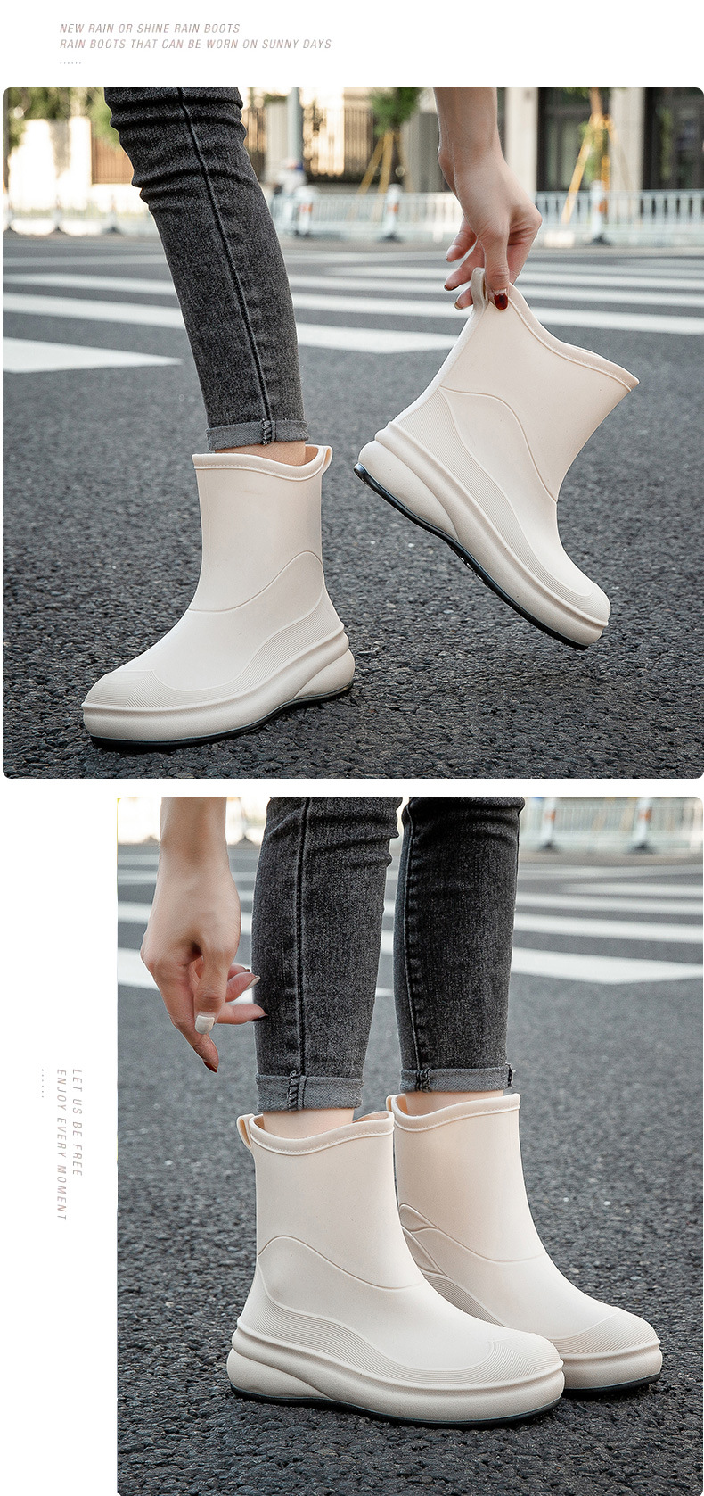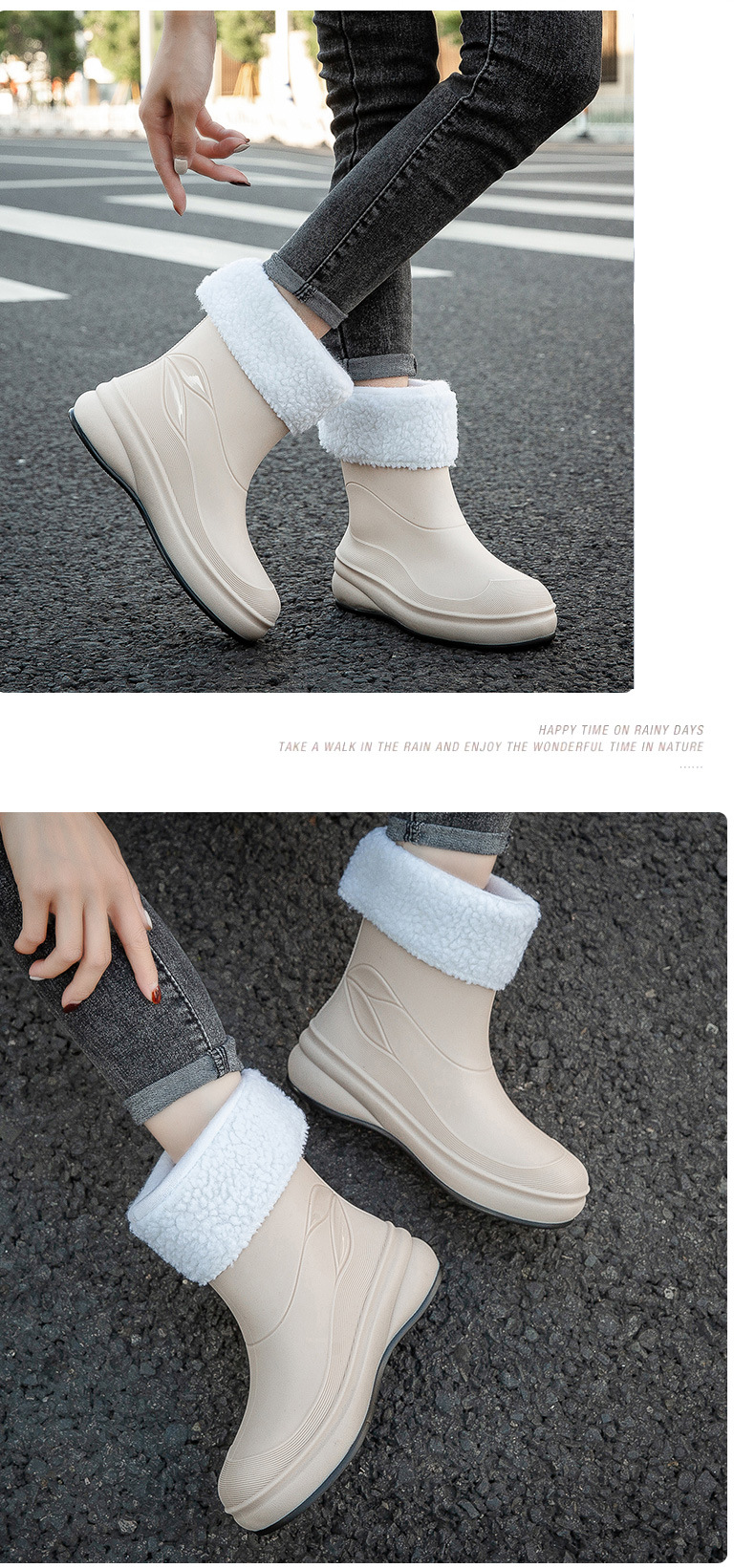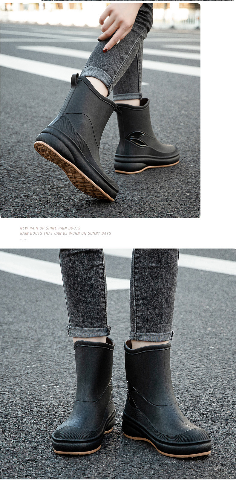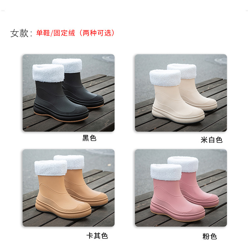 여성용 장화, 패셔너블한 아우터, 종아리 중간 방수화, 미끄럼 방지 장화, 부드러운 밑창, 내마모성, 주방 세차용 방수 신발, 덧신스토어 가기