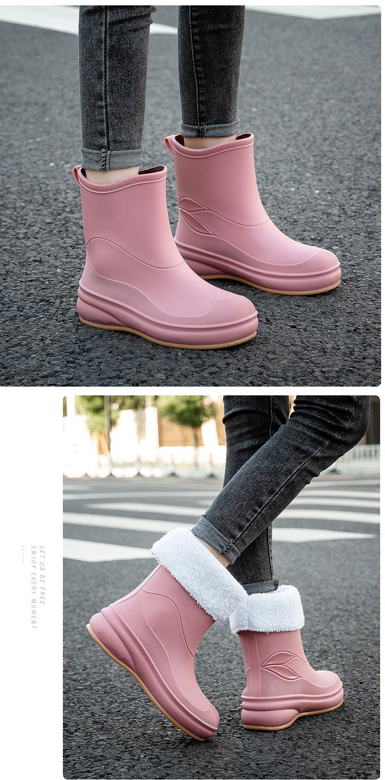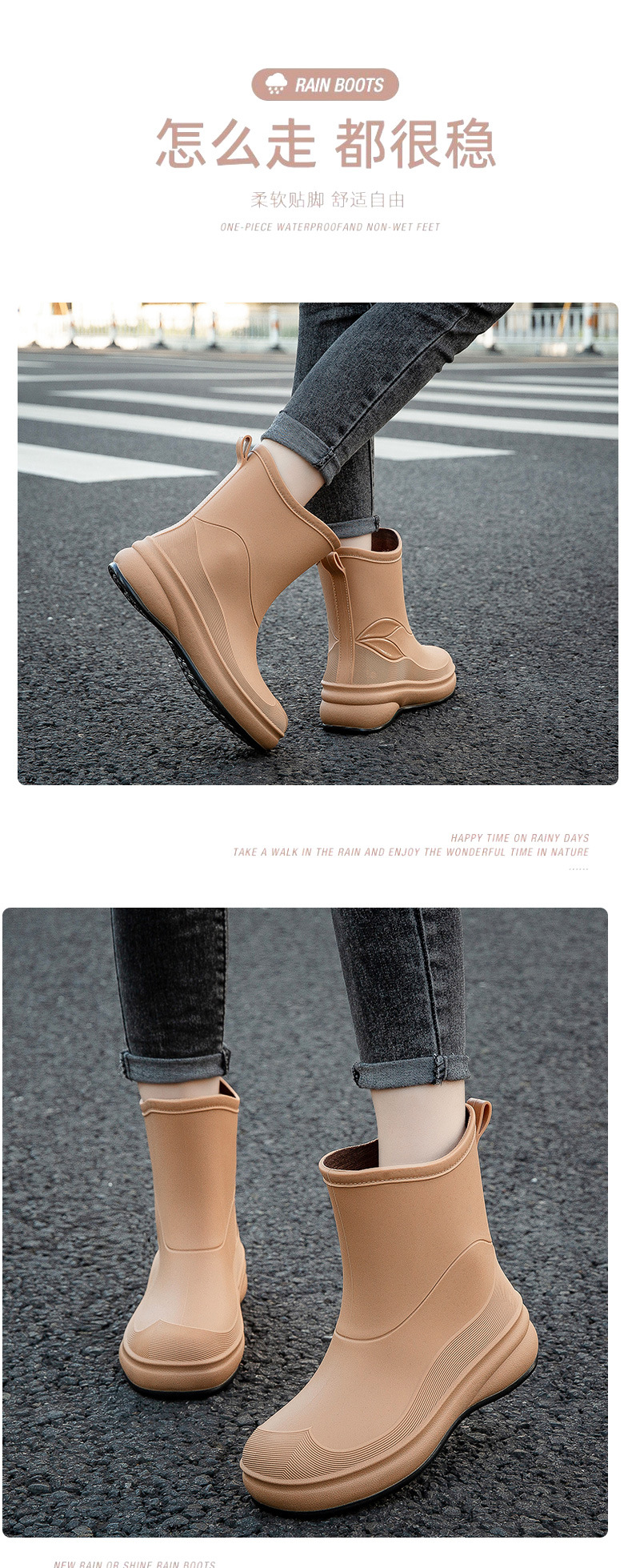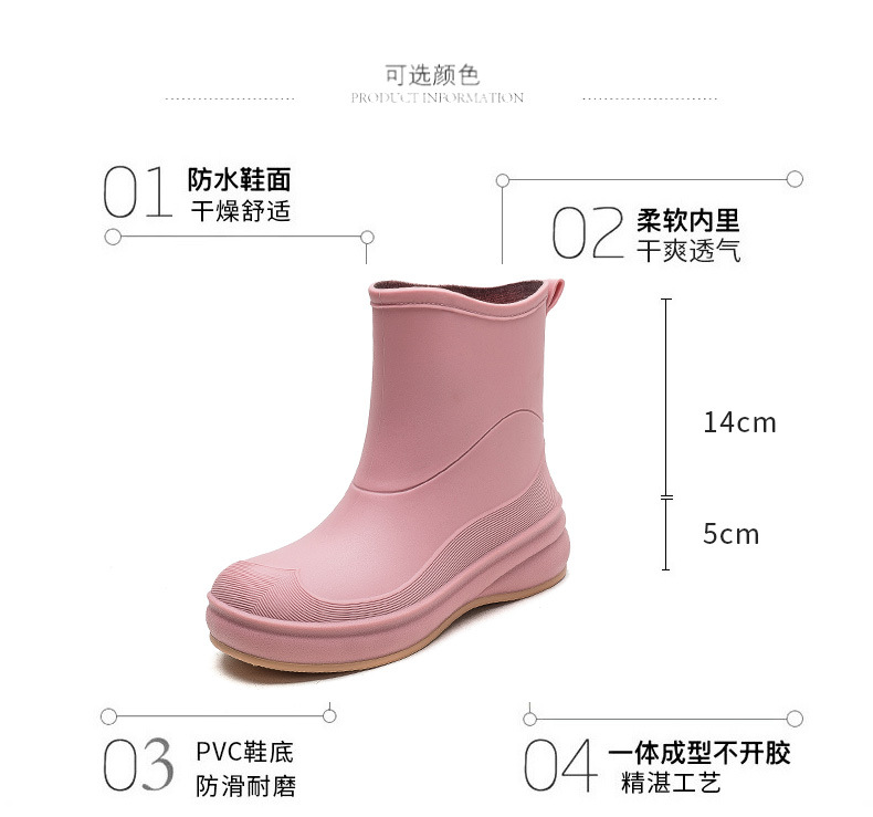 여성용 장화, 패셔너블한 아우터, 종아리 중간 방수화, 미끄럼 방지 장화, 부드러운 밑창, 내마모성, 주방 세차용 방수 신발, 덧신