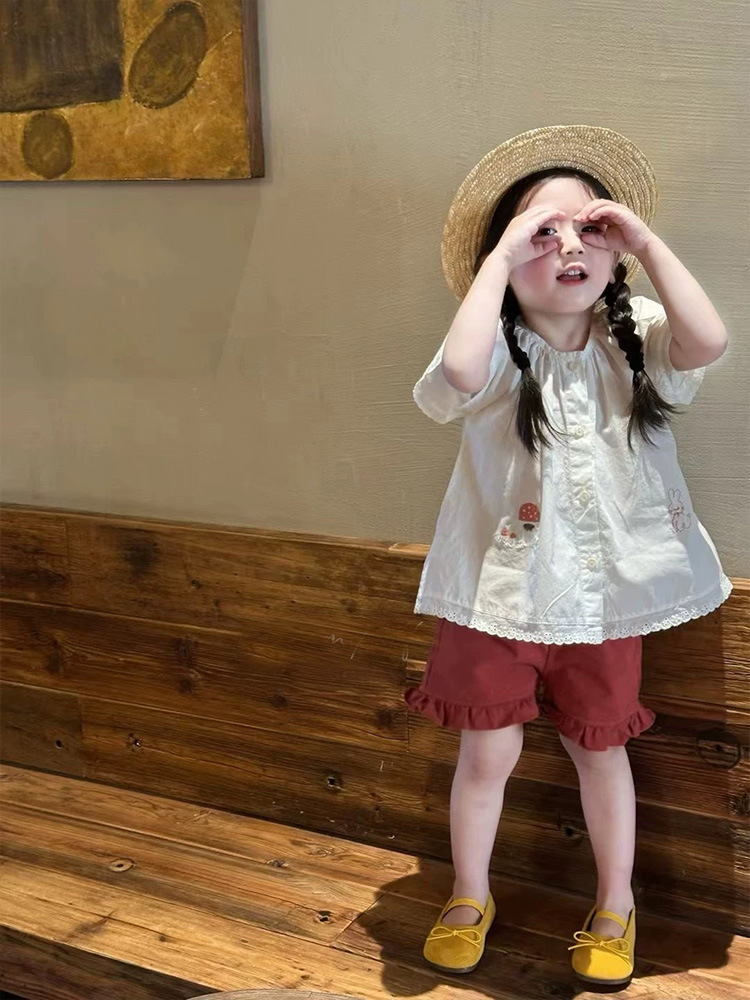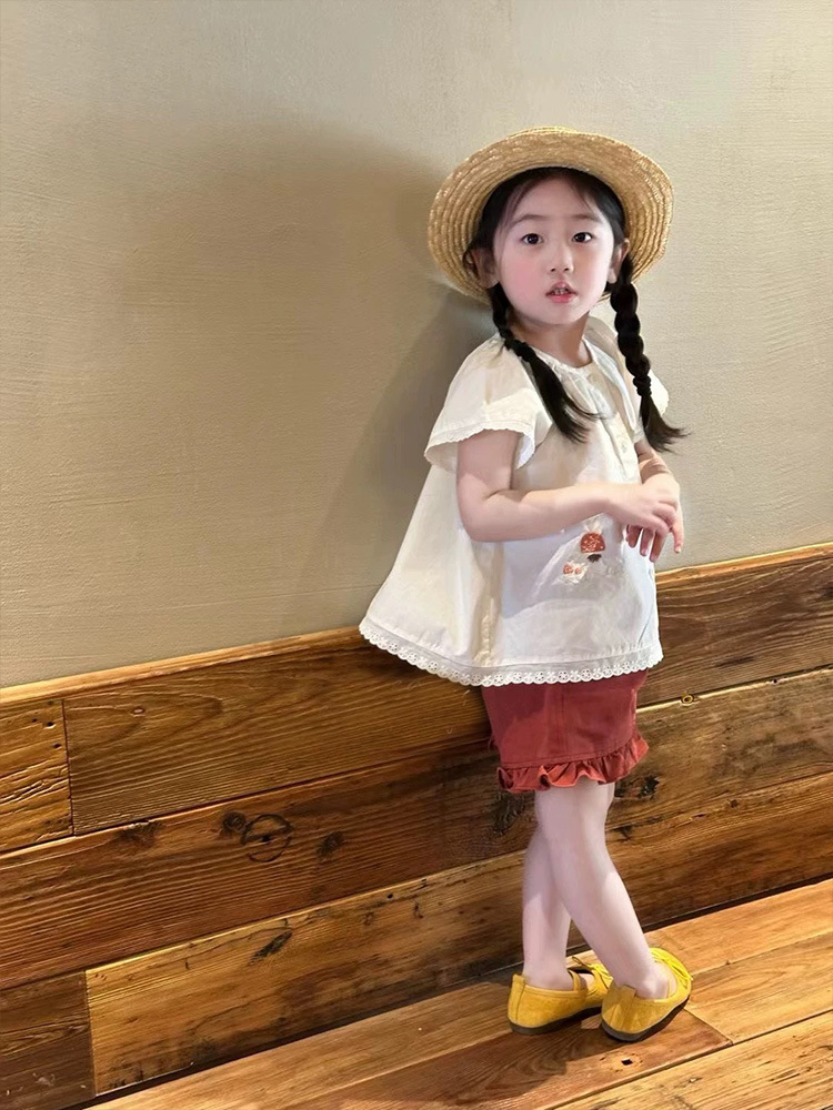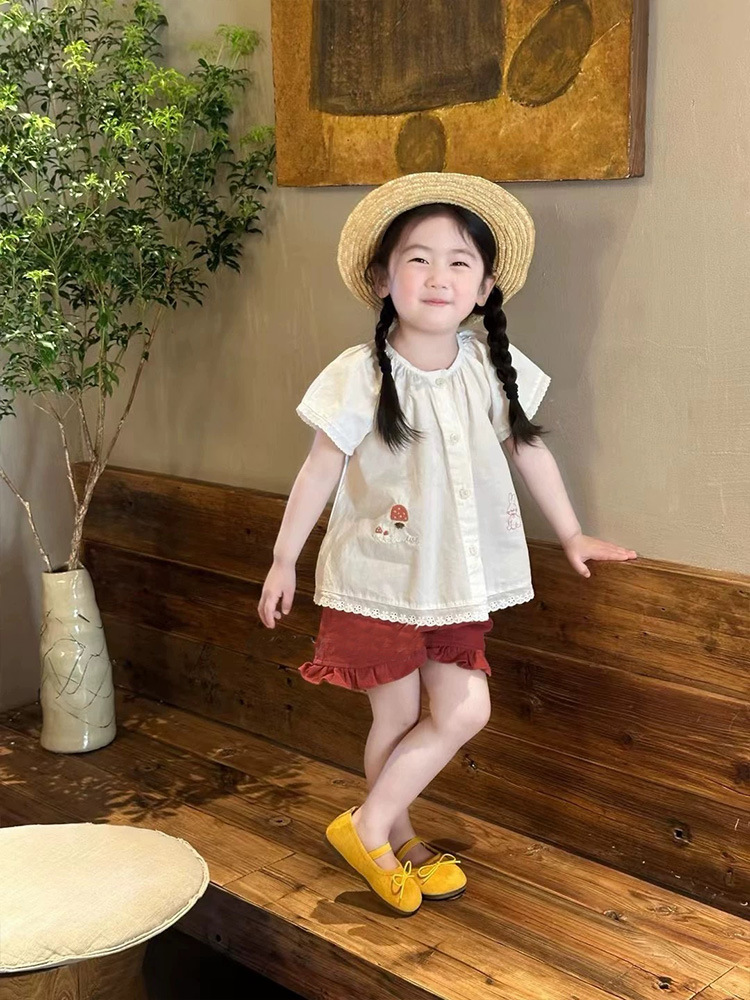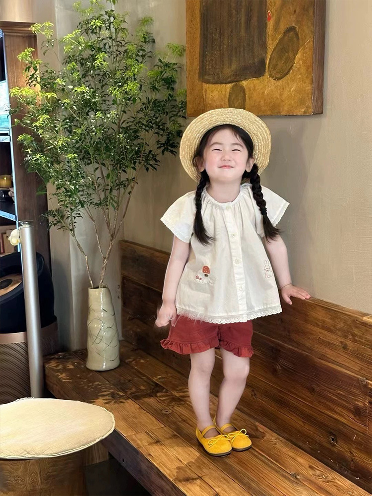 여자 세트 25 여름 달콤한 인형 셔츠 셔츠 새로운 여성의 아기 귀여운 만화 자수 얇은 짧은 소매 셔츠
