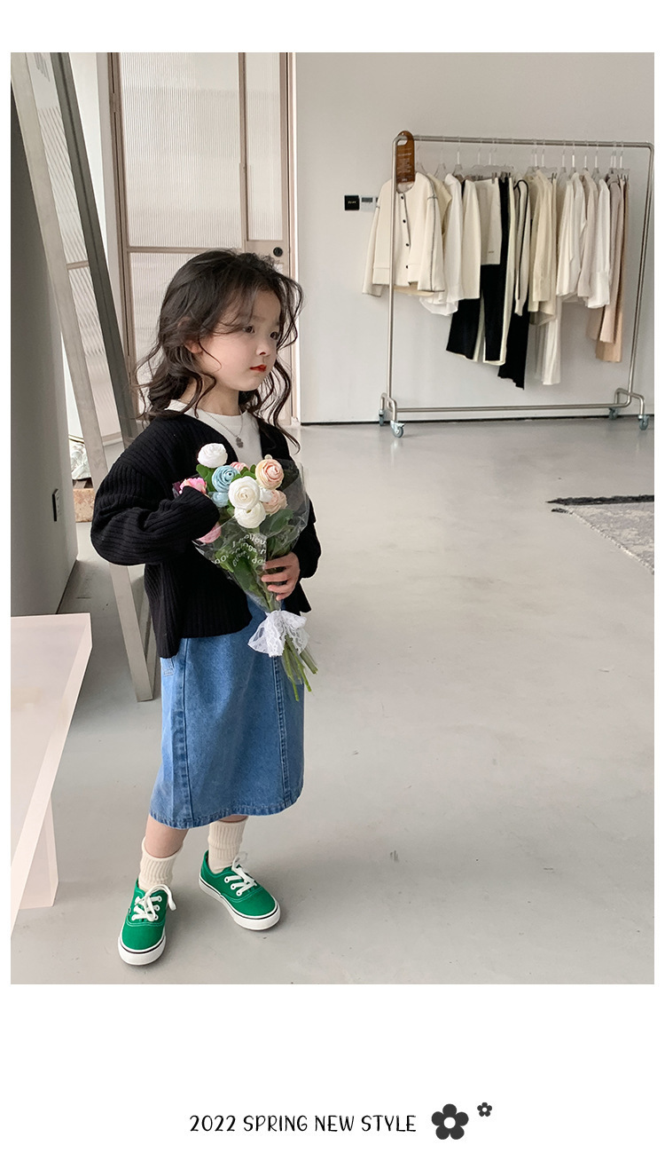 2025 여아 다용도 한국 스타일 중간 길이 스커트 봄, 여름, 가을 새로운 아동 패션 데님 스커트