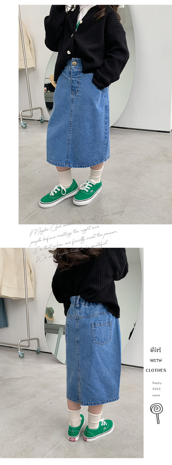 2025 여아 다용도 한국 스타일 중간 길이 스커트 봄, 여름, 가을 새로운 아동 패션 데님 스커트스토어 가기