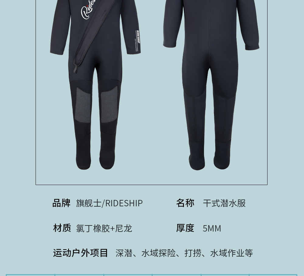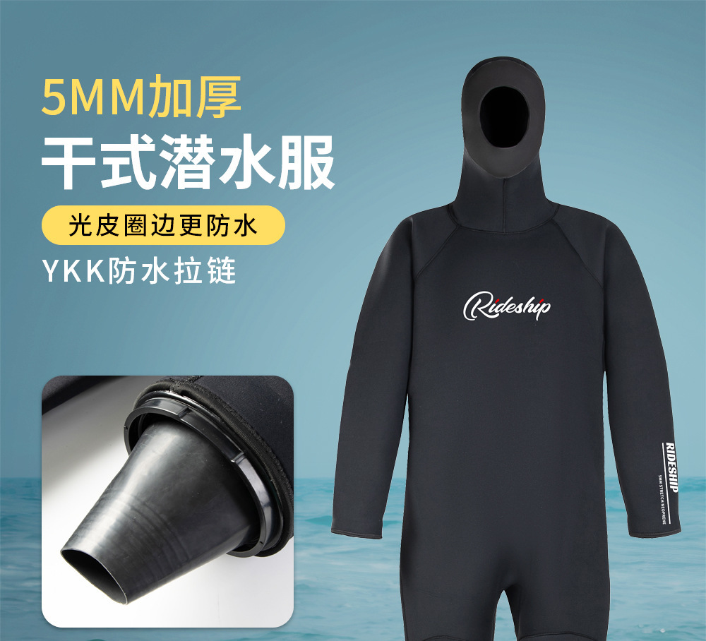5MM 드라이 다이빙 슈트 전신 일체형 후드 방한 및 수중 작업 엔지니어링 방수 드라이 다이빙 슈트