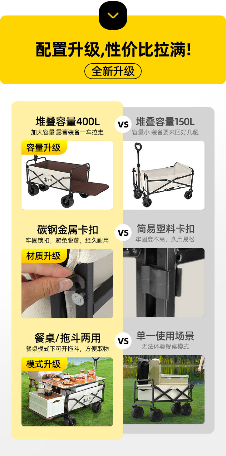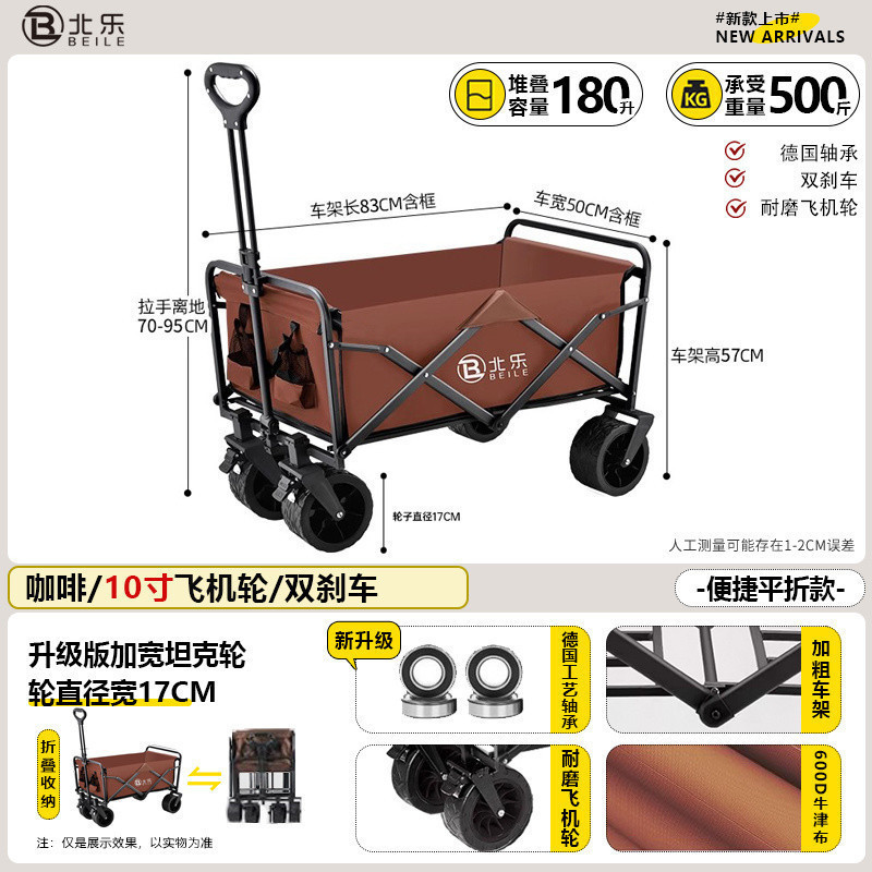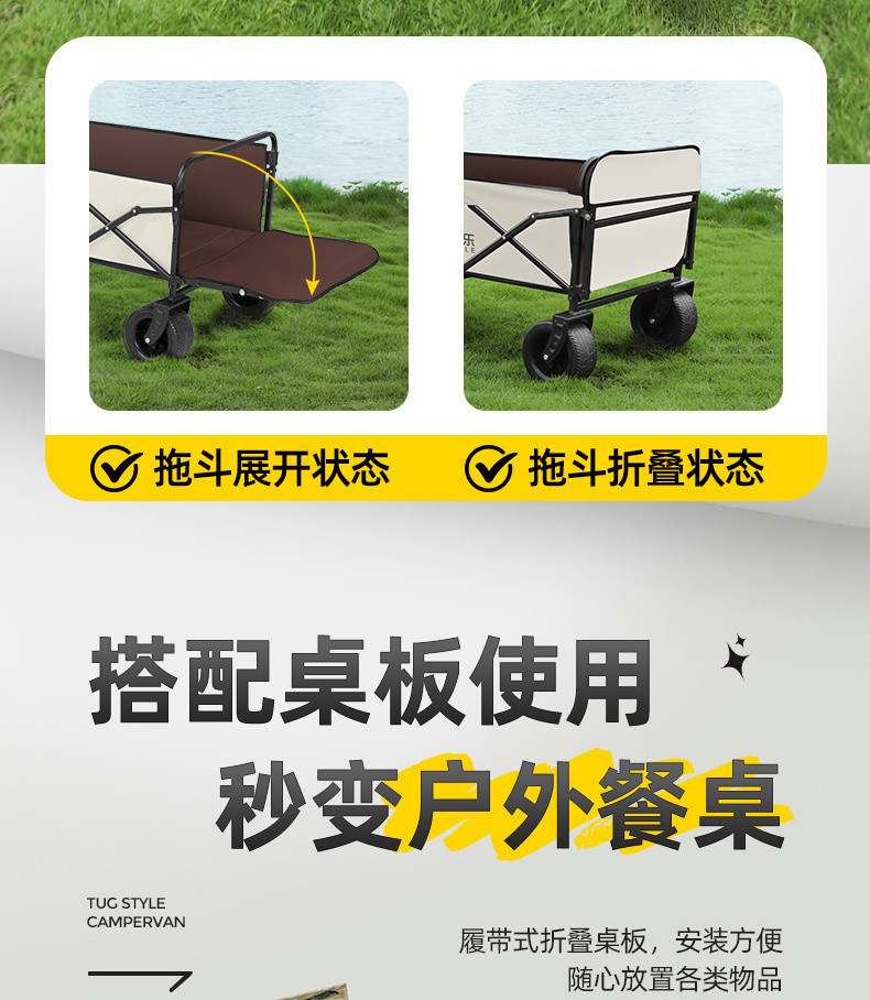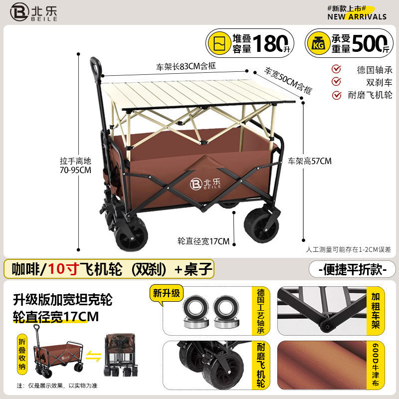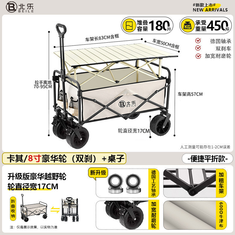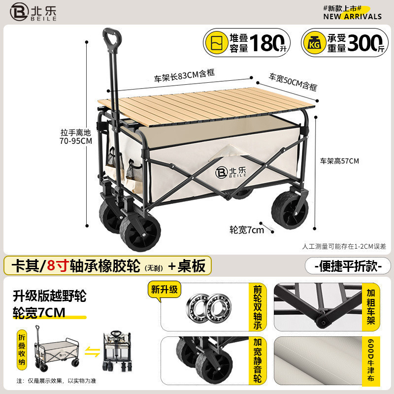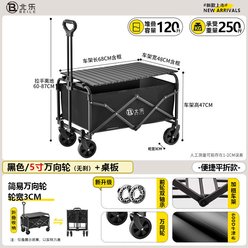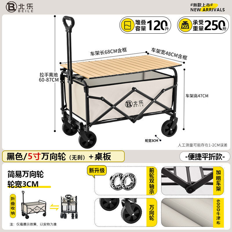 새로운 캠핑 카트 접이식 야외 핸드 푸시 피크닉 카트 휴대용 캠프 트레일러 트롤리 다기능 스톨스토어 가기
