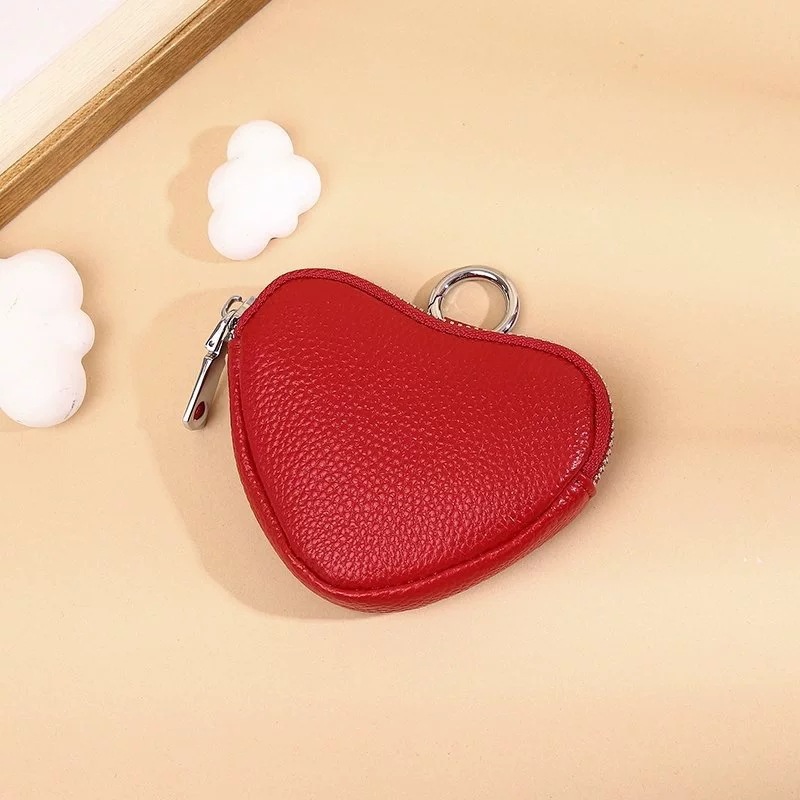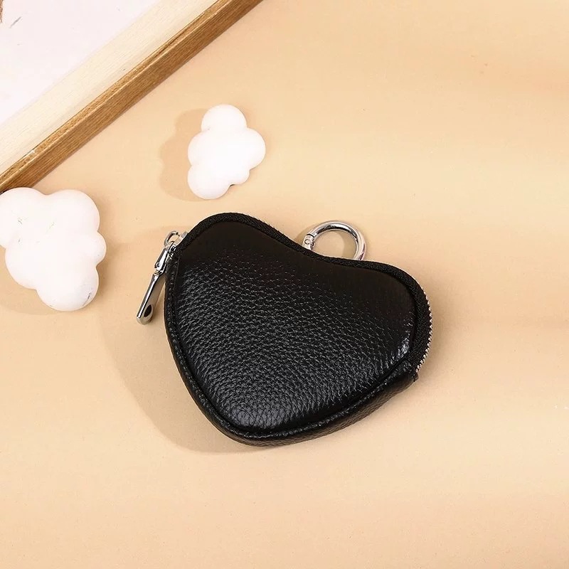여성을위한 소 가죽 동전 지갑 새로운 크리 에이 티브 하트 모양의 헤드폰 동전 보관 가방 펜던트 여성을위한 미니 간단한 작은 지갑